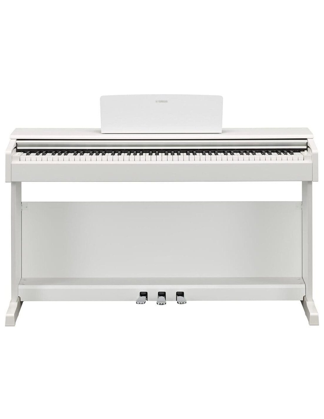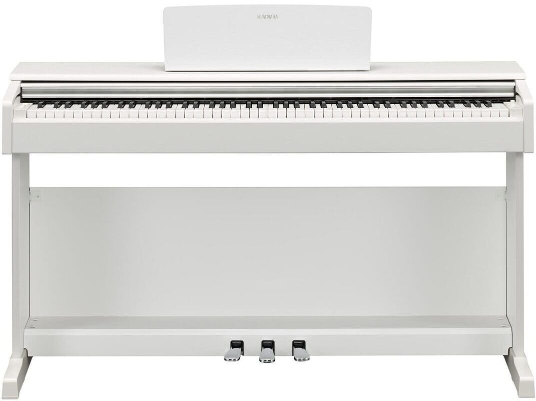 The YDP 145WH is a Yamaha digital piano in white color, with 88 weighted keys. It is equipped with a Graded Hammer Standard keyboard that emulates the touch of an acoustic piano, giving a naturally heavy feel on the lower keys and a lighter touch on