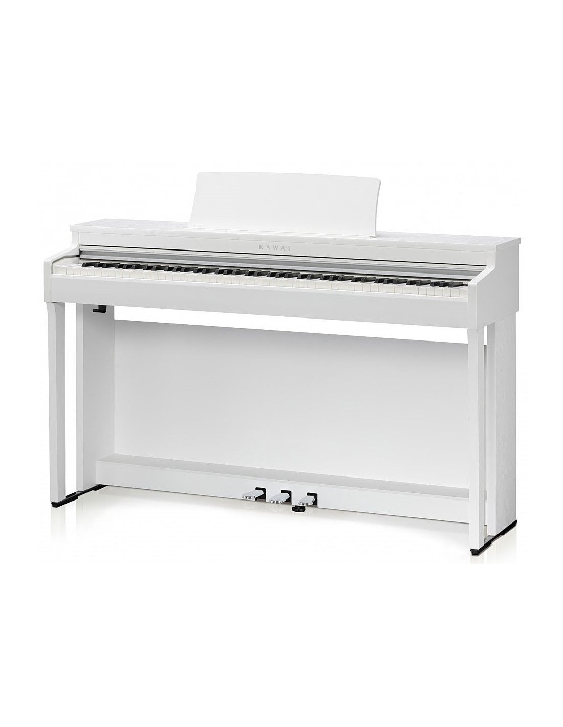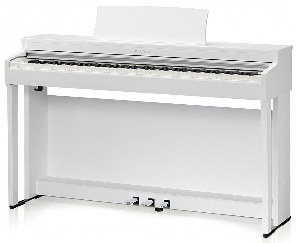 The CN201W is a Kawai digital piano in white color, with 88 weighted keys. It is equipped with a scaled hammer mechanism with three sensors and a smooth but not slippery Ivory Touch key cover, reminiscent of quality acoustic pianos