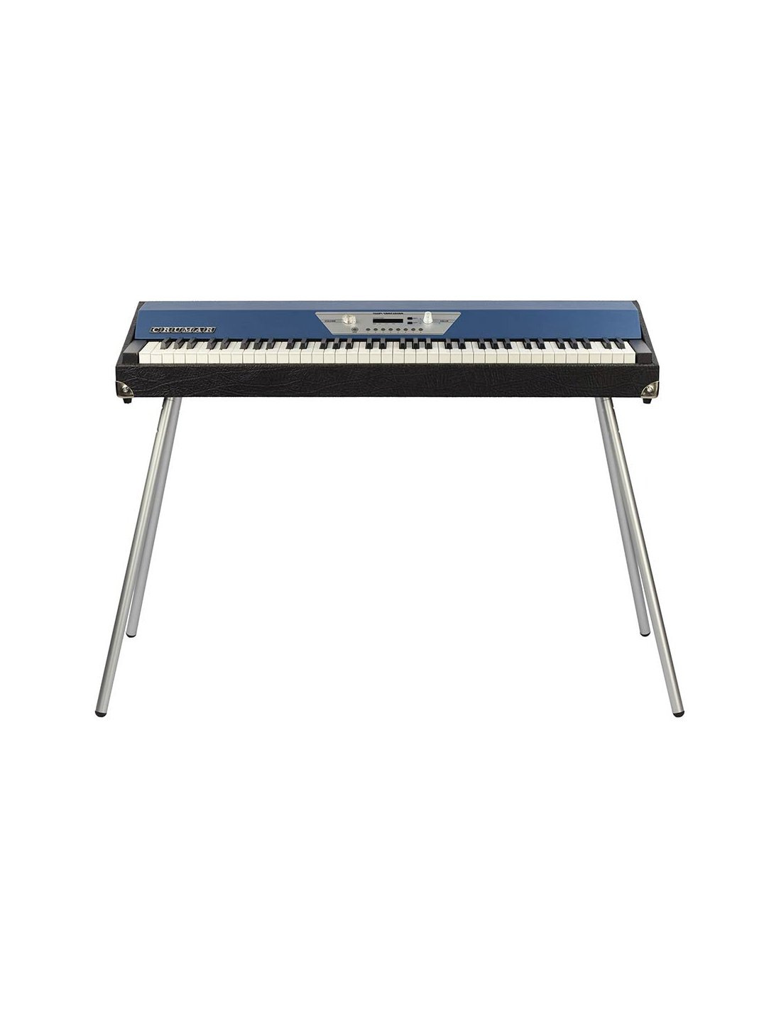 Piano 73 keys Virtual Modeling VINTAGE PIANO, revisited. After the success of the Crumar Seven, the instrument that created a new standard in the sector, the “vintage style” digital piano, Crumar is pleased to present the “Seventeen”. The Seventeen takes up the same idea of suitcase construction as the Seven, but with the exterior made of black and blue tolex instead of black paint. On the underside there are four hinges to accommodate the inclined legs (NOT INCLUDED). All connections are located on the left side of the instrument. The construction of the instrument is completed by the same 73-key hammer action keyboard as the Seven. The Seventeen also integrates both physical modeling technology and samples. In fact, the first sound we find is the famous one of the molded Tine Piano, followed by some of the most iconic vintage pianos: Electric Grand (both 70 and 80), Reed EP, Clavi EP, as well as high-quality sampled material for acoustic pianos, combos and synth piano sounds. A series of top-notch effects, including Tremolo, Vibrato, Wah Wah, Chorus, Flanger, Phaser, as well as Reverb, Delay and, if that weren't enough, a 3-band EQ and an AMP simulator. A modern, portable, elegant and light piano, easy to use and at the same time extraordinarily powerful. Last but not least: expandability: Seventeen also integrates some of the previously released wavetable expansions for its older brother Seven, and can accept the exact same expansions. So, every time a new sample is released for Seven, it will also be compatible with Seventeen. SOUNDS (28 ROMs + 4 pre-installed expansions) :- Physical modeling of the grand piano- D-274 and C5 acoustic grand piano (with sympathetic resonances) - 70 and 80 electric grand pianos (with sympathetic resonances) - Reed EP, DX EP, Clavi EP (all pickup combinations), MKS EP + AP, Vibraphone, Harpsichord- Several choices of Combo pianos and piano Combo + strings- Seven pre-installed expansions: Venice Grand, Venice Grand Open, Venice Grand Breeze, Venice Grand Breeze Vertical Electric Grand- 64 presets- All acoustic and electric piano multisamples not they use loops. Most samples use 6 to 12 velocity layers.- The amount of user flash memory for the extra samples is 7.1 GB, of which 5.2 GB are free with the 4 pre-installed expansions. Effects: - FX1: Tremolo, Stereo auto-panner, LFO Wah Wah, Dynamic (auto) Wah Wah- FX2: Stereo Chorus, Stereo Flanger, Stereo Phaser 1 (4 stages), Stereo Phaser 2 (6 stages) - AMP- 5 models + overdrive- mono: REVERB or ping-pong: different types + adjustable level and decay- EQ: 3-band semi-parametric stereo-Construction: - Lightweight wooden case with black Tolex and blue- 73-note Italian keyboard with hammer action- Easy user interface with 16x2 LCD and preset buttons- MIDI OUT connector and USB-MIDI IN/OUT port- Balanced L & R outputs and headphone output- USB type “A” connector- Sustain pedal connection- Internal power supply- Hinges compatible with 4-leg support (not included) - see PLS-04SPECIFICATIONS- Nominal power: 100V AC ~ 240V AC- Maximum headphone output load: 32 ohms (recommended 55 ohms or more) - Stereo balanced line output level: +4 dBu- Dimensions: 111 cm x 38 x 16 - inches 43.7 x 15 x 6.2- Weight: 12 Kg - 26.5 lbs Accessories- PLS-04: Set of metal legs (4 pieces) + carrying bag- CSP-40: Sustain pedal