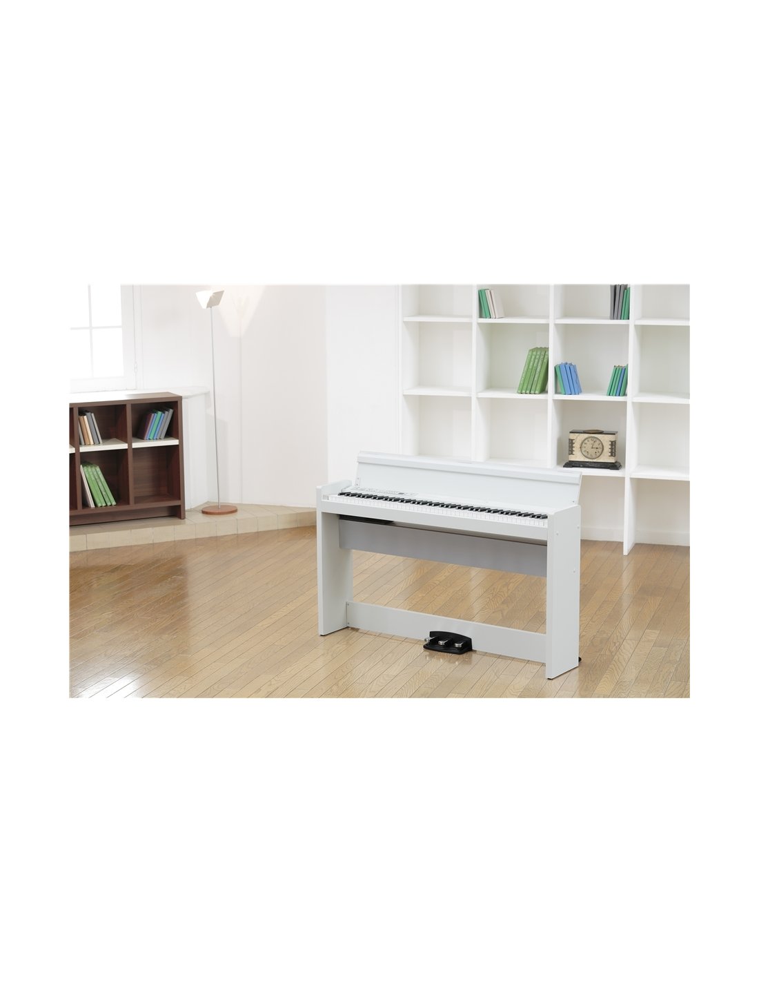 LP-380 U è un pianoforte digitale KORG ideale per lo studio e il piacere personale di fare musica, dal suono di grande realismo e un elegante mobile con copritastiera dall'ingombro limitato. Questo strumento viene utilizzata la rinomata tastiera 88 tasti RH3 (Real Weighted Hammer Action 3), con la pesatura dei martelli differenziata, 3 curve di dinamica, ed un generatore Stereo PCM con polifonia 120 voci, 30 Timbri in totale, con effetti: riverbero, Chorus, Brilliance, metronomo, 3 pedali (Damper, Soft, Sostenuto), con funzione “mezzo pedale”. Amplificazione interna di grande qualità e potenza, 22 x 2 W, Porta USB/MIDI ed AUDIO