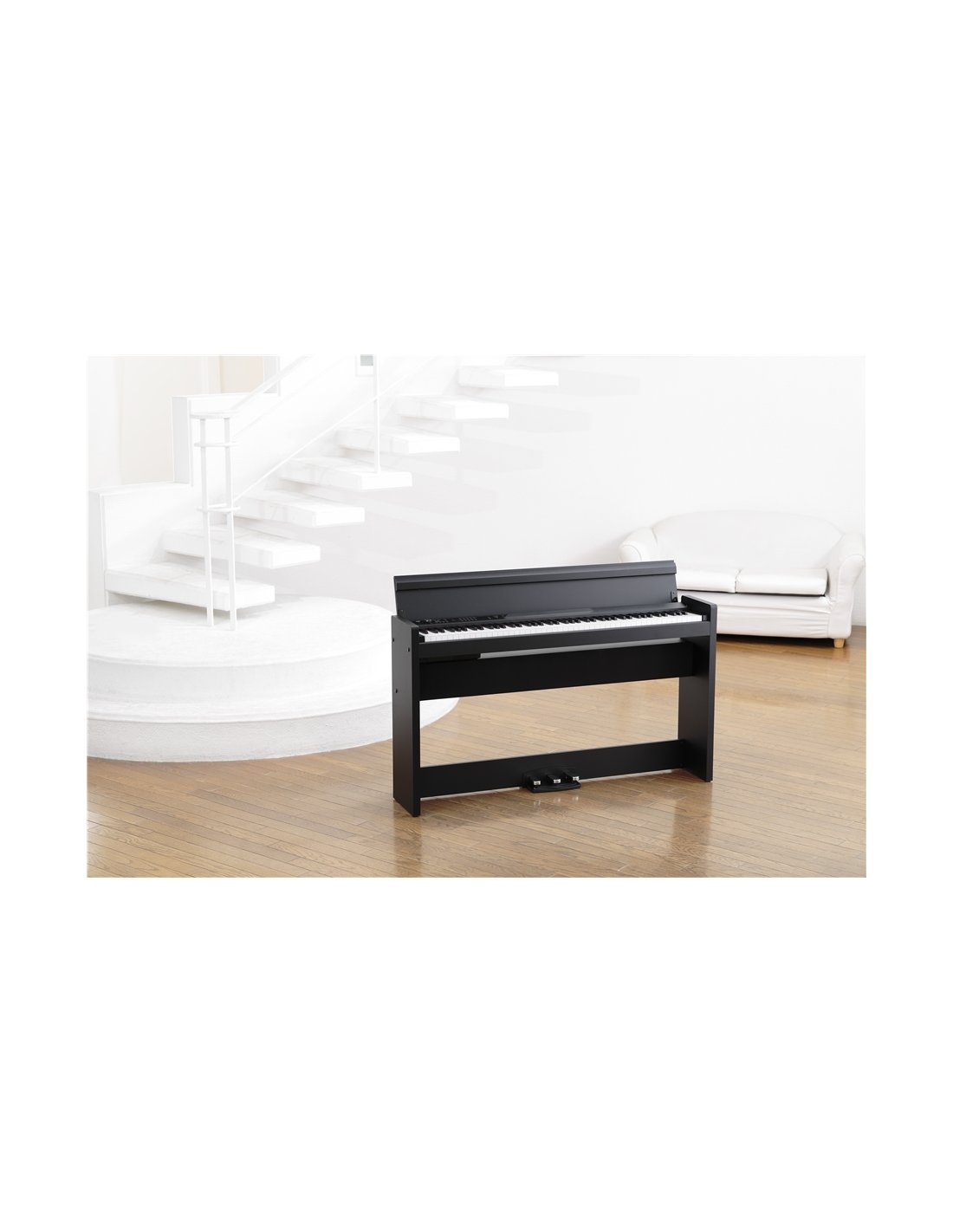 LP-380 U è un pianoforte digitale KORG ideale per lo studio e il piacere personale di fare musica, dal suono di grande realismo e un elegante mobile con copritastiera dall'ingombro limitato. Questo strumento viene utilizzata la rinomata tastiera 88 tasti RH3 (Real Weighted Hammer Action 3), con la pesatura dei martelli differenziata, 3 curve di dinamica, ed un generatore Stereo PCM con polifonia 120 voci, 30 Timbri in totale, con effetti: riverbero, Chorus, Brilliance, metronomo, 3 pedali (Damper, Soft, Sostenuto), con funzione “mezzo pedale”. Amplificazione interna di grande qualità e potenza, 22 x 2 W, Porta USB/MIDI ed AUDIO