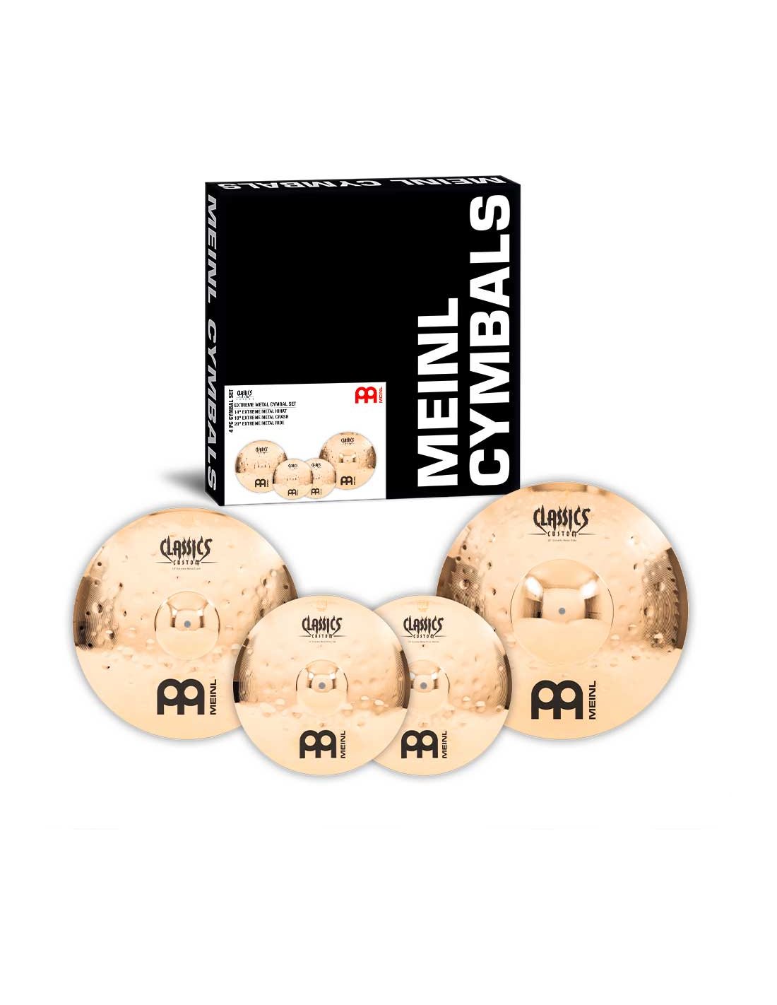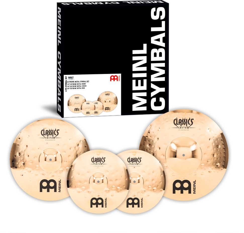 'Hi-hat 14", Crash 18" and Ride 20" cymbal set. Classics Custom Extreme Metal Series. The Classics Custom Extreme Metal series cymbals are mechanically produced in Germany with a B10 alloy and with a slightly higher weight than the Classics Custom, which gives them a really great power. The process involves various techniques, both pressing and computerized hammering. In addition to this, they receive a glossy lacquer that gives them a spectacular glossy finish.