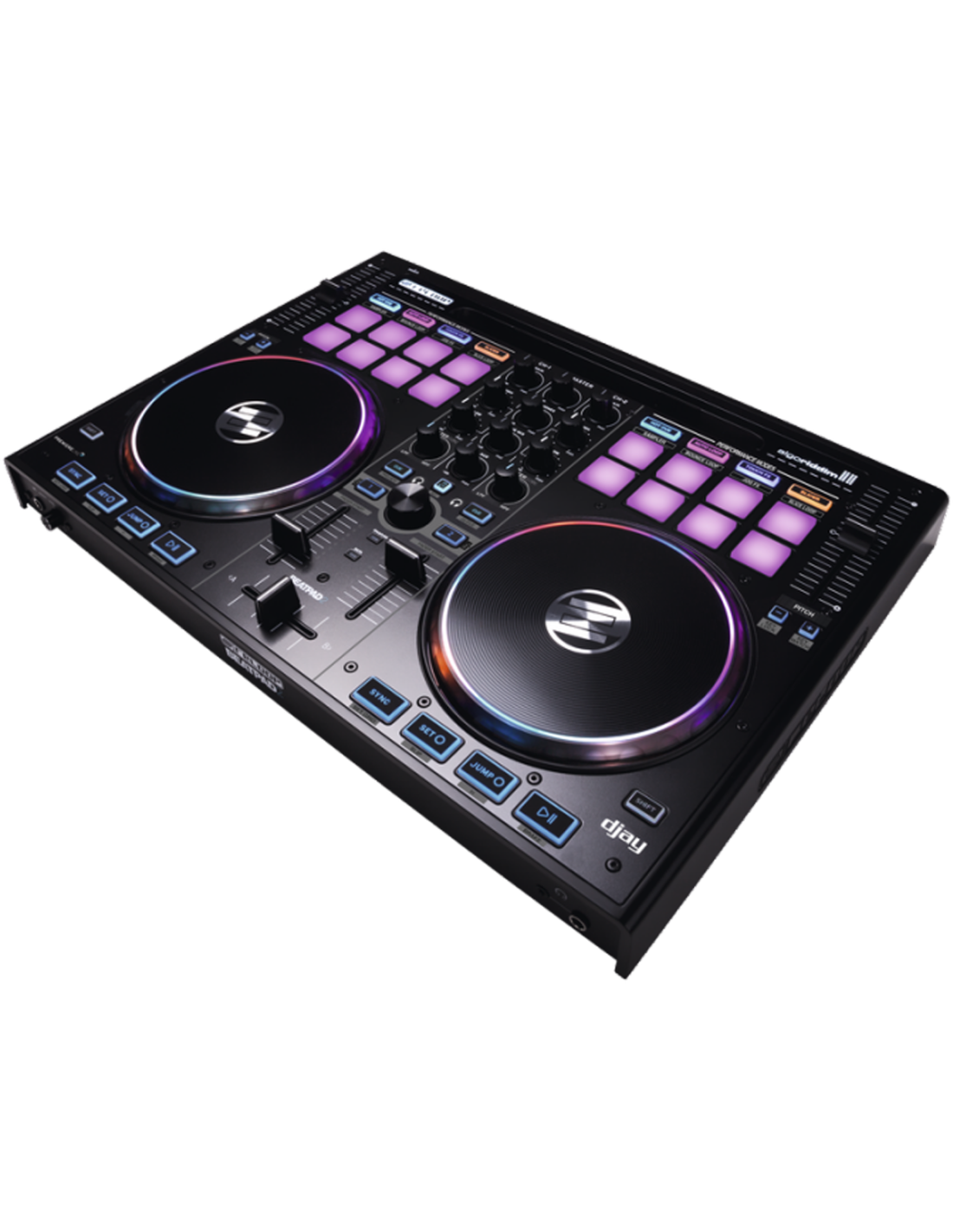 RELOOP BEATPAD 2 is a professional cross-platform Plug&Play DJ controller compatible with Algoriddim's DJAY 2 mixing software. Technical features include: Plug&Play operation on any platform such as iPad, Mac/PC and Android platform, multi-sensory section with 16 touch-sensitive drum pads, 8 Performance Mode recognition colors with RGB LED feedback on Pads & Jog Wheel, Auto loop/Bounce loop mode, Hot Cue & Sampler Mode, Touch FX/Jog FX mode for interactive effect modulation, Slicer/Slice Loop mode for deconstructed-remixing, Switch EQ preset for 3-band filter/EQ, Jog Wheel XXL ultra flat (15.5 centimeters in diameter) with vinyl surface, RCA stereo Aux input, microphone input via 6.3 mm jack, XLR/RCA stereo outputs, 2 TRS jack headphone inputs. The controller also allows harmonic mixing through the Key Lock & key Match functions, advanced track management through the Track preview/queue, Library switch & Grid edit functions, and integrates a 4-channel USB audio interface. Includes USB, Lightning, Android OTG cables and international power adapter