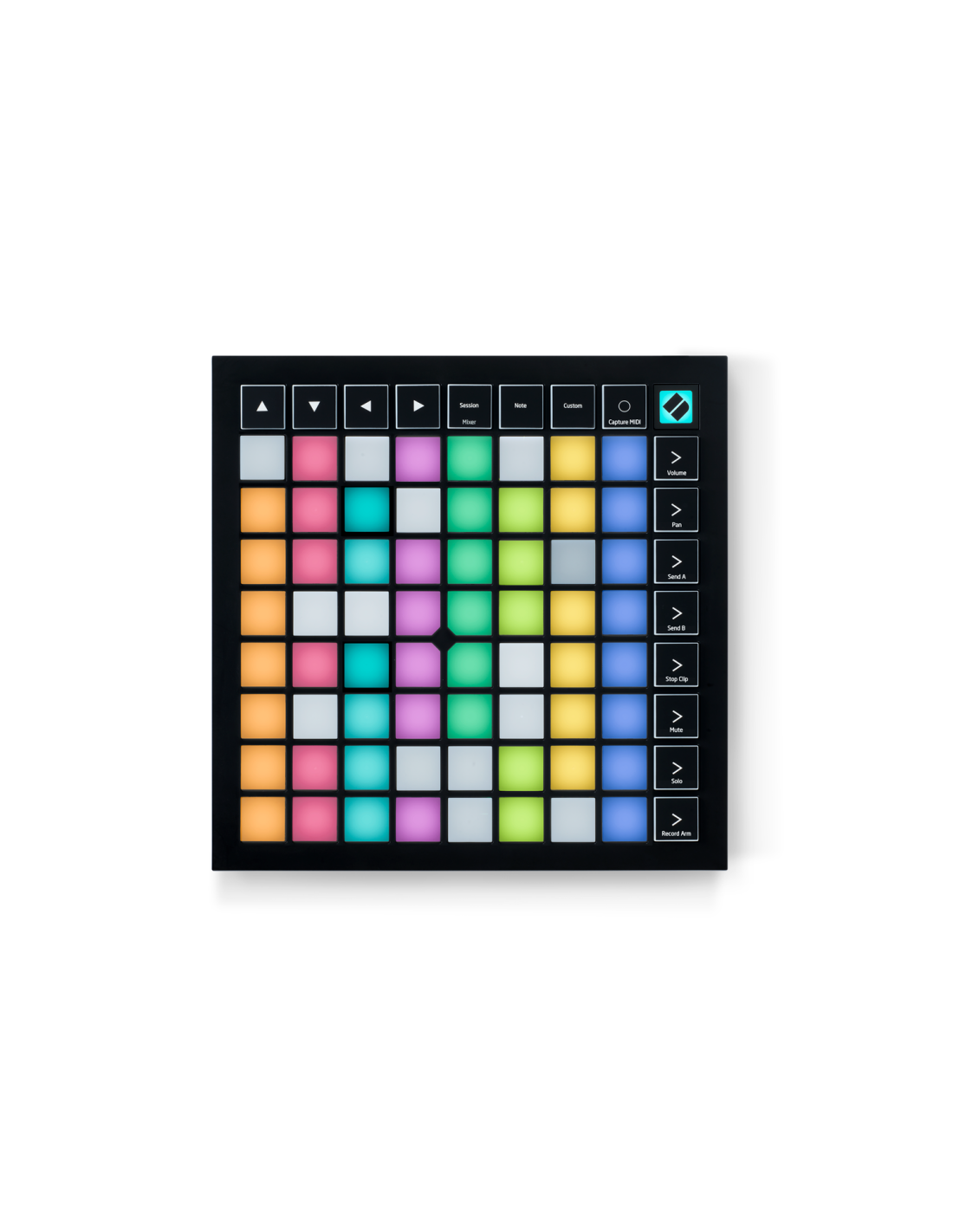 NOVATION LAUNCHPAD X is a 64-pad MIDI controller designed to provide a music production experience with Ableton Live and other compatible DAWs. The technical features include a matrix of 64 customizable and assignable RGB Pads with sensitivity to Velocity, 4 operating modes: Session View for direct control of the Ableton Live clip grid; allows you to launch, stop and mute clips in real time, Drum Rack for the use of the controller such as Drum Machine, Instrument for playing virtual instruments and recording them and the User Mode mode that allows you to fully customize the layout and functions of the pads, adapting the Launchpad to your specific needs. It also features Push Encoders for navigating parameters and modifying values, Play, Stop, Record buttons, selection and navigation buttons, MIDI compatibility with Ableton and other DAW software