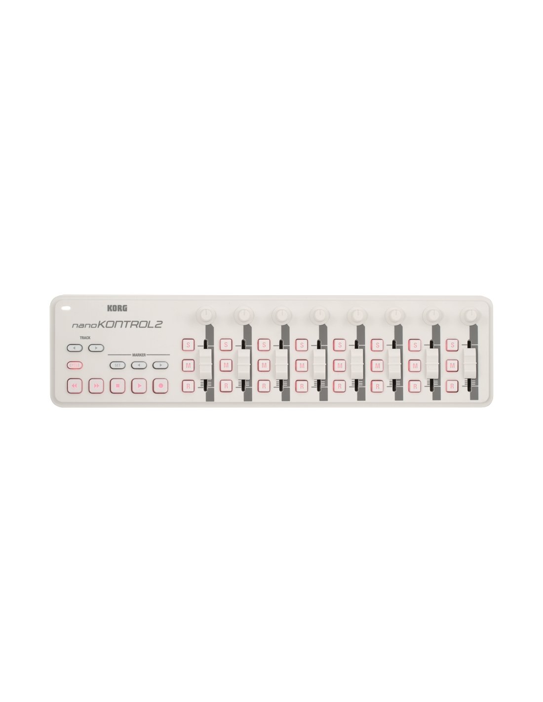 KORG NANOKONTROL2-WH is a compact and portable MIDI controller for music production suitable for use with major DAW software. Technical features include multifunctional MIDI-USB control surface, 8-channel layout with fader, potentiometer and 3 keys, Encoders for precise control over parameters such as volume, filters, reverbs and other effects, buttons with assignable functions, new Marker setting and navigation functions, transport keys: REW, FF, STOP, PLAY, REC and Cycle. The controller is pre-mapped for: Avid Pro Tools, Apple Logic and GarageBand, MOTU Digital Performer, Steinberg Cubase, Ableton Live, Cakewalk SONAR,