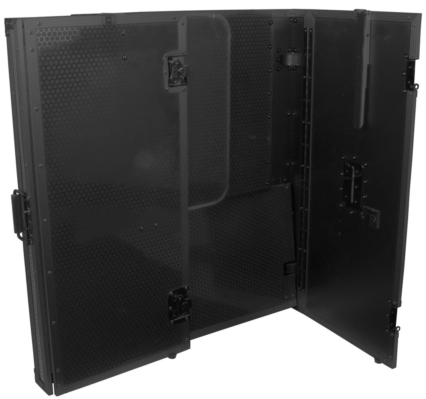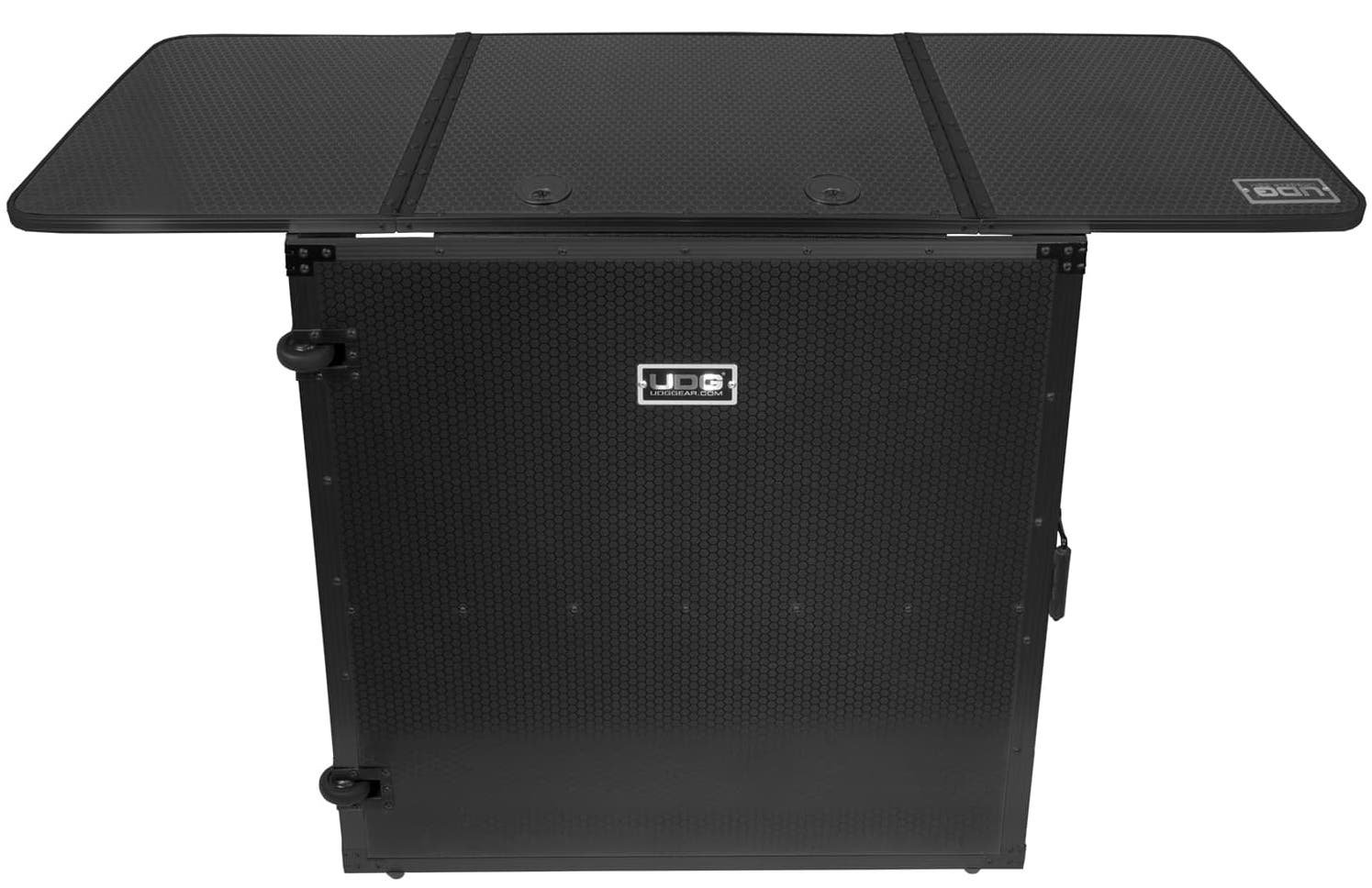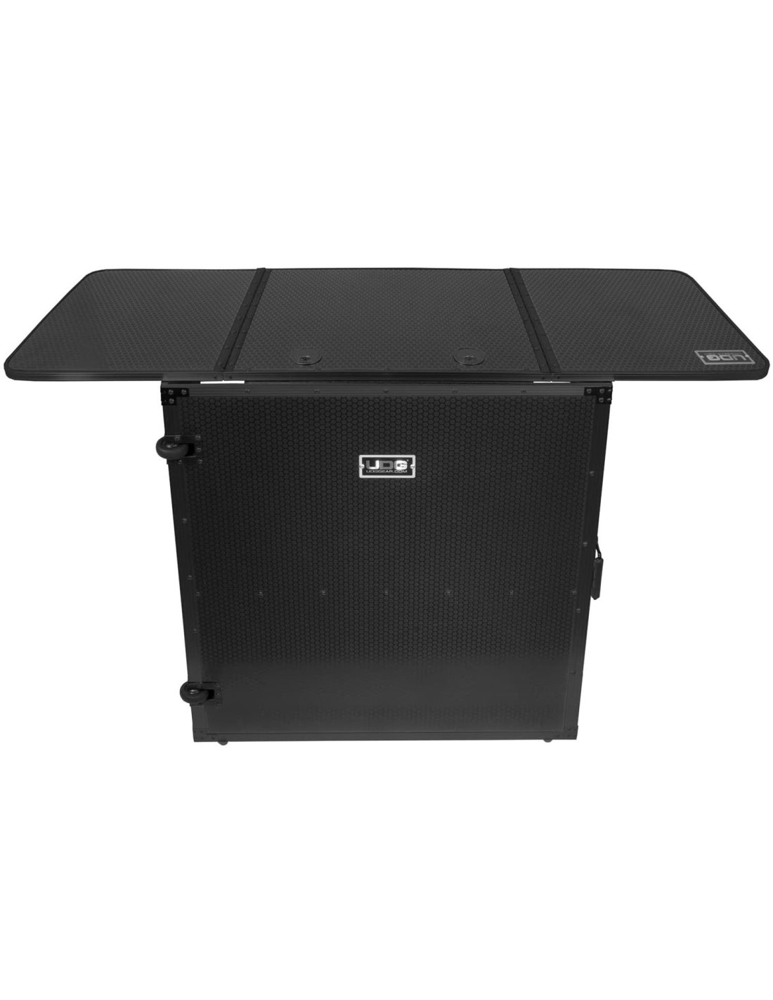 UDG Ultimate Fold Out DJ Table è il compagno perfetto per il DJ a cui piace diventare completamente modulare. Usalo per un home studio installato o sul palco. Costruito in robusto compensato di 9 mm di spessore, i lati esterni sono laminati in una finitura nera con un motivo 'Stage Grip' a nido d'ape / esagonale. È dotato di ruote a rulli perimetrali su un lato per un comodo trasporto e maniglie a molla per carichi pesanti per sollevamento e carico sicuri. Il tavolo DJ UDG Ultimate Fold Out offre un aspetto pulito e professionale ed è facile da installare o emolire.
