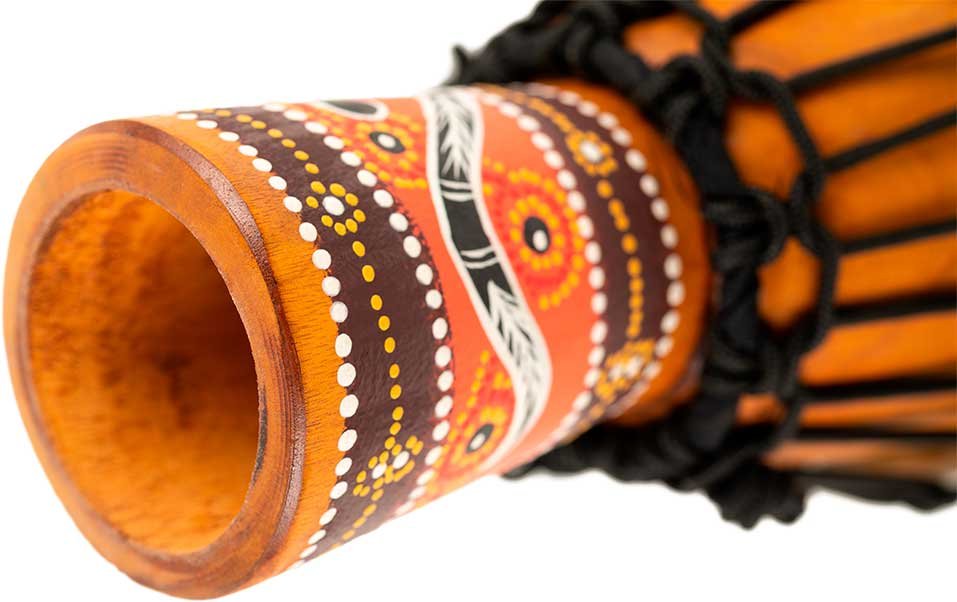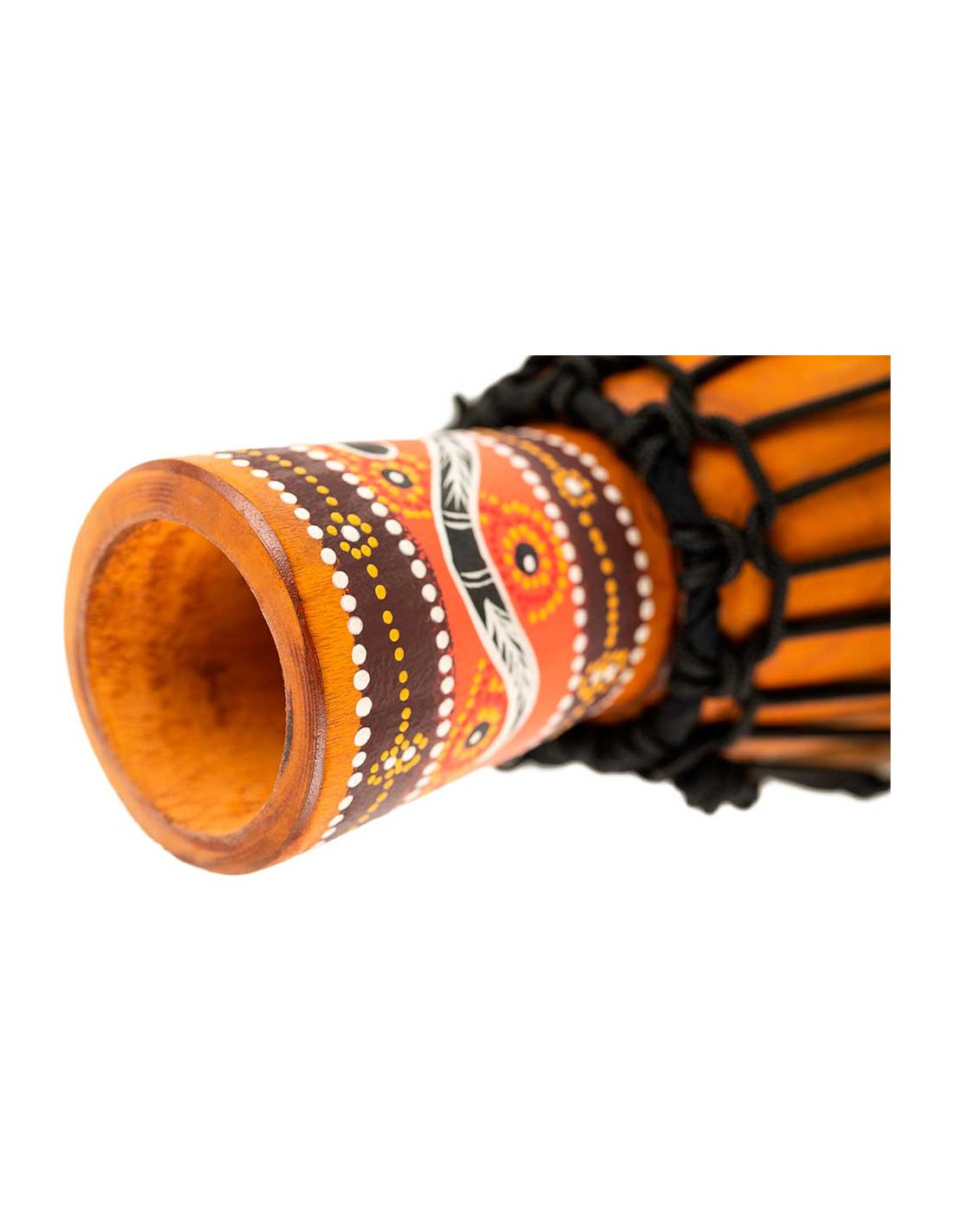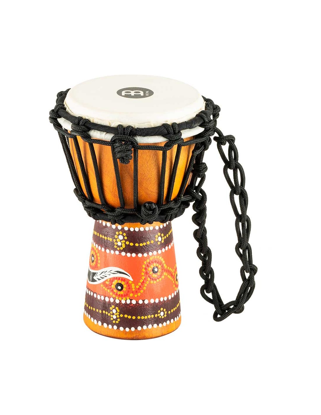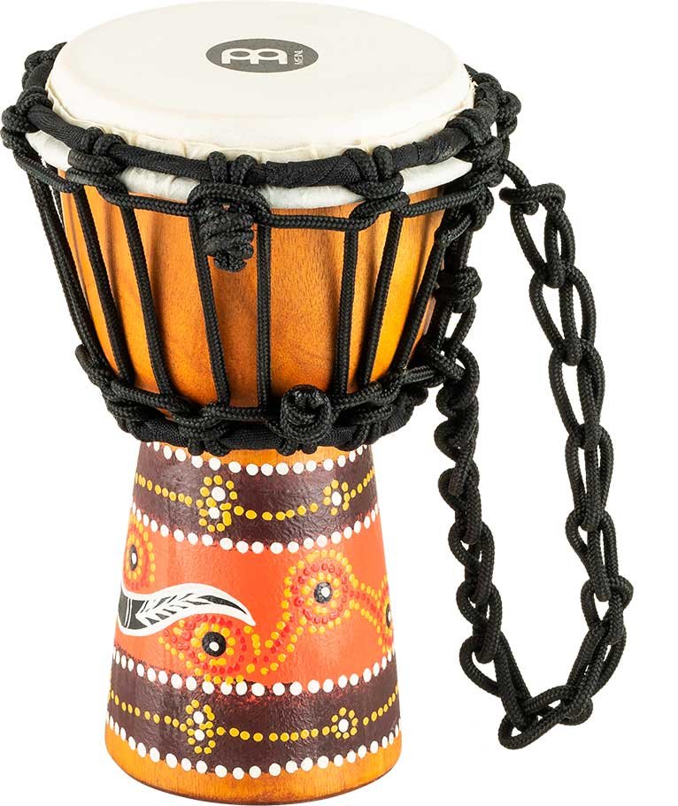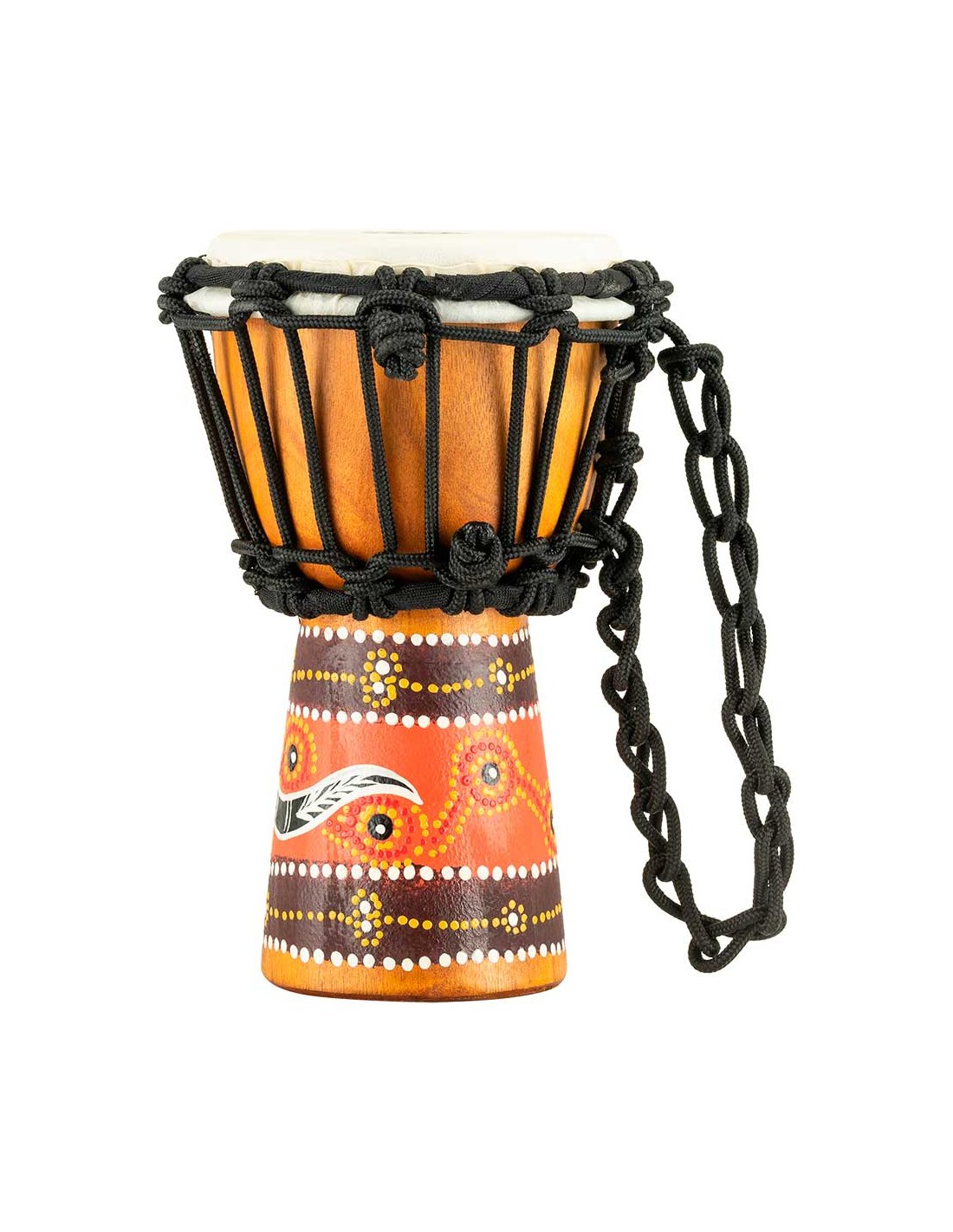 '4 1/2"” wooden djembe. Equipped with hand-selected goat heads and nylon strings for optimal sound. The extraordinary djembes from Meinl's Headliner series stand out for their traditional and exotic graphic art. Everything is handmade with meticulous workmanship and tailor-made according to Meinl's high quality standards.