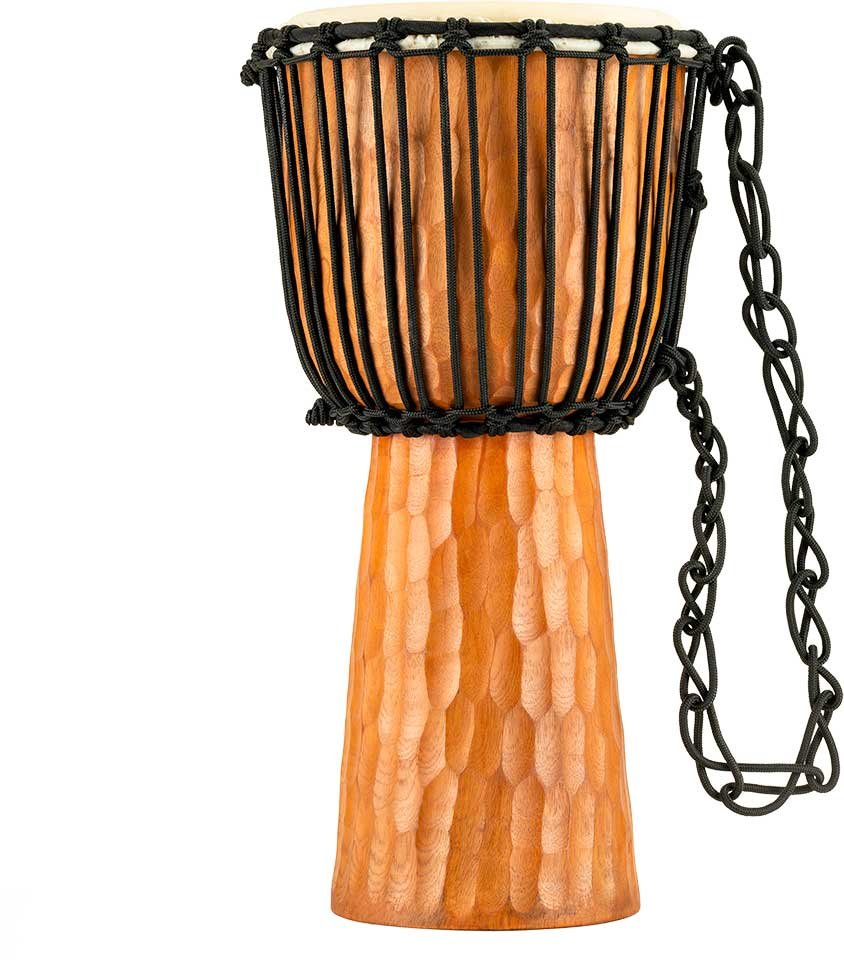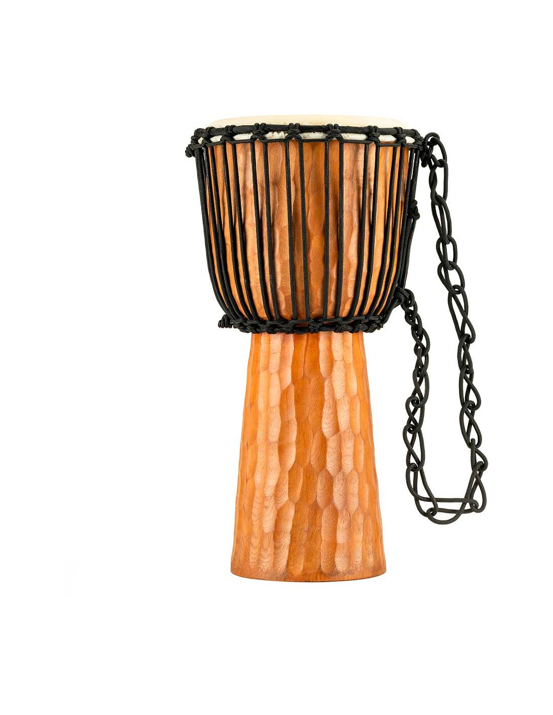 'Wooden djembe measures 10"”. Equipped with hand-selected goatskin heads and nylon strings for optimal tuning. The beautiful djembes from the Meinl Headliner series stand out for their traditional and exotic graphics. 100% meticulously handcrafted according to Meinl's high quality standards.
