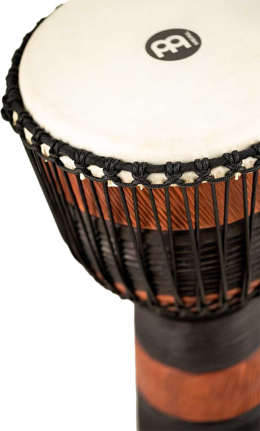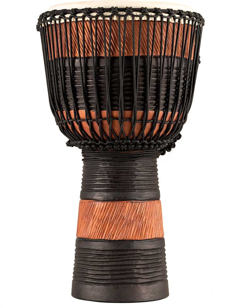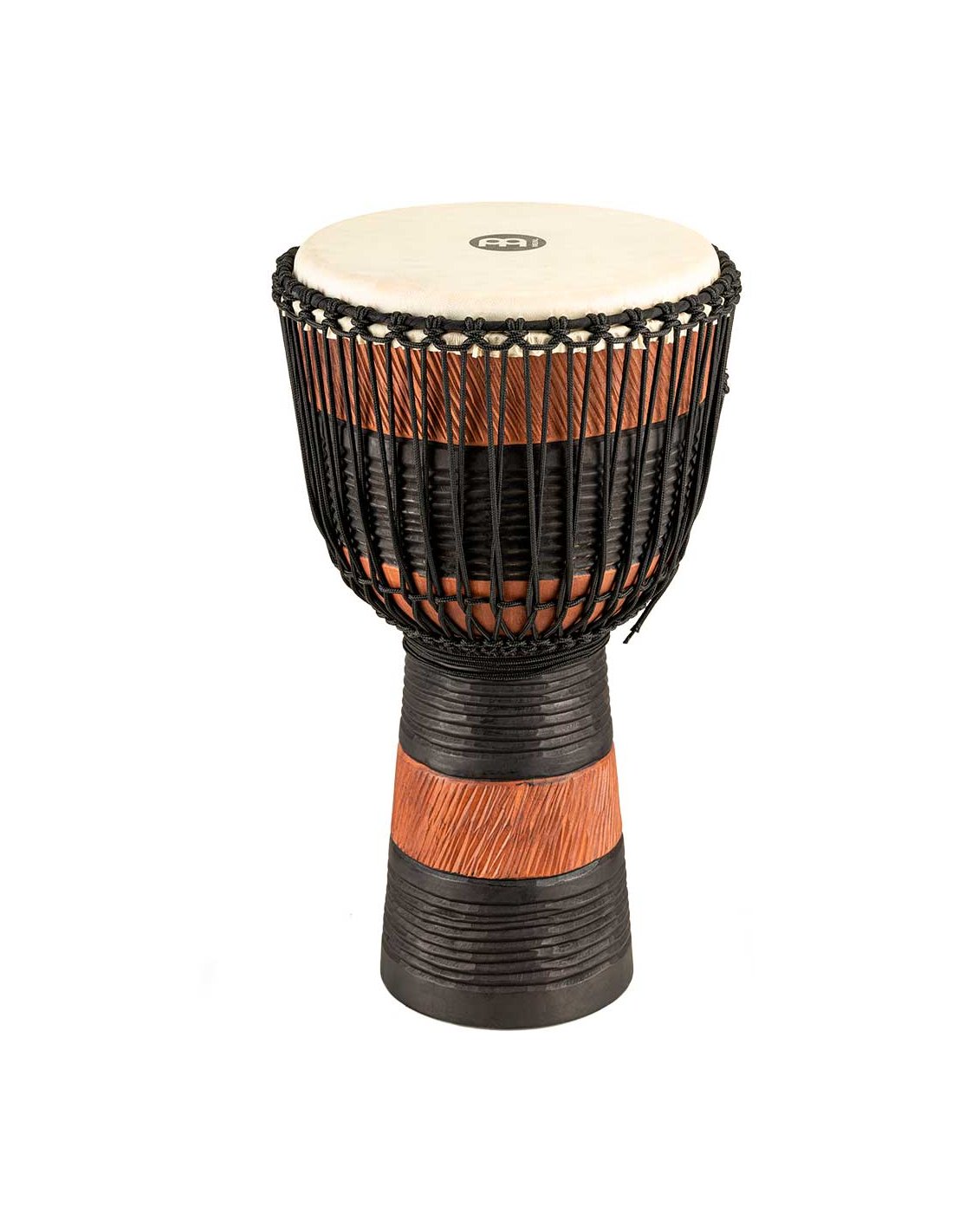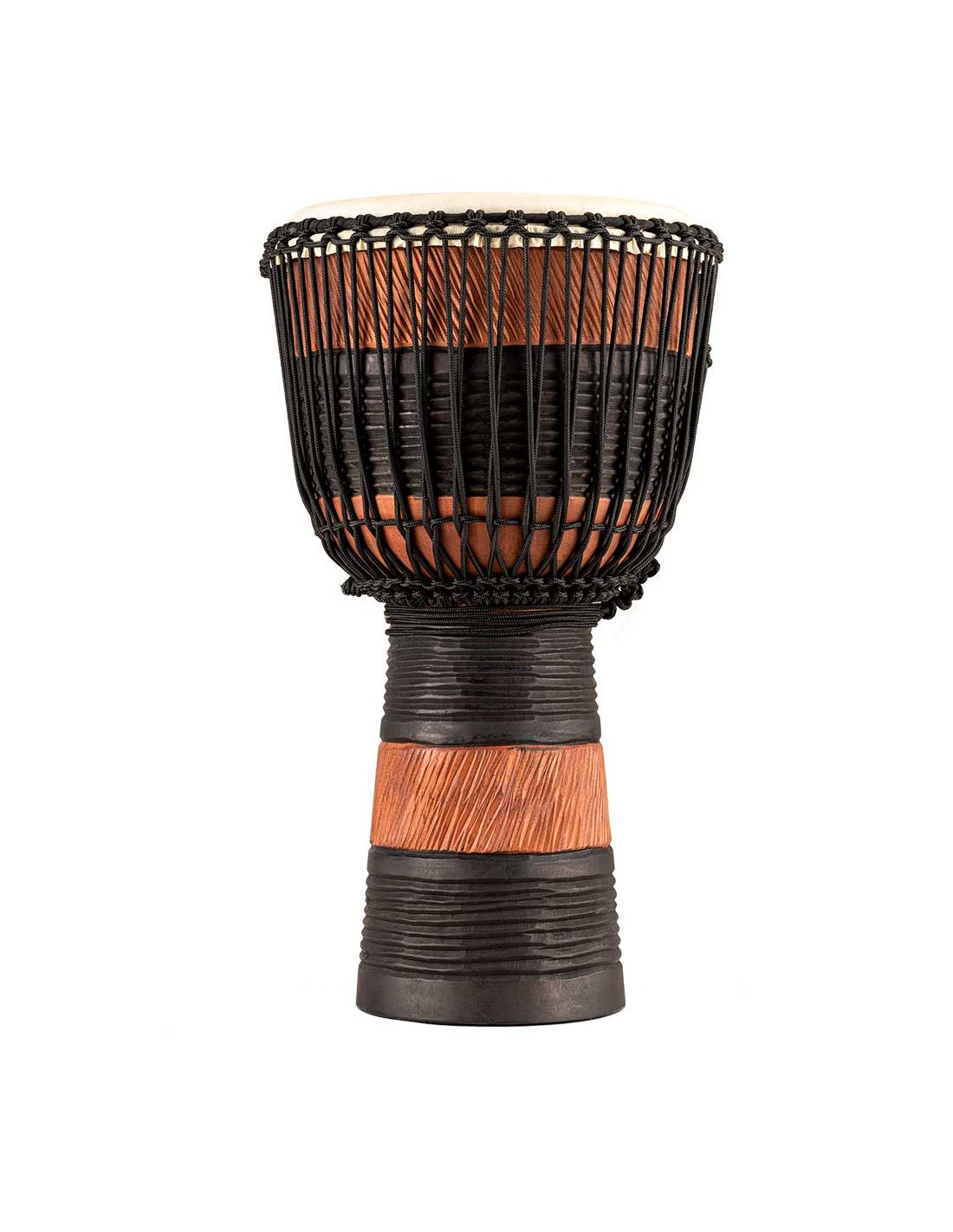 'Wooden djembe and case measures 13"”. Equipped with hand-selected goatskin heads and nylon strings for optimal tuning. The beautiful djembes from the Meinl Headliner series stand out for their traditional and exotic graphics. 100% meticulously handcrafted according to Meinl's high quality standards.