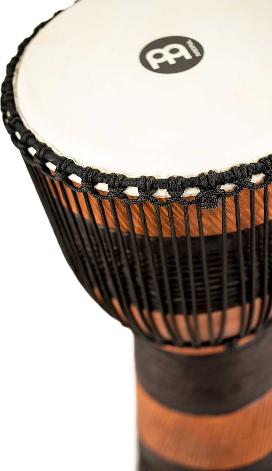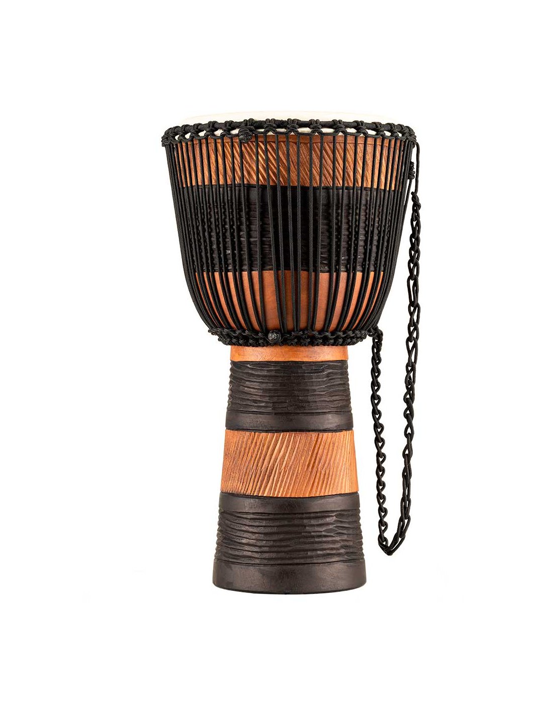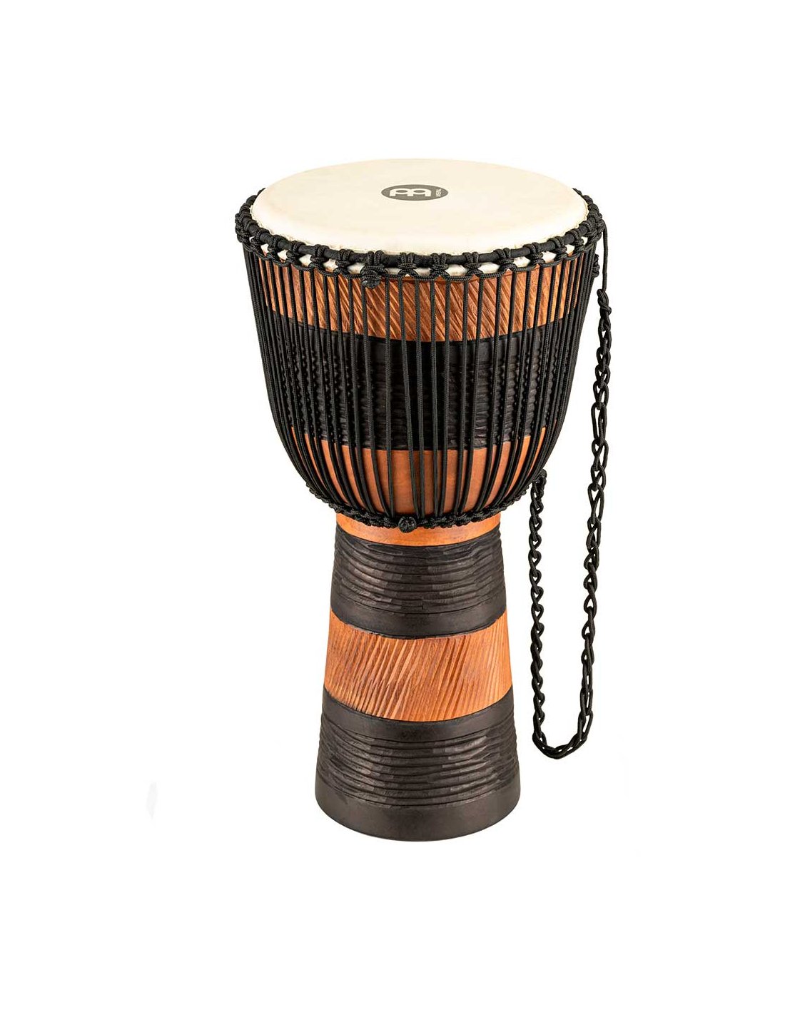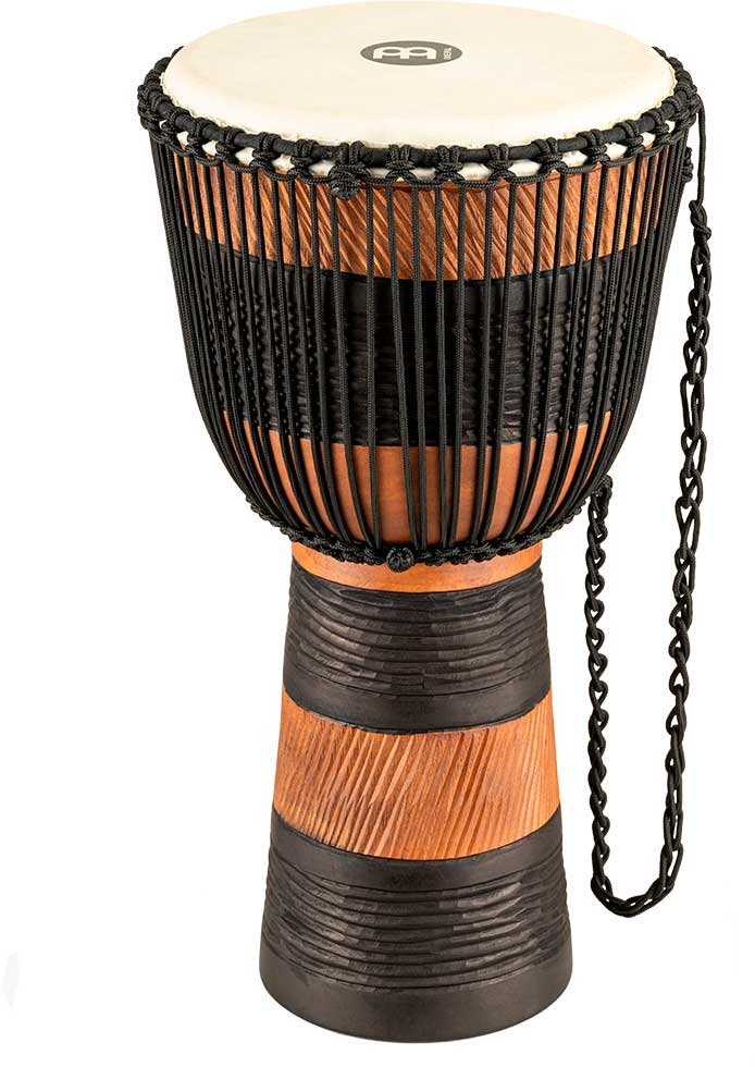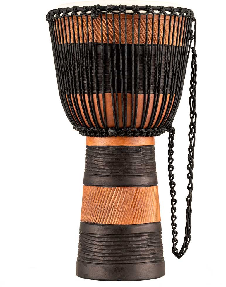 'Wooden djembe and case measures 12"”. Equipped with hand-selected goatskin heads and nylon strings for optimal tuning. The beautiful djembes from the Meinl Headliner series stand out for their traditional and exotic graphics. 100% meticulously handcrafted according to Meinl's high quality standards.