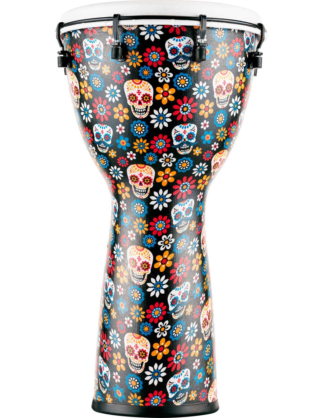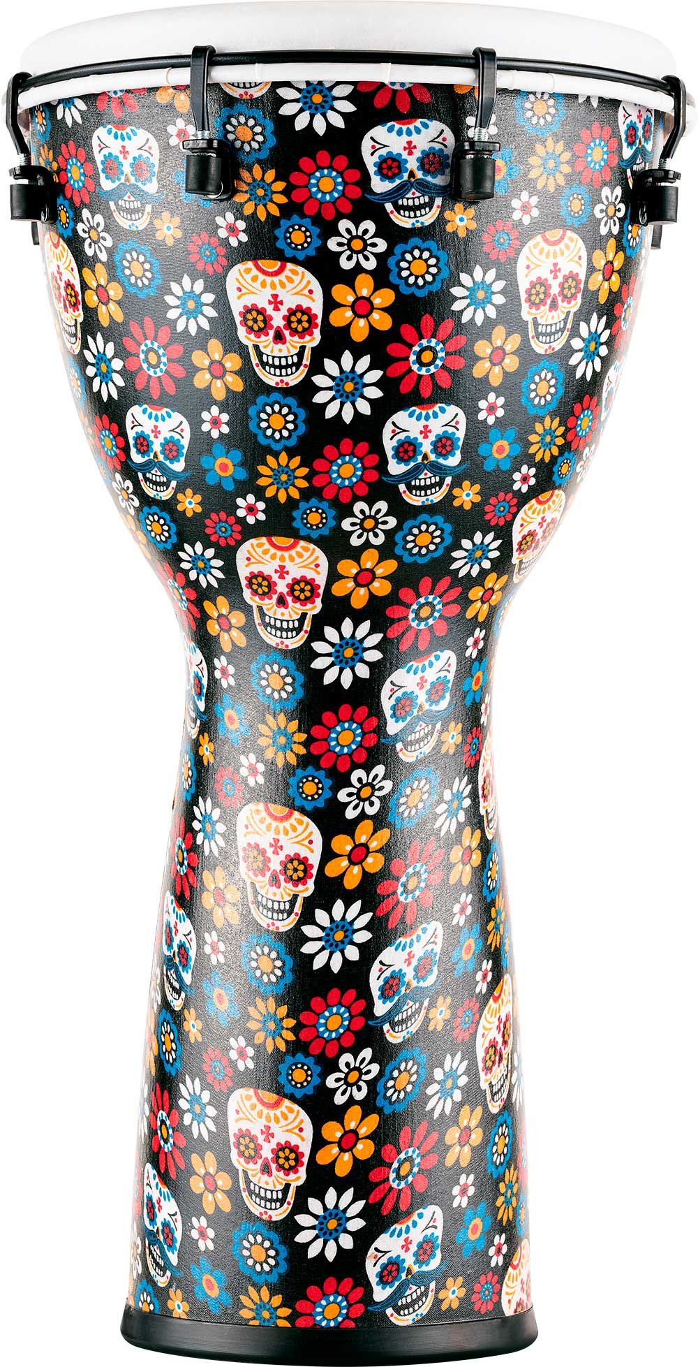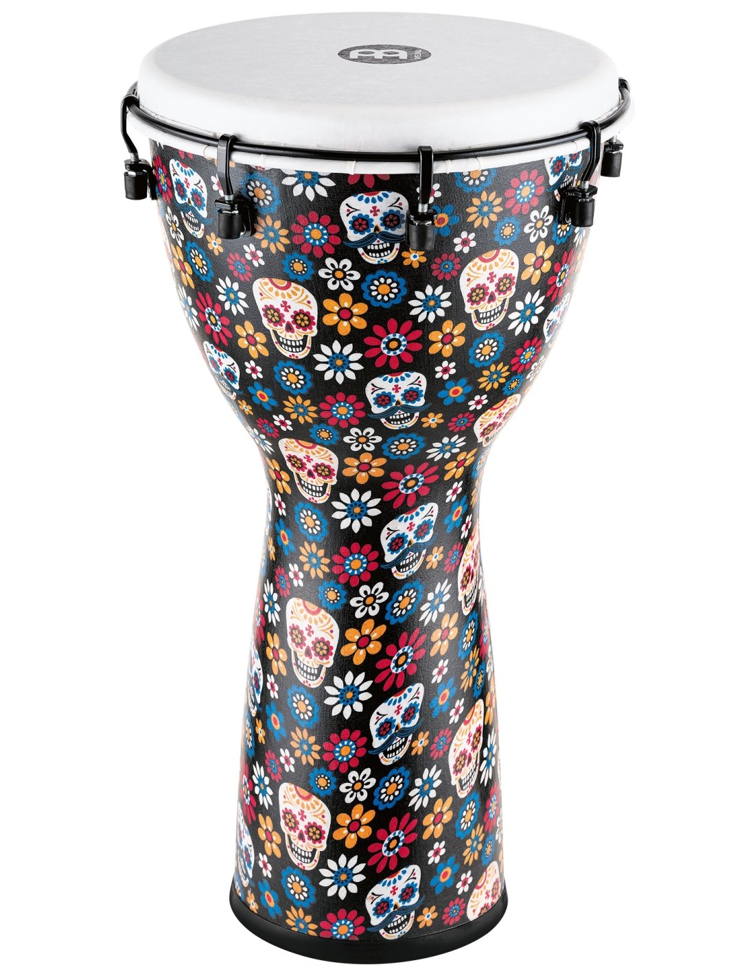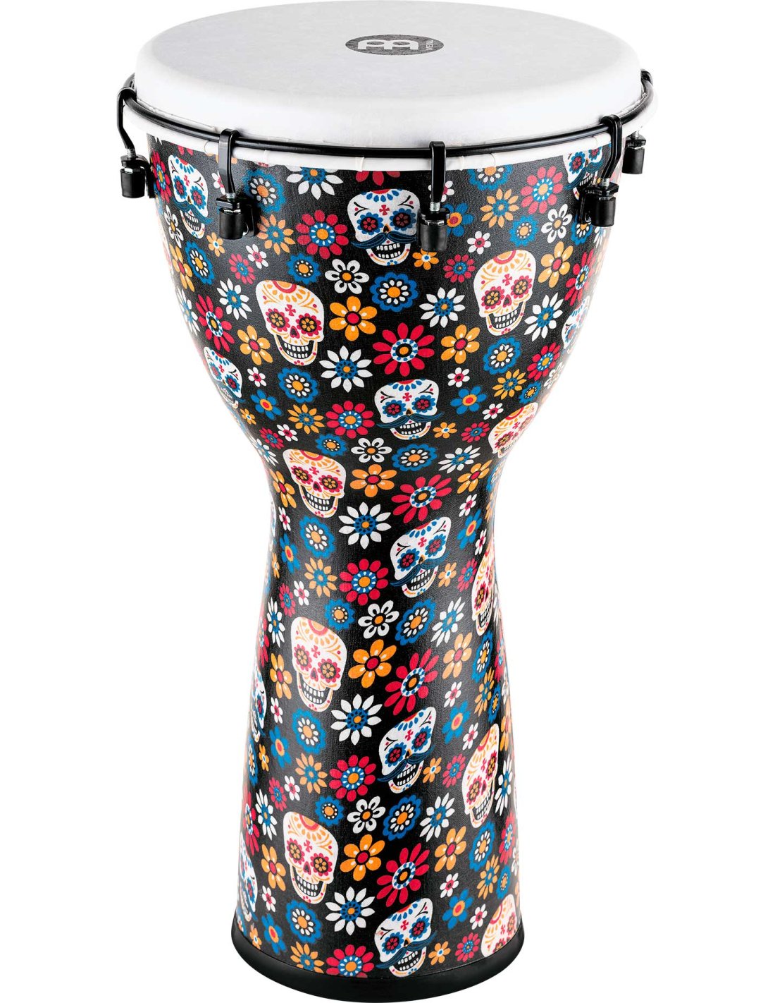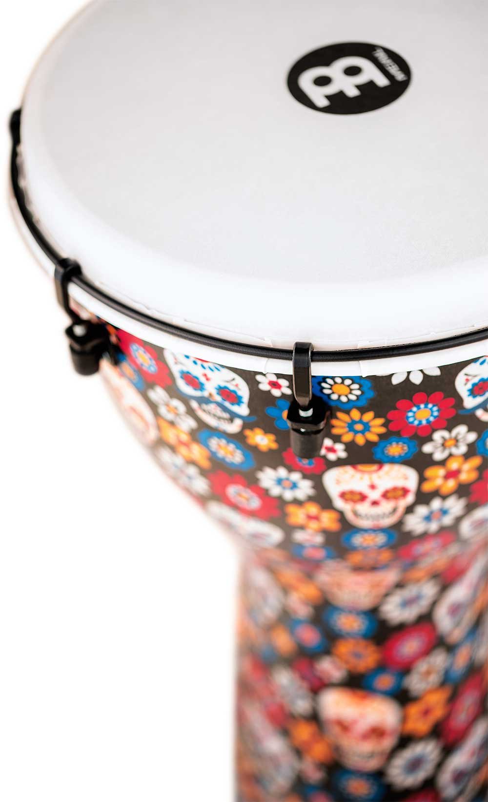 'Djembé de 12" ADJ12-DA. The Meinl Alpine Series Djembes are designed to be carried anywhere. The helmet is made of plastic, so the instrument is extremely lightweight and robust. The use of plastic gave product developers at Meinl the opportunity to save 20% more weight compared to the fiberglass model. In addition, this lightweight material also vibrates easily, giving the sound truly vibrant highs and incredibly deep bass. As a noteworthy fact, the mechanical tuning system allows us to find the perfect sound quickly.