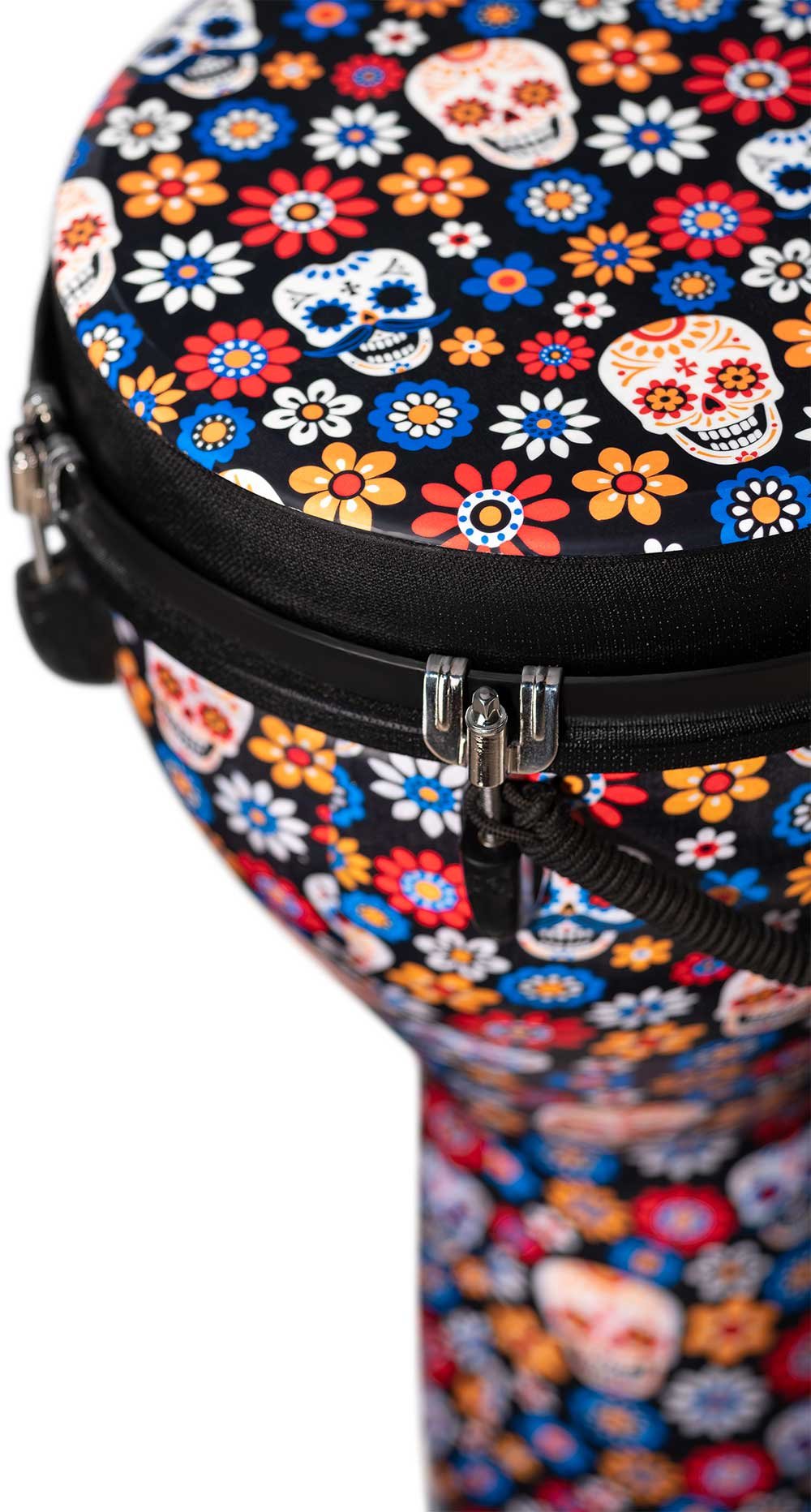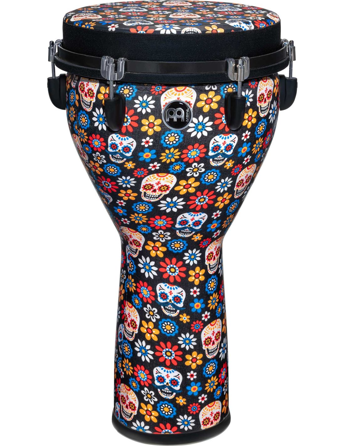 Created by taking a deep low tone with a free resonance, the Meinl Jumbo Djembe seeks to achieve great sounds with all-weather materials. Available in a variety of diameters, these Djembés produce an extraordinarily wide range of tones, from booming bass to treble. The 100% synthetic patch and helmet are not challenged with changes in temperature or humidity and combined to offer sharp and clear and sturdy bass. The light construction makes this Djembe an ideal travel companion. An easy-to-use mechanical tuning system is anchored by high-strength hardware to ensure consistent and reliable sound. Whether at home, on stage and in a studio, Jumbo Djembe is also perfect for use in classrooms and workshops.