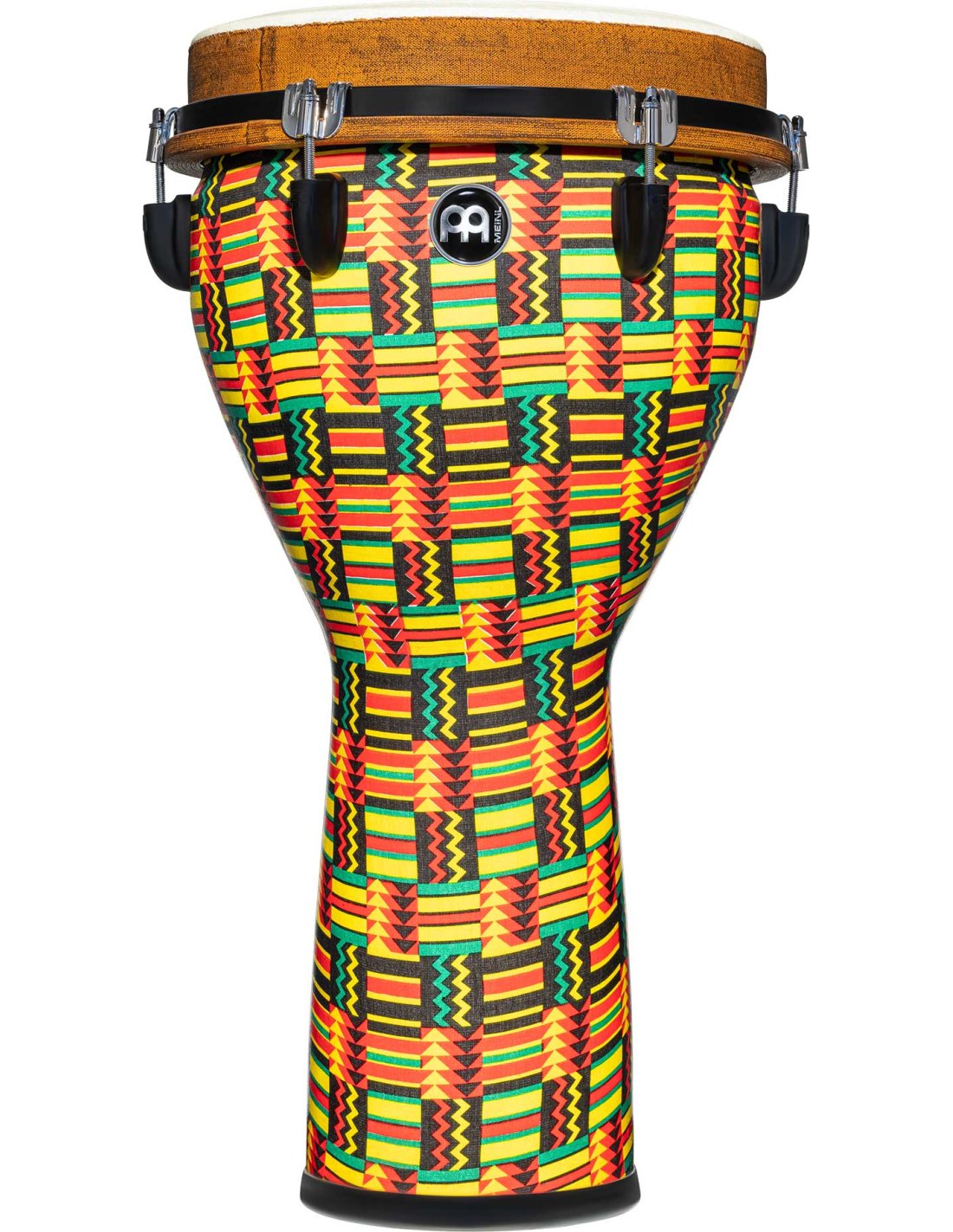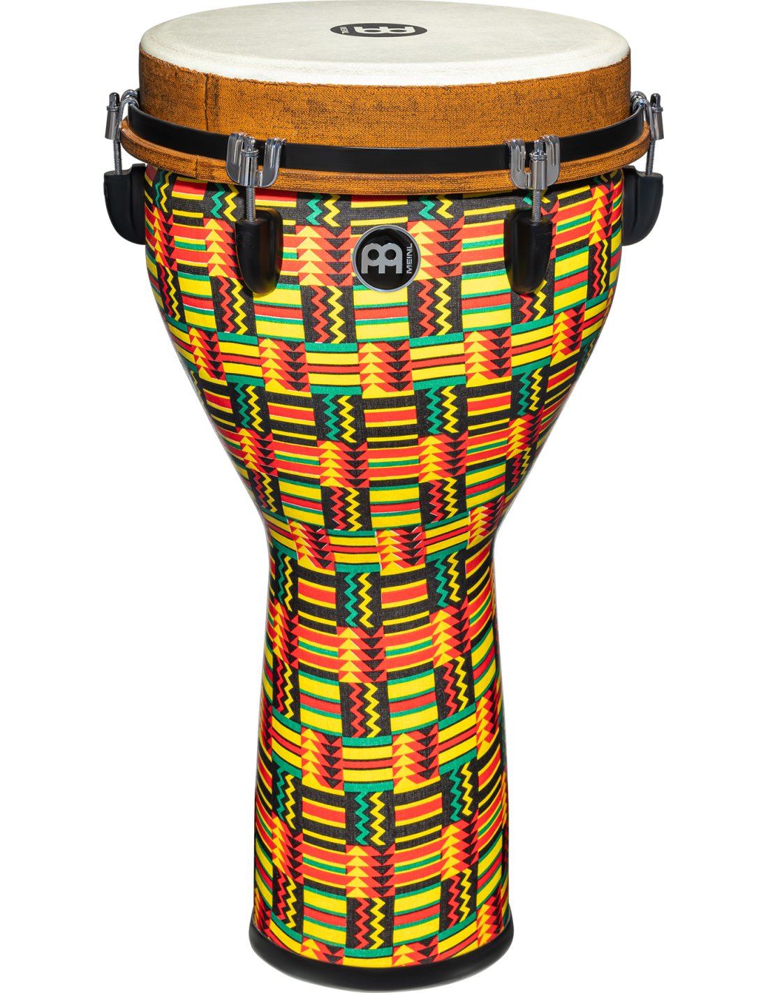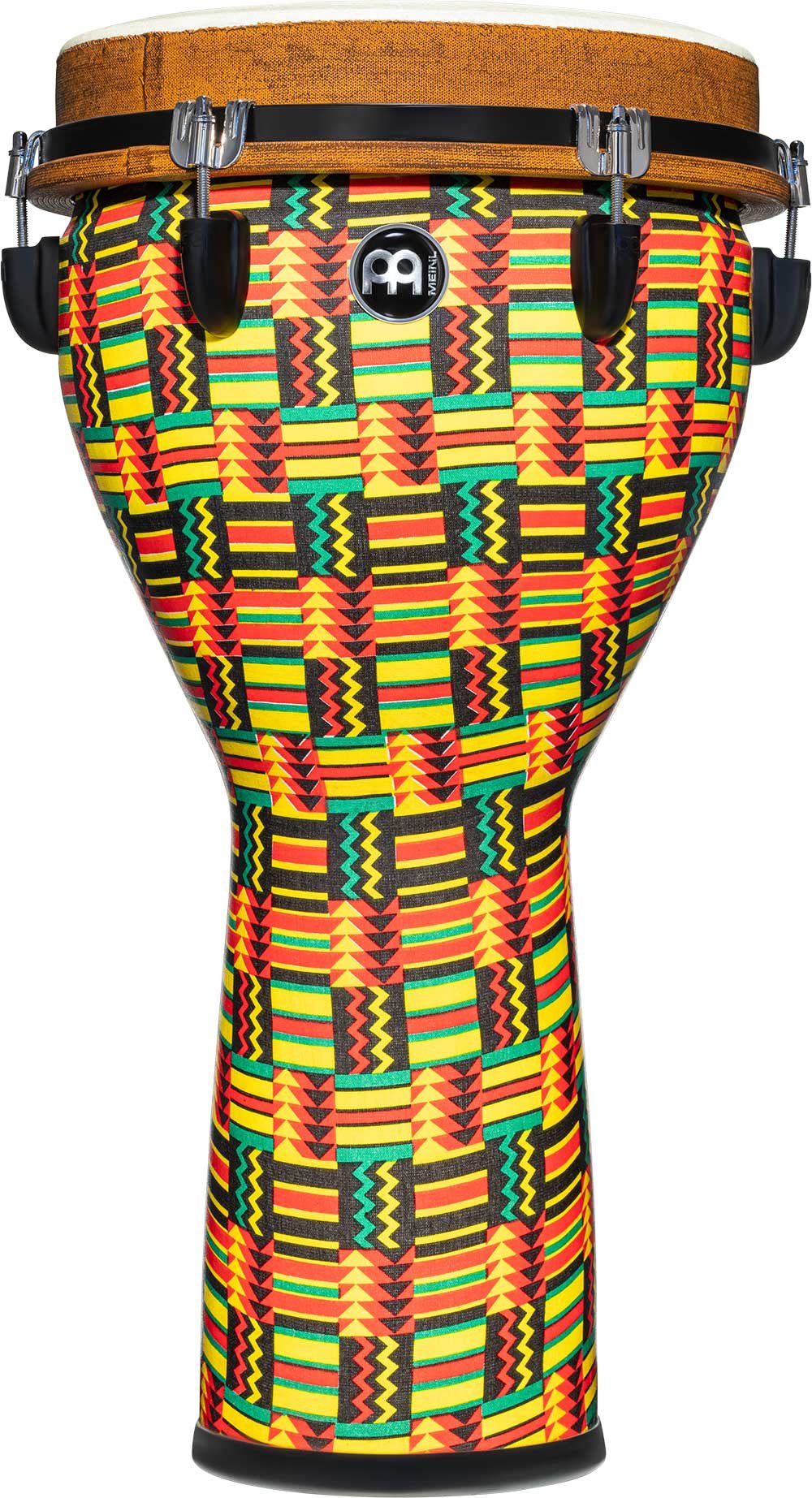 Created by taking a deep low tone with a free resonance, the Meinl Jumbo Djembe seeks to achieve great sounds with all-weather materials. Available in a variety of diameters, these Djembés produce an extraordinarily wide range of tones, from booming bass to treble. The 100% synthetic patch and helmet are not challenged with changes in temperature or humidity and combined to offer sharp and clear and sturdy bass. The light construction makes this Djembe an ideal travel companion. An easy-to-use mechanical tuning system is anchored by high-strength hardware to ensure consistent and reliable sound. Whether at home, on stage and in a studio, Jumbo Djembe is also perfect for use in classrooms and workshops.