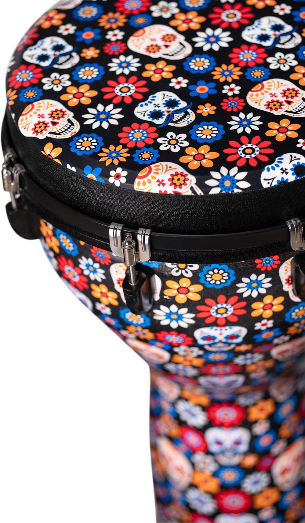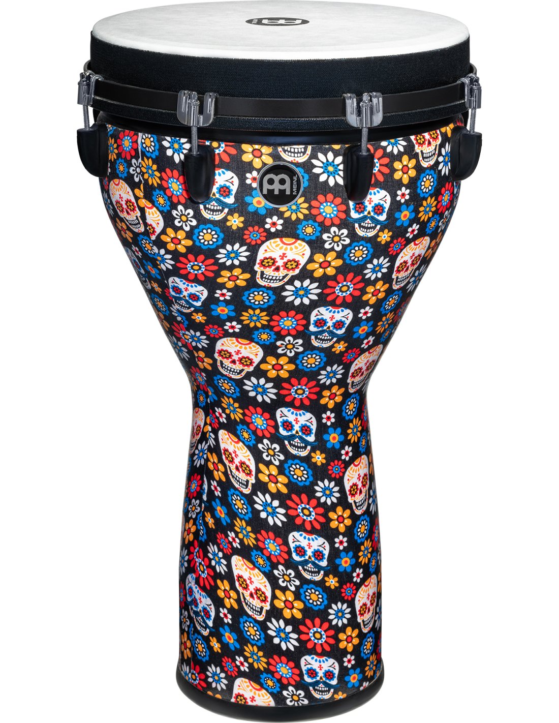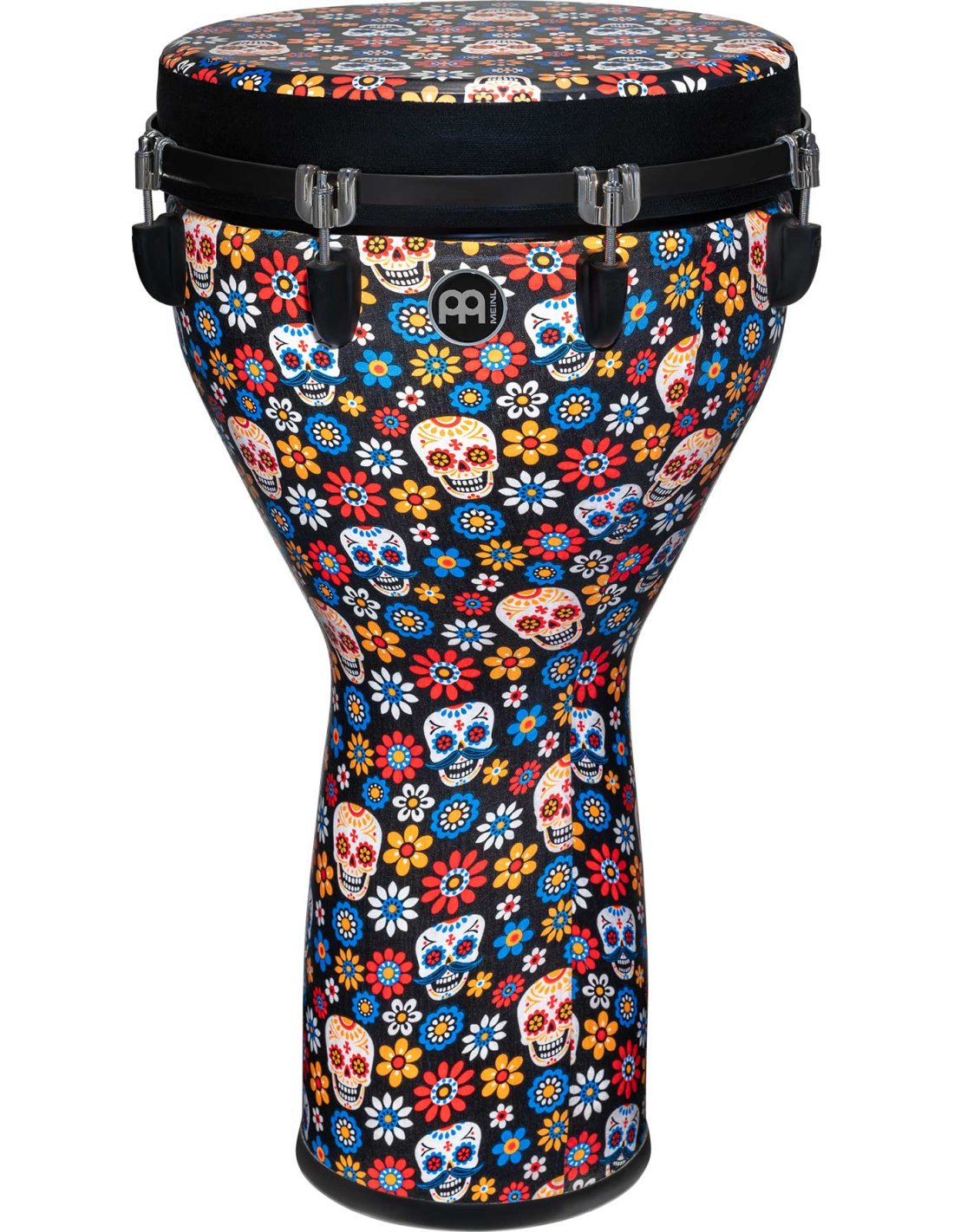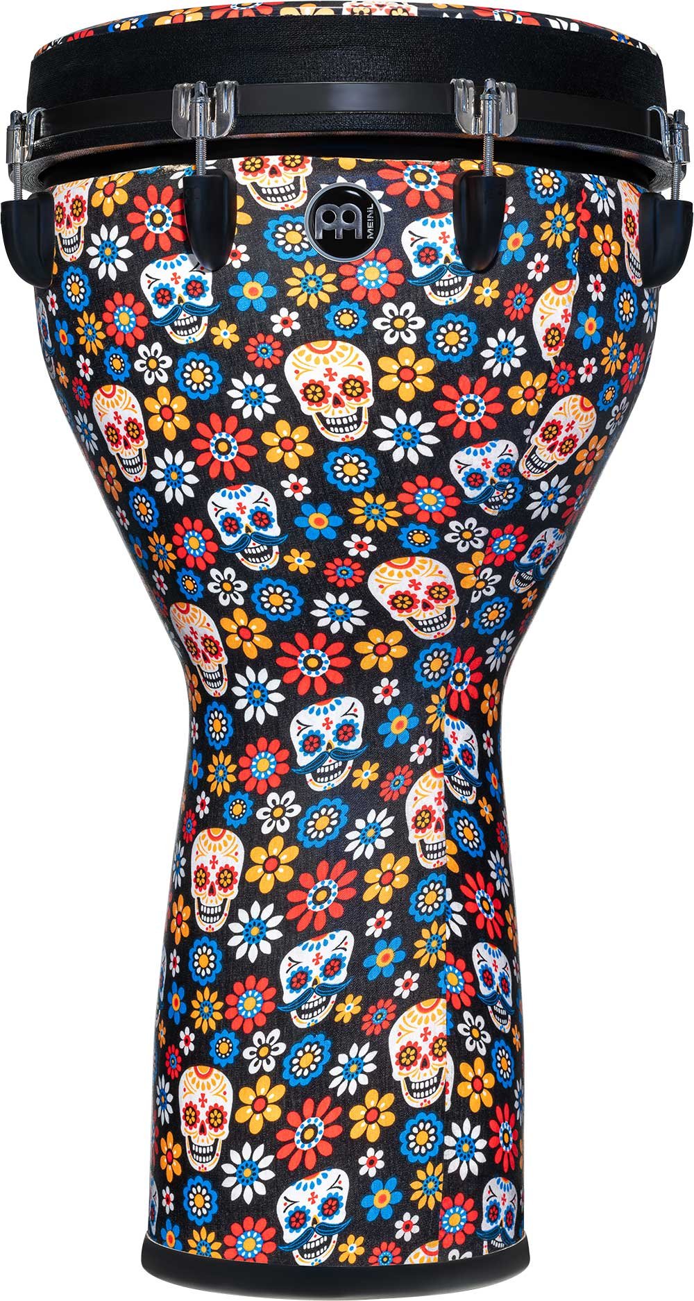 Created by taking a deep low tone with a free resonance, the Meinl Jumbo Djembe seeks to achieve great sounds with all-weather materials. Available in a variety of diameters, these Djembés produce an extraordinarily wide range of tones, from booming bass to treble. The 100% synthetic patch and helmet are not challenged with changes in temperature or humidity and combined to offer sharp and clear and sturdy bass. The light construction makes this Djembe an ideal travel companion. An easy-to-use mechanical tuning system is anchored by high-strength hardware to ensure consistent and reliable sound. Whether at home, on stage and in a studio, Jumbo Djembe is also perfect for use in classrooms and workshops.
