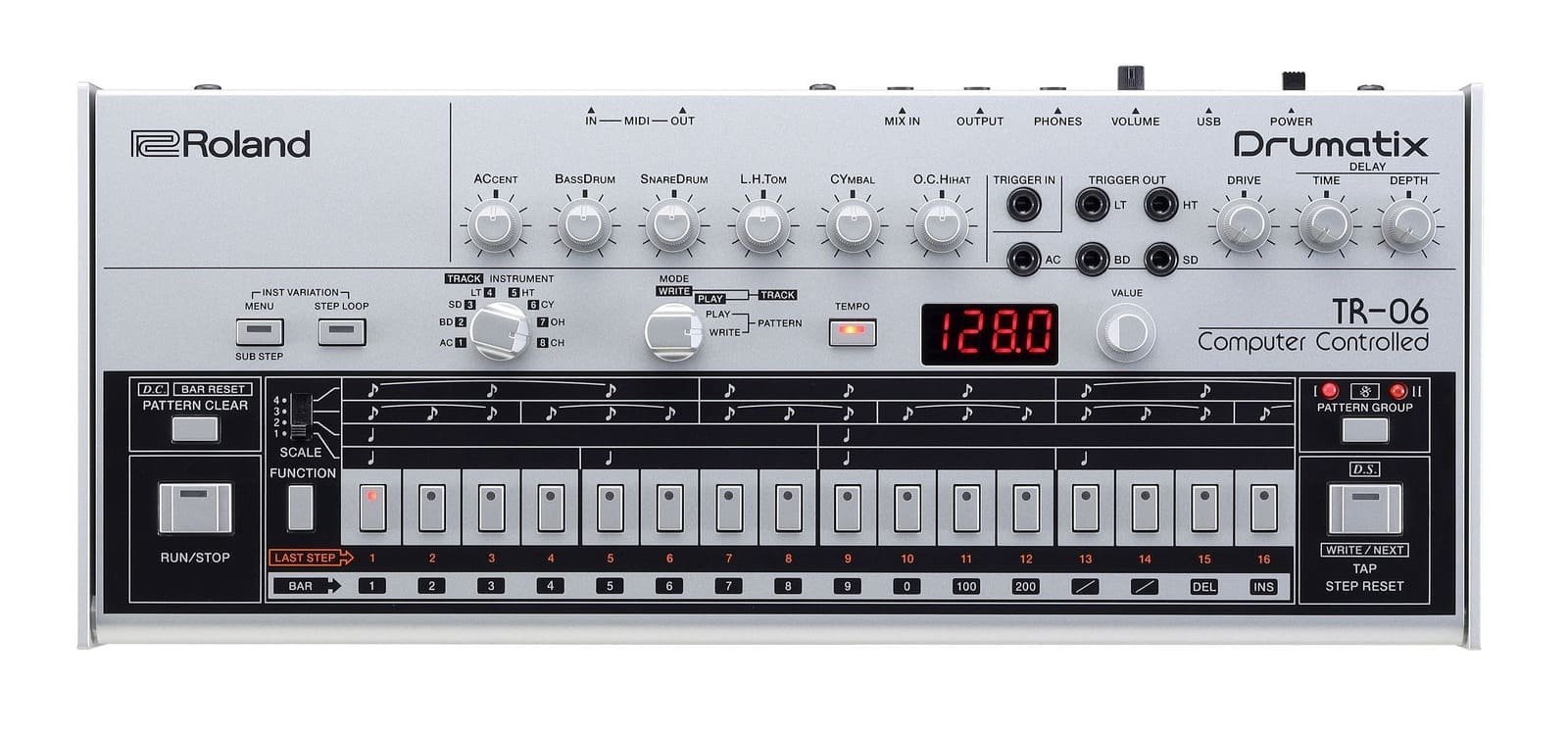 TR-06 is a detailed replica of the classic Roland TR-606, with new interesting new features. The new Roland Boutique version has the distinctive sound and iconic look of the original, with more sound editing options, innovative sequencing capabilities and a wide choice of triggers to drive modular devices.