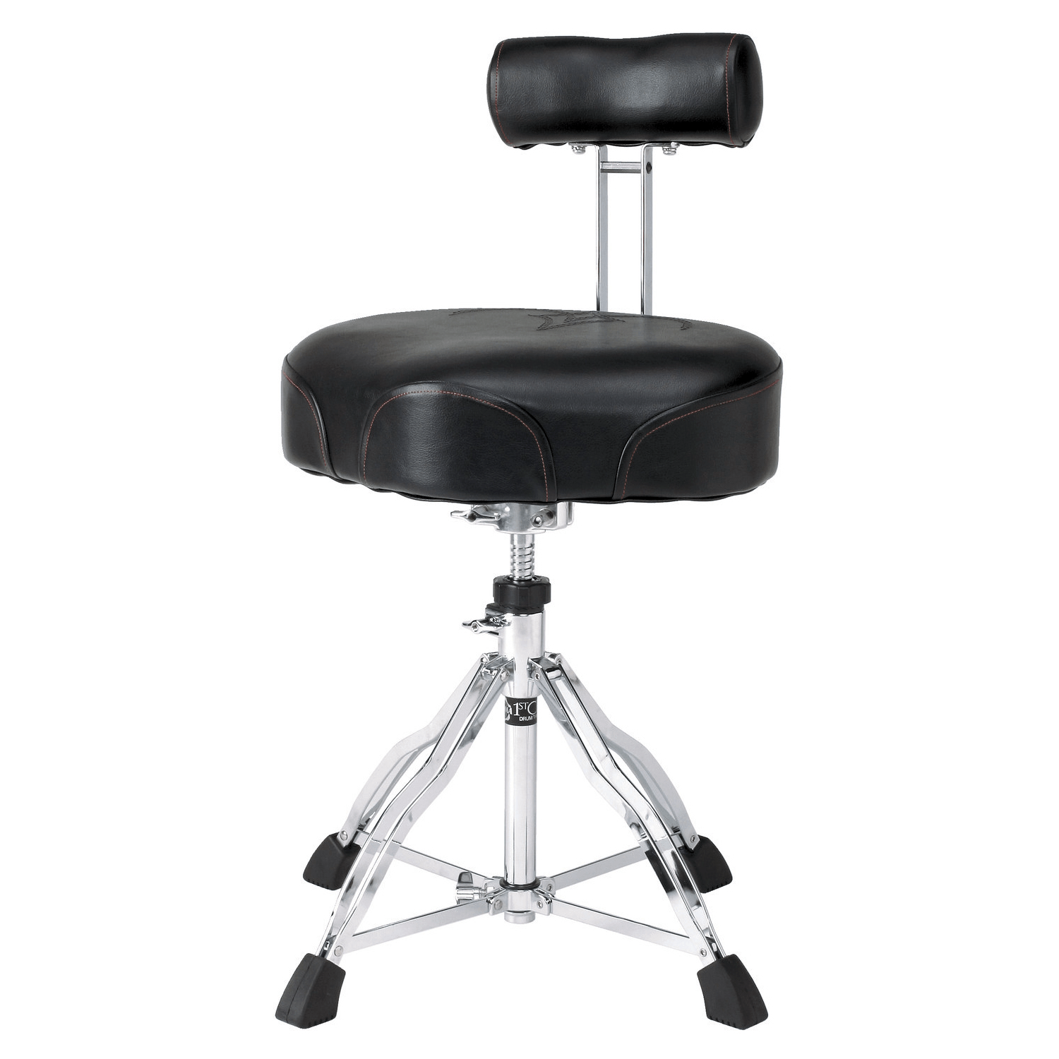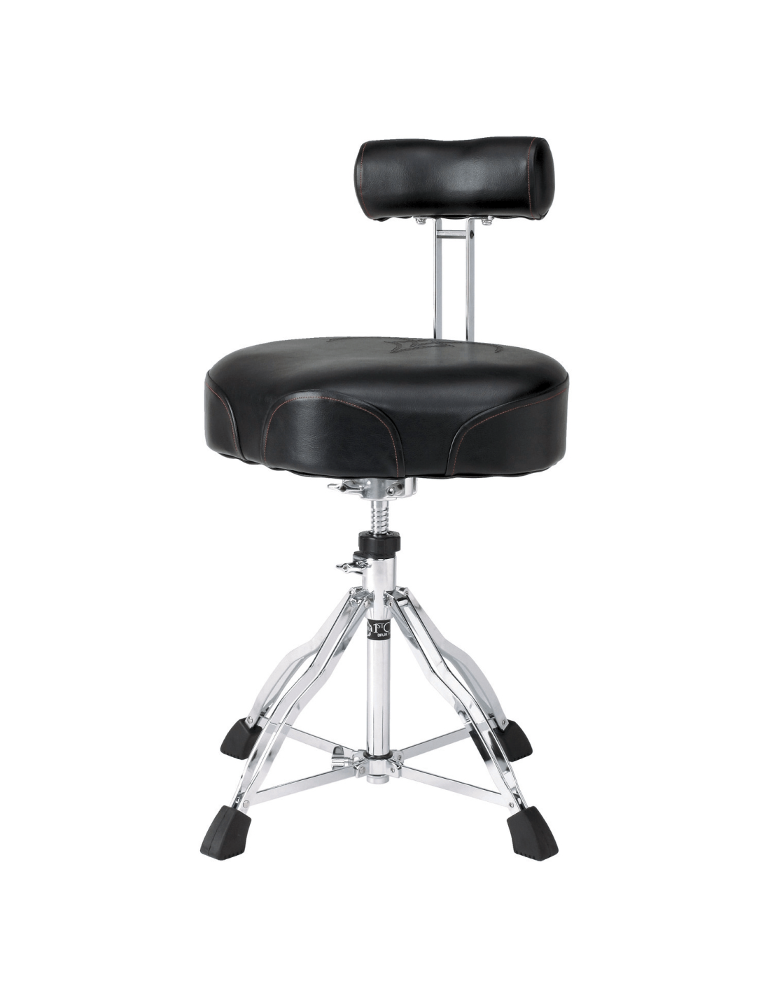 The Tama ht741b 1st choir ergo stool is a battery stool with backrest that provides greater stability in execution, characterized by a saddle seat padded with urethane foam and covered in PVC, 4 double bracket legs and height 515-665 mm.