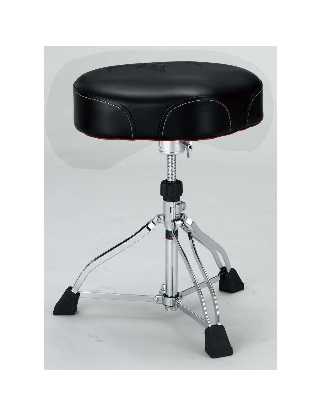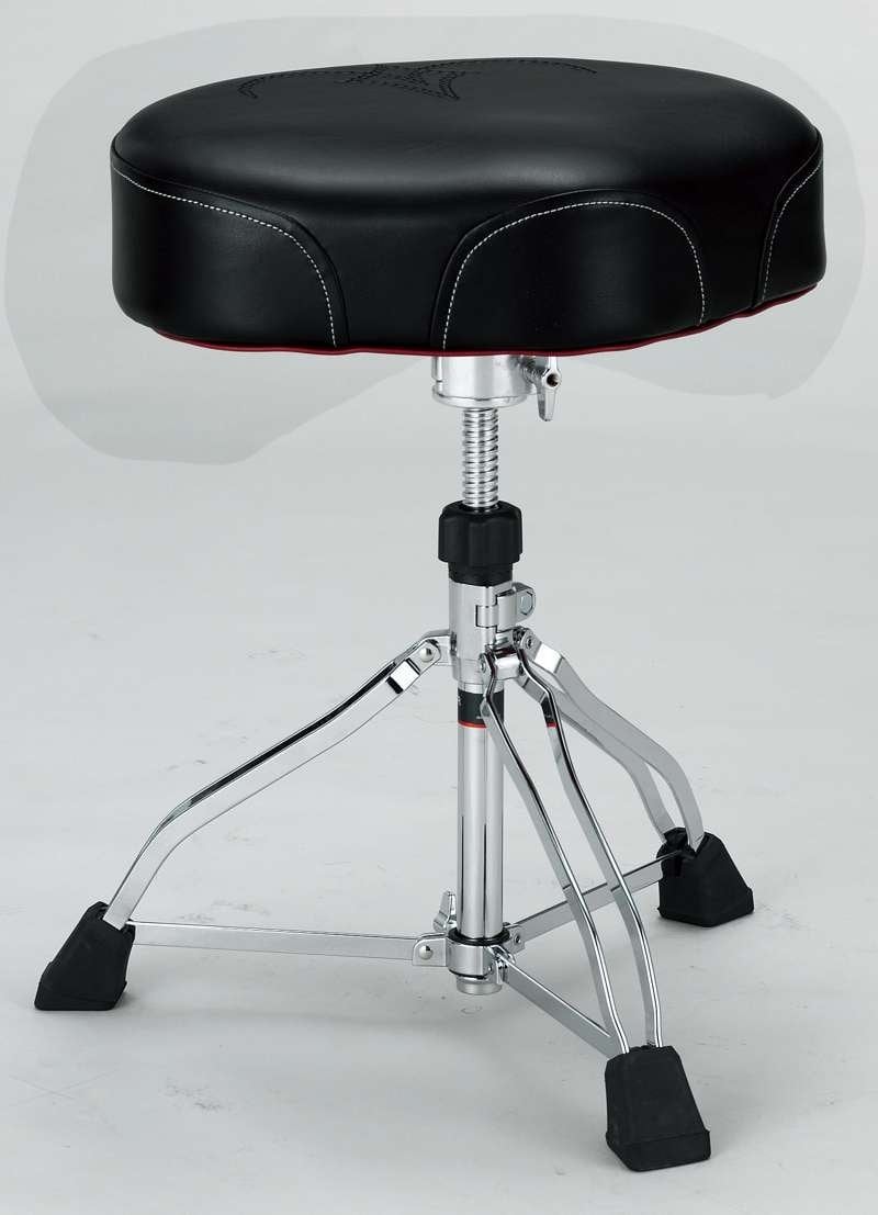 TAMA HT730B 1ST CHAIR ERGO RIDER is a battery seat with round hybrid seat/saddle, front cutaway to promote rapid leg movement, polyurethane foam padding, 3 folding double bracket legs and adjustable height between 505 mm and 660 mm