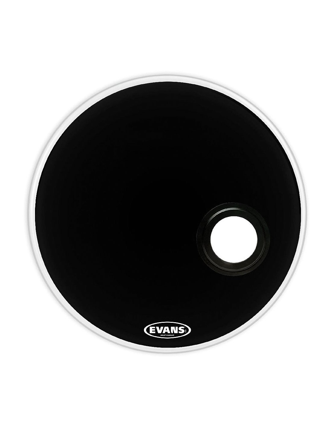 Evans BD18REMAD BK battery skins. Black color. The Evans BD18REMAD are 18” resonant bass drum heads. The E-MAD system mounted around the hole and modifiable allows vibration, attack, tone and sustain control for optimal sound and microphonation