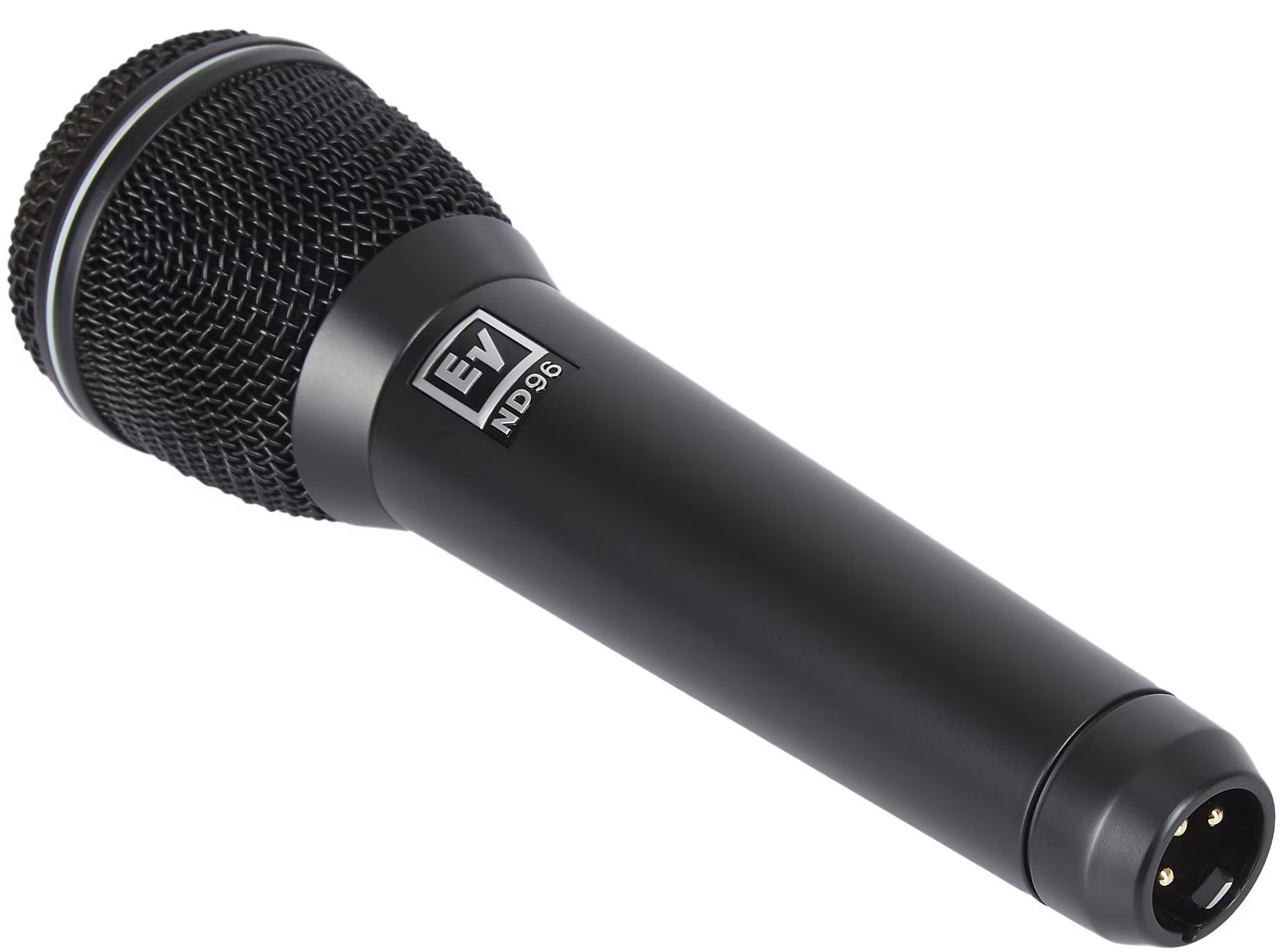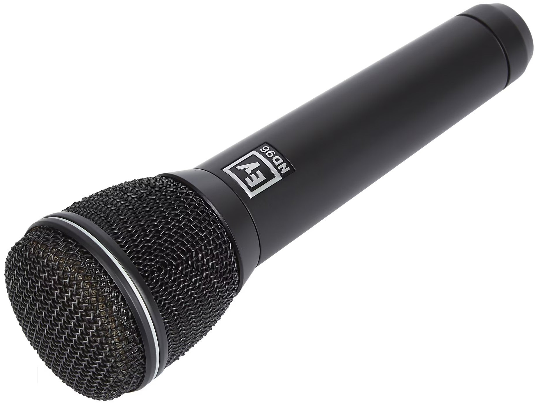 ELECTRO VOICE ND96. Supercardioid dynamic polar pattern microphone for vocal applications with presence-enhancement switch, integrated shockmount, Humbucking coil,