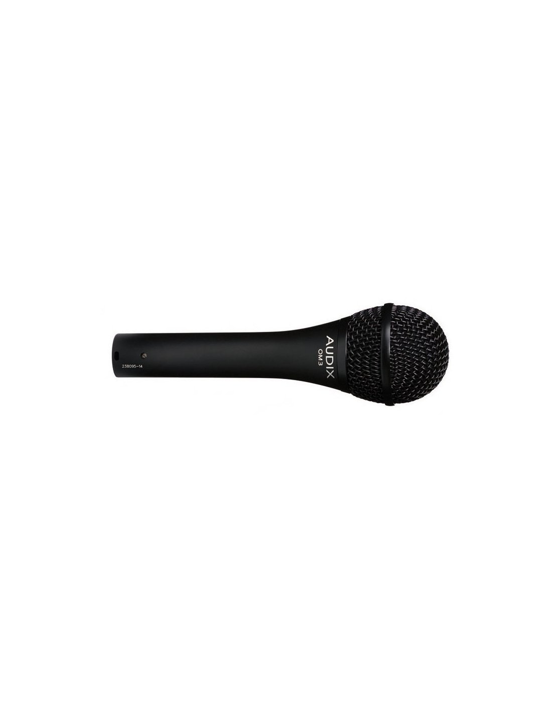 AUDIX OM3 is a dynamic hypercardioid polar pattern microphone for voice. Technical features include super tight hypercardioid polar pattern that effectively isolates the voice from the rest of the instruments on stage, high gain before feedback, VLM type C diaphragm capsule for exceptional transient response, die-cast zinc alloy body, steel mesh grille and Switchcraft
