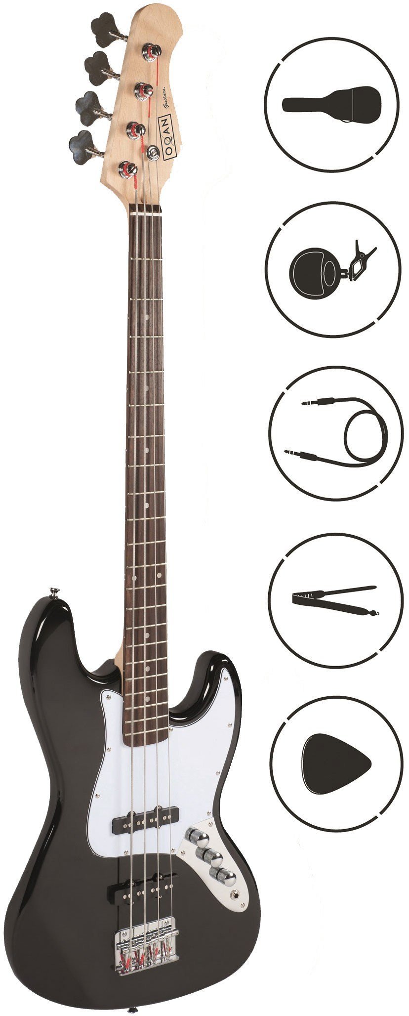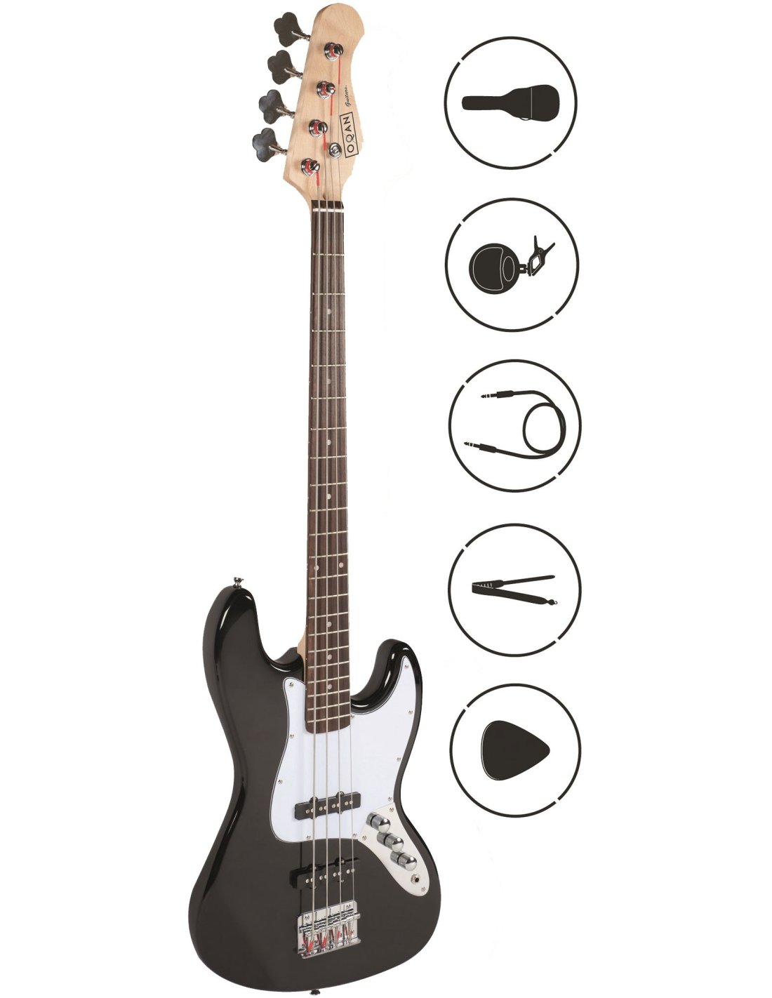 Electric bass pack. Includes Jazz Bass type bass and accessories. Bass with solid linden body. 21-key maple keyboard. 'Rosewood' compound neck. 2 JB.Ponte Vintage pickups. 1 volume control, 2 tone control. Vintage style scoop Accessories included: case, digital tuner, cable, strap and 3 picks.