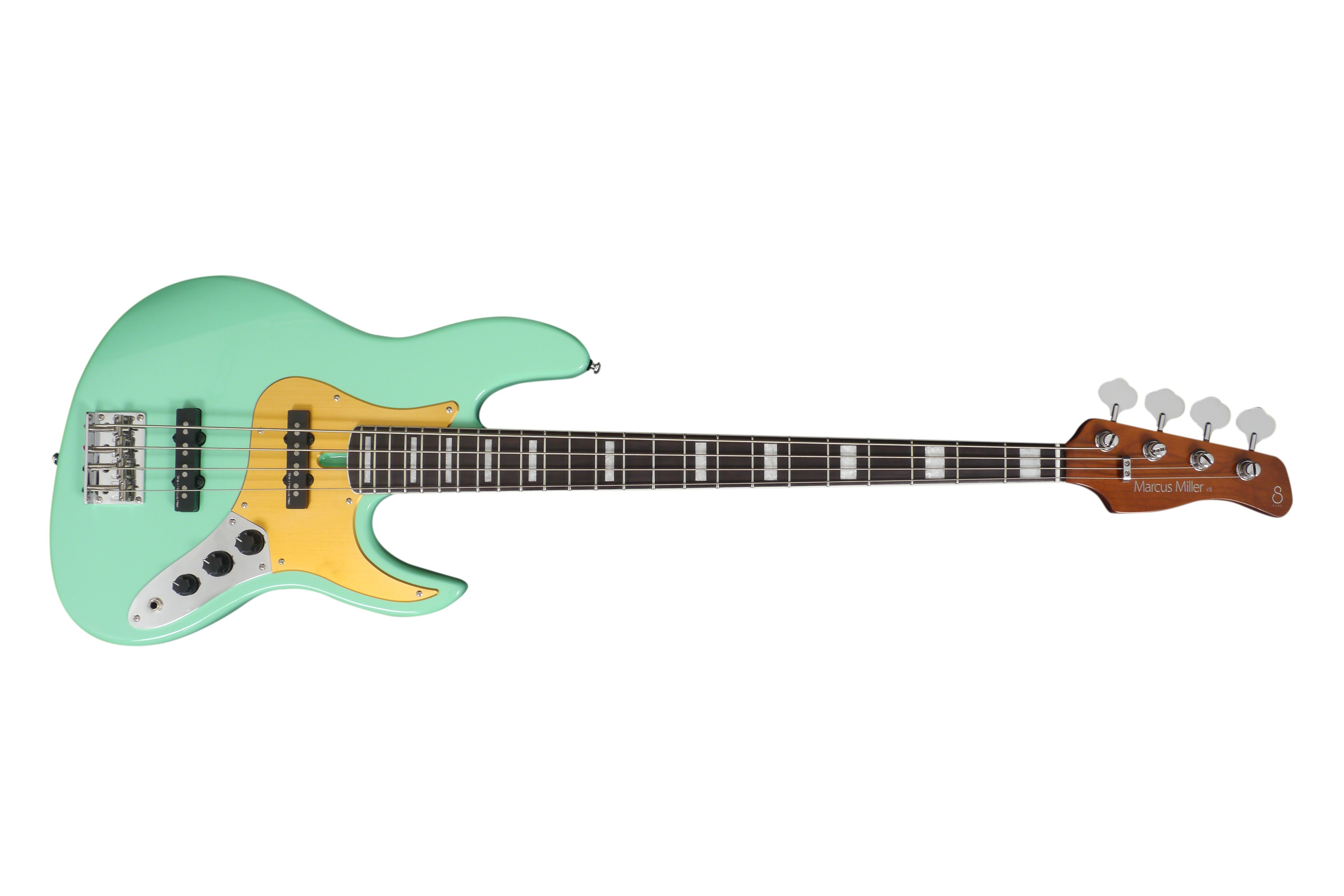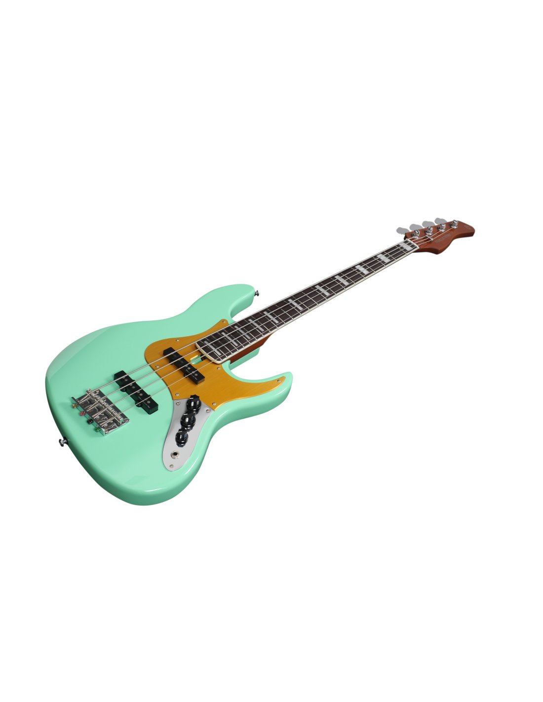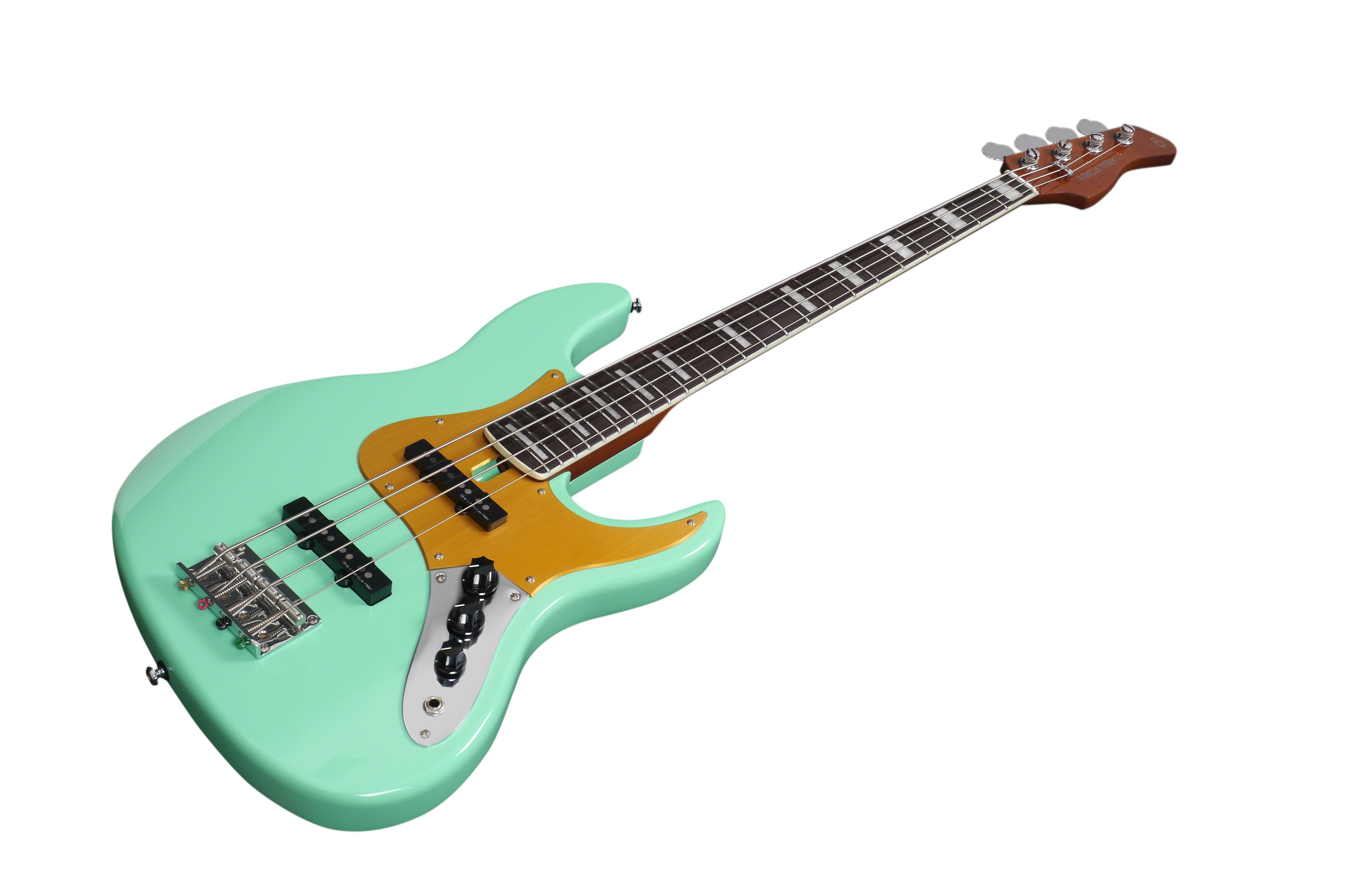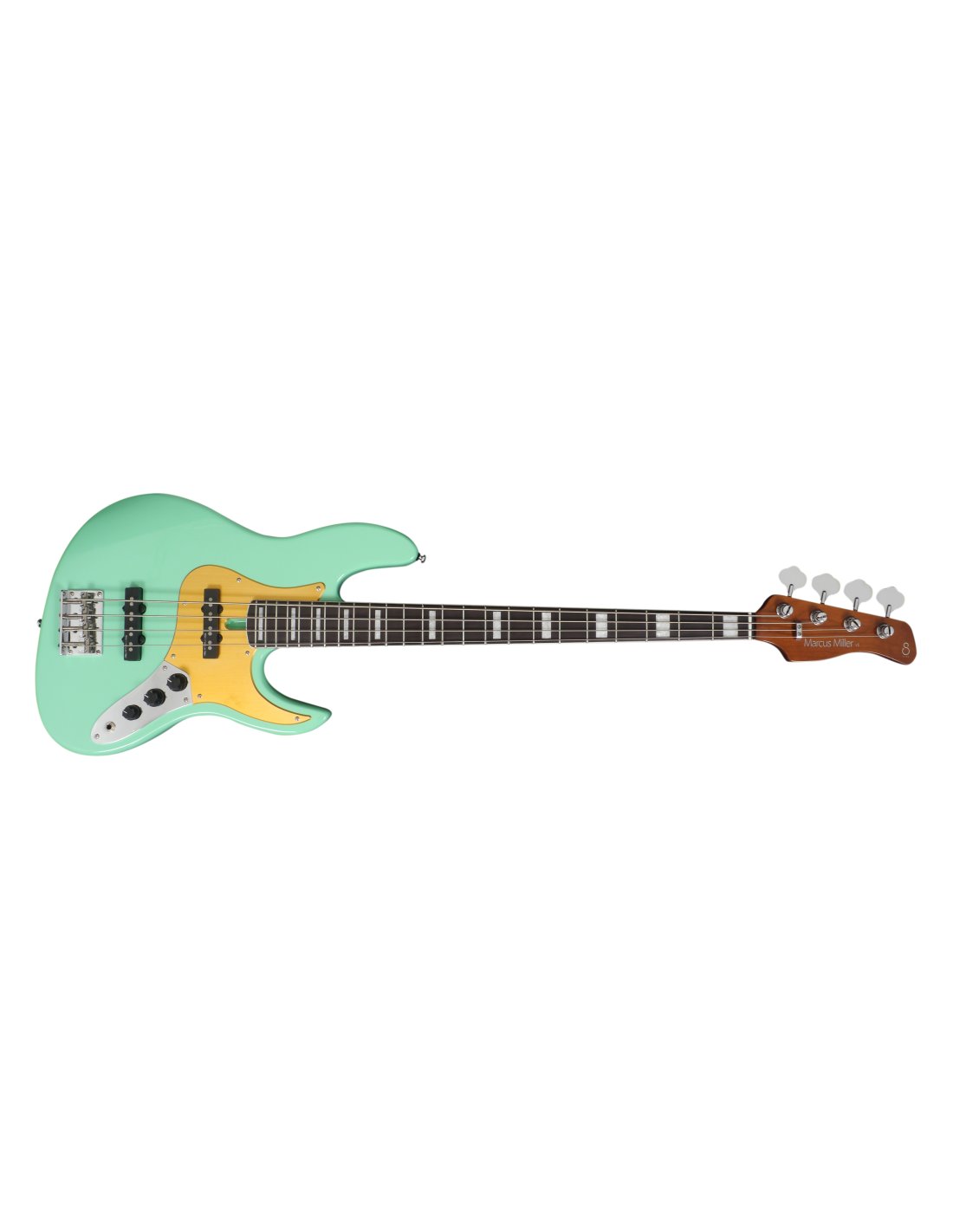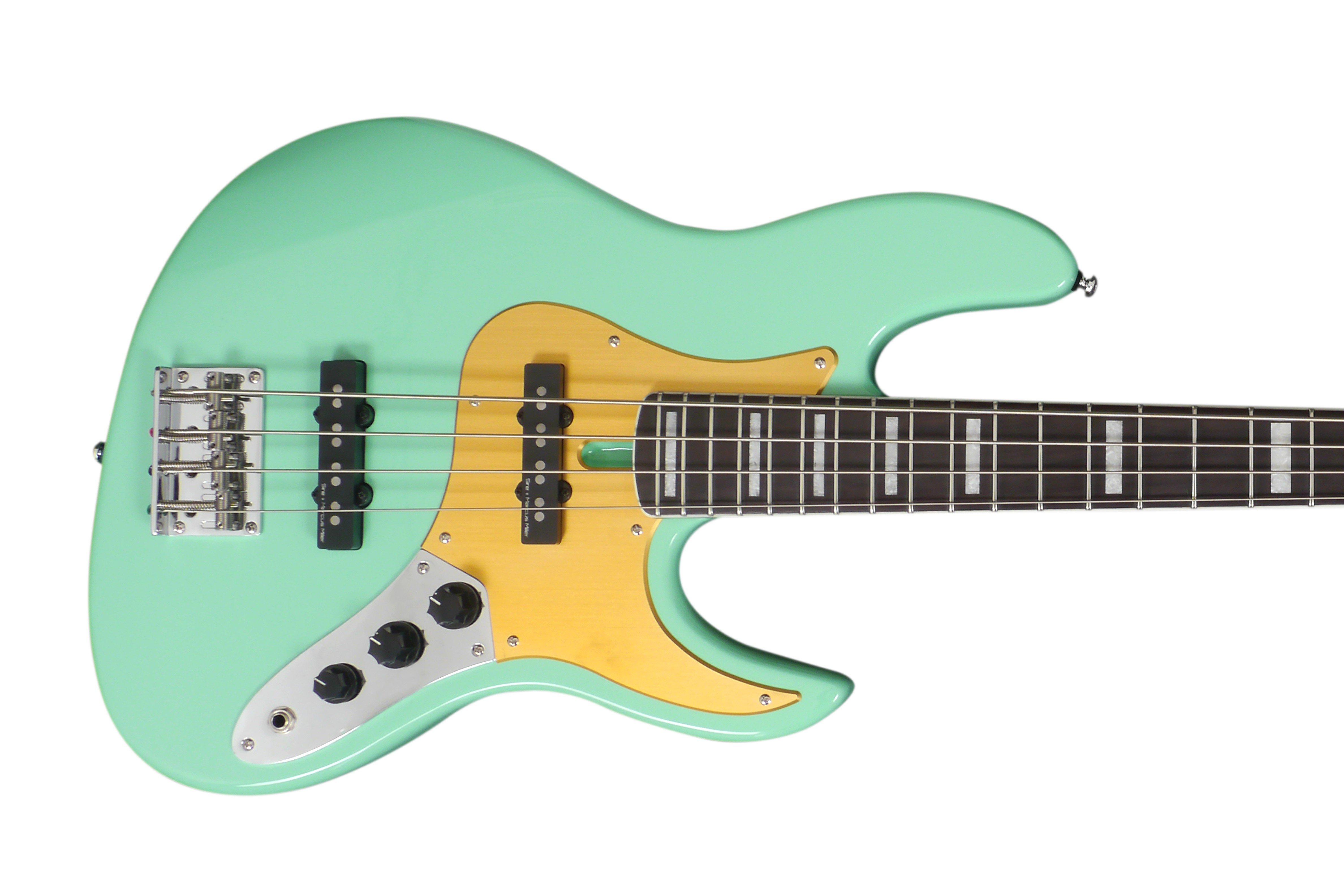 Body: North American alder. Body Shape: Marcus Miller Jazz Type 24 frets. Handle: Single Piece Hard Roasted Maple. Handle Shape: C-Shape. Scale: 34". Fingerboard: Rosewood (Rounded Edges). Keyboard Radius: 9.5". Keys: 2.4mm Medium. 24 keys. Nut: Bone Nut, 4 strings - Width 38 mm. Binding: Monolayer BK. Inlay: BK Square Block. Handle Junction: Steel Plate with 4 Screws. Pickups: Marcus Vintage-J Revolution Set. Electronics: Passive Tone and Volume Controls. Controls: Volume (PU Handle), Volume (PU Bridge), Tone (Master). Knobs: BK Jazz. Bridge: Marcus Miller Vintage-S. Mechanics: Premium Open-Gear. Mechanical Finish: Chrome. Pickguard: Gold-plated aluminum. Mild Green finish.