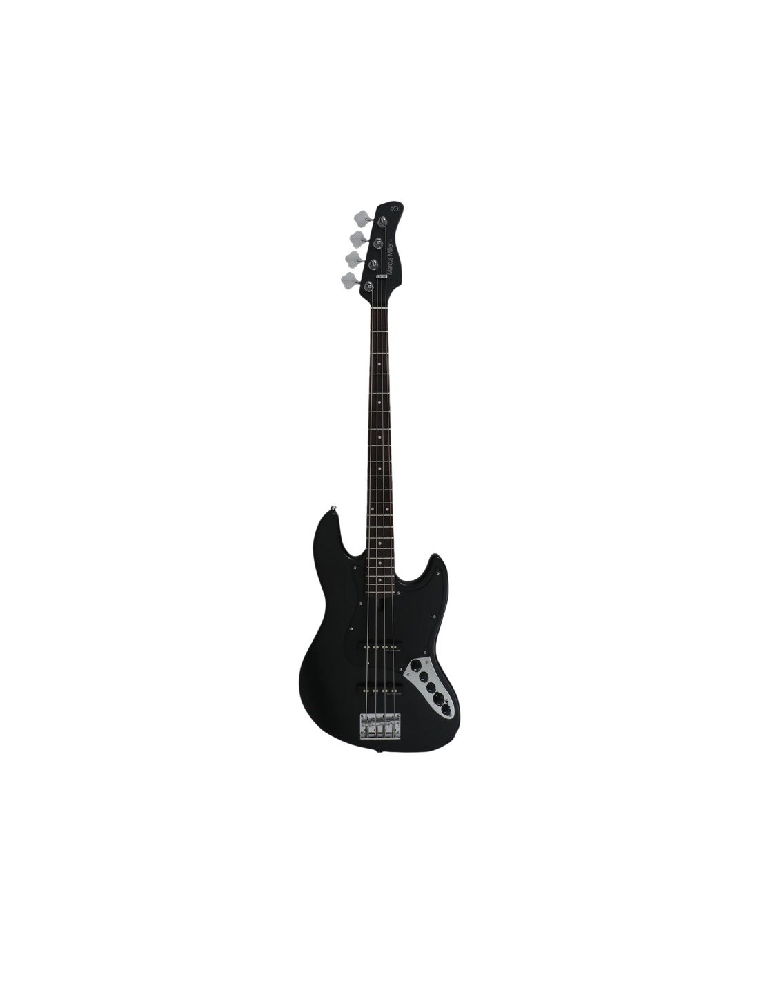 Marcus Miller bass. Body: Mahogany. Format: New Jazz Type Marcus Miller. Handle: Canadian Maple. Handle profile: C profile Scale: 34”. Fingerboard: Rosewood with rounded edges. Radius, 9.5”. Keys: 20, Medium Small. Nut: Bone, 38mm. Inlays: White mother-of-pearl Dot. Handle joint: Square 4-bolt steel plate. Pickup: Marcus Super-J Revolution. Electronics: Marcus Heritage-3 with mid-frequency control. Controls: Volume/Tone (Dual Pot) Blender Treble Mid/Medium Frequency Pickup (Dual Pot) Bass, Mini Toggle (Active/Passive). Knob: Jazz Type in black plastic. Bridge: Marcus Miller Standard with Thru Hole holes. Mechanics: Standard, Open. Hardware: Chrome plated. Pickguard: 3-layer black/white/black. Finish: Black Satin
