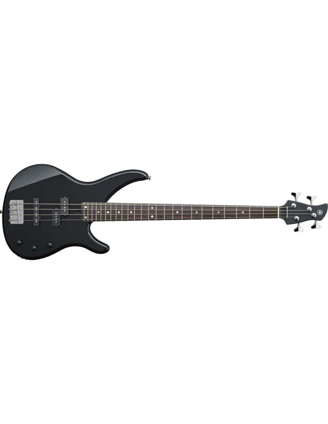 Yamaha TRBX174 electric bass guitar color BLACK. The Yamaha TRBX174 is a 4-string electric bass guitar. Technical features include alder body, maple neck, sonokelin fingerboard, 10" radius, 24 frets, vintage bridge, split-coil (neck) and single-coil (bridge) pickups