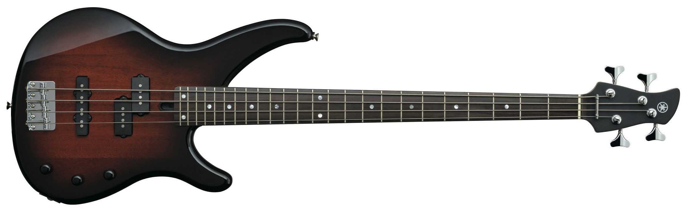 Yamaha TRBX174 electric bass guitar color OLD VIOLIN SUNBURST. The Yamaha TRBX174 is a 4-string electric bass guitar. Technical features include alder body, maple neck, sonokelin fingerboard, 10" radius, 24 frets, vintage bridge, split-coil (neck) and single-coil (bridge) pickups
