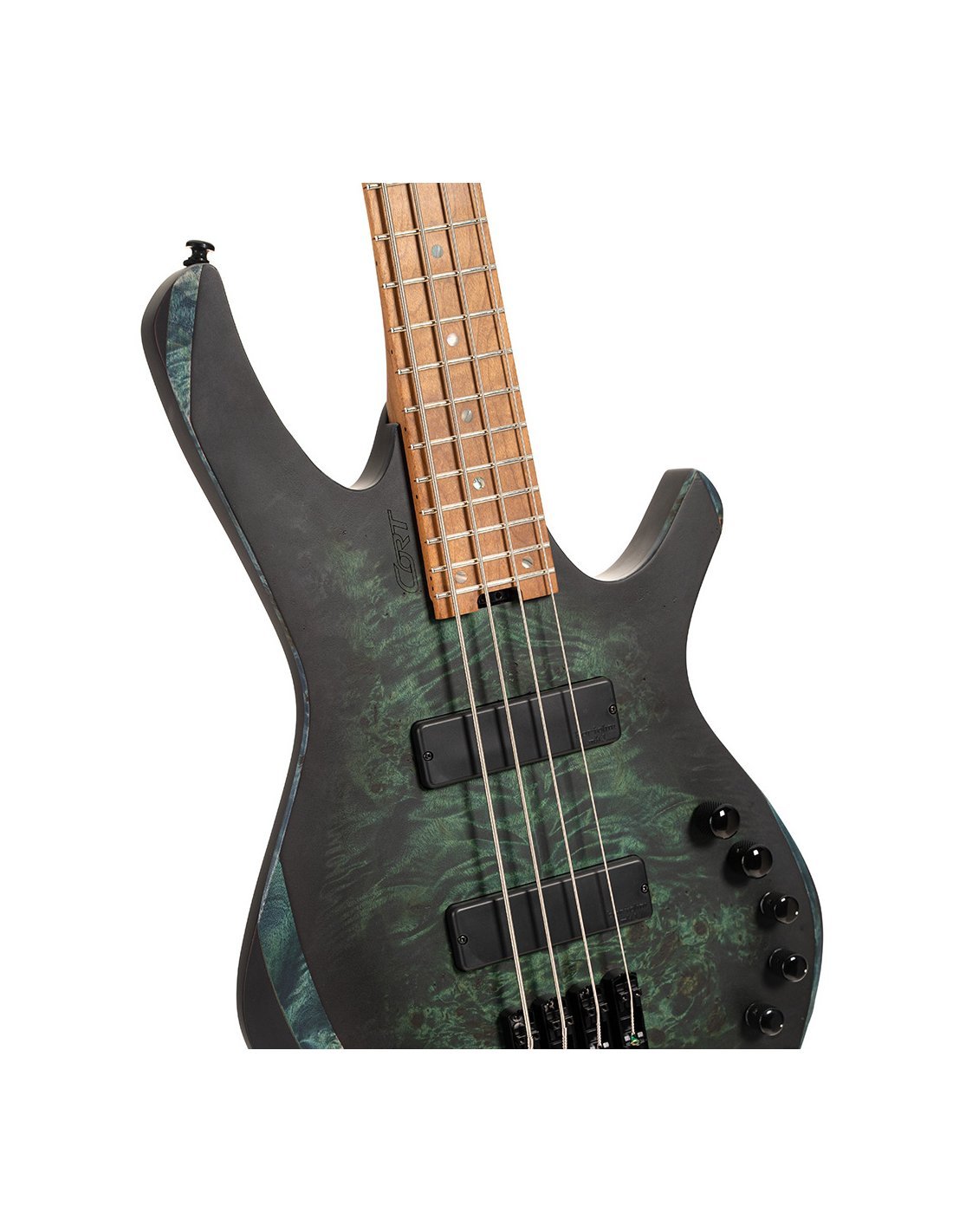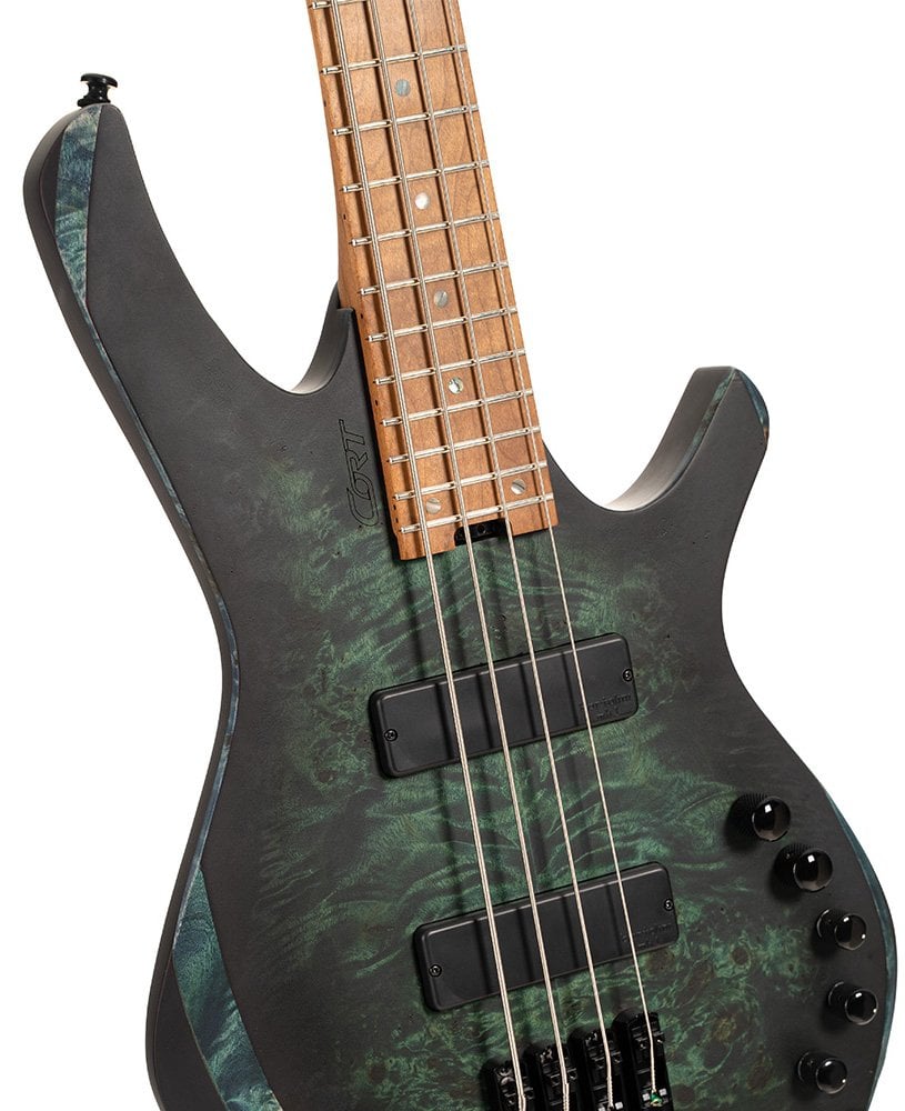 Basso Elettrico Solid-Body 4 Corde Fretless<br /><br />• Construction: Bolt-On<br />• Body: Soft Maple with Poplar Burl Top (6 mm)<br />• Neck: 7pcs Roasted Maple, Walnut, Purple Heart & Maple<br />• Fretboard: Roasted Maple<br />• FB Radius: 15.75"(400 mm)<br />• Frets: 24 with Zero Fret<br />• Scale: 34" (864 mm)<br />• Nut Width: 1 4/7" (40 mm) @ 0 Fret<br />• Inlay: Abalone Dots<br />• Tuners & Bridge: Specially Designed Hardware for Headless System <br />• Pickups: Bartolini® MK-1 <br />• Electronics: Active 3-band EQ Preamp <br />• Hardware: Black<br />• Strings: D’Addario® EXL165<br />• String Spacing: 19 mm<br />• ‘Next Gen’ Cort Logo<br />• Spoke Nut Hotrod Truss Rod<br />• Gig-bag Included<br />• Color: Star Dust Green (SDG)