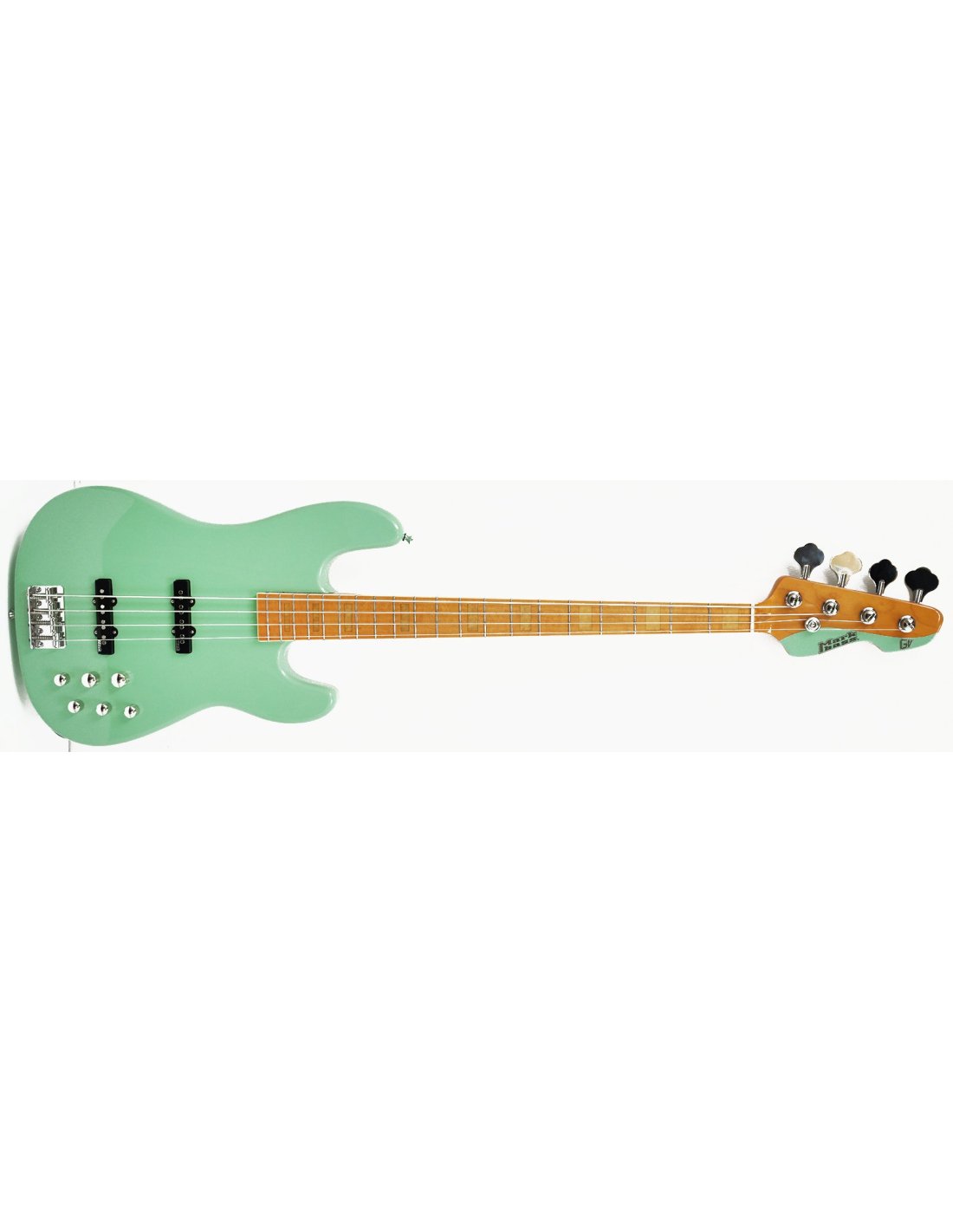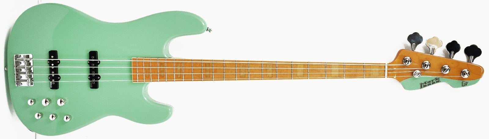 MARK BASS GV 4 GLOXY VALUE SURF GREEN CR MP. 4-string electric bass. Technical features include linden body, Bolt-on maple neck, maple fingerboard, 20 frets, Confort C neck profile, 34" scale, Pickup Markbass Single coil (Bridge-Neck) Jazz bass style, 9v active/passive electronics, Surf Green color. Includes Gig bag