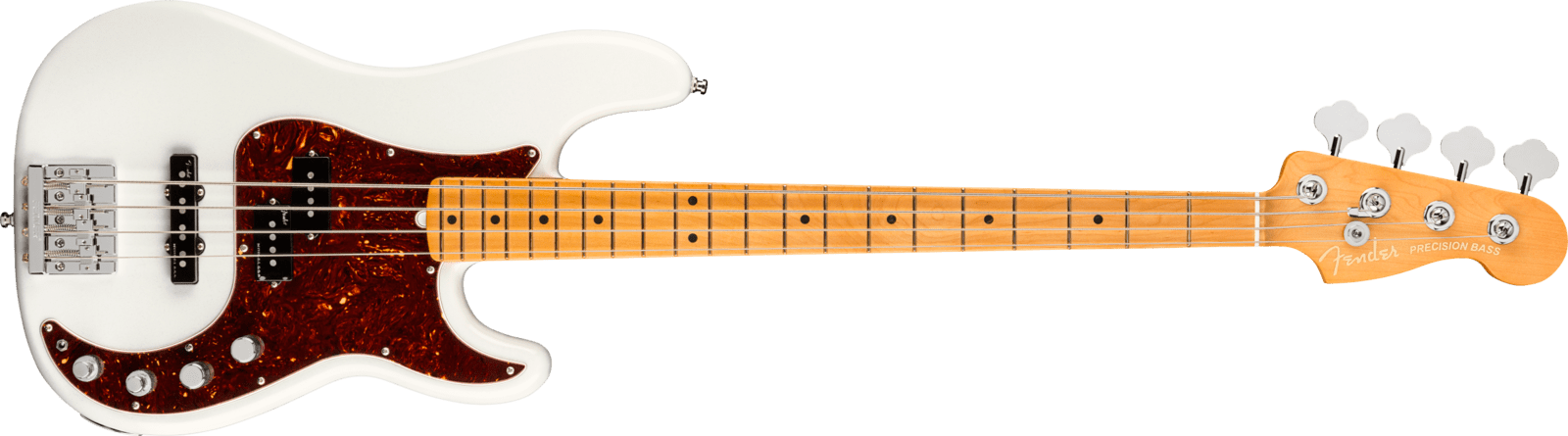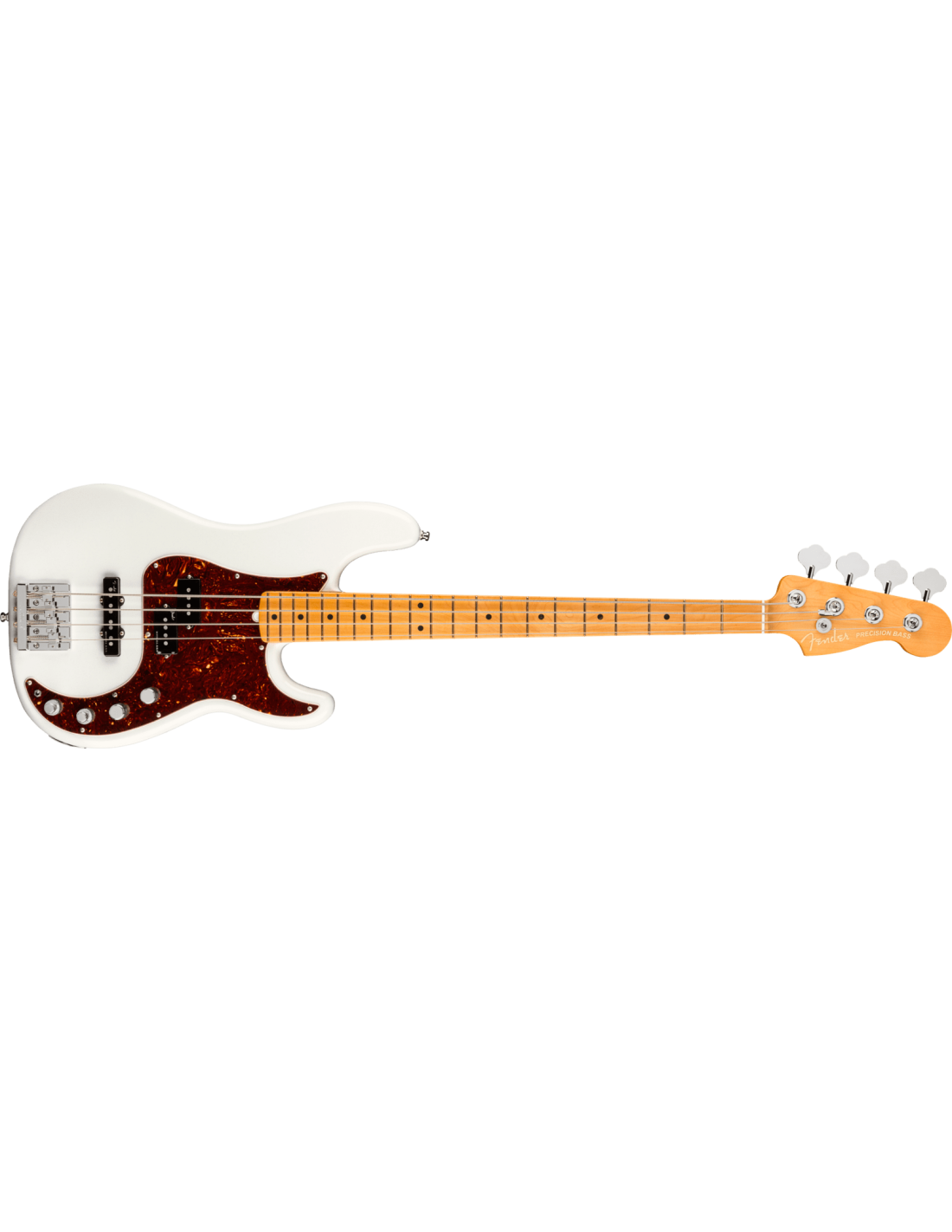 FENDER AM ULTRA P BASS MN ARTICT PEARL is a 4-string electric bass from the Fender American Ultra Precision Bass line with alder body, Modern D Shape profile maple neck, 10"- 14" composite maple fingerboard with 21 Medium Jumbo frets and black Dot inlays, bone nut, chrome hardware, Fender “F” Light-Weight mechanics with Vintage palettes and conical trees and a 4-saddle Fender HiMass bridge. The electronics consist of a Single Coil Ultra Noiseless Vintage Jazz Bass bridge pickup and a Split Coil Ultra Precision Bass pickup on the active/passive electronic neck with Master Volume controls, Pan/Pot pick up selector, treble, midrange and bass adjustment, tone and active/passive Mini Toggle. Includes Fender Deluxe Case