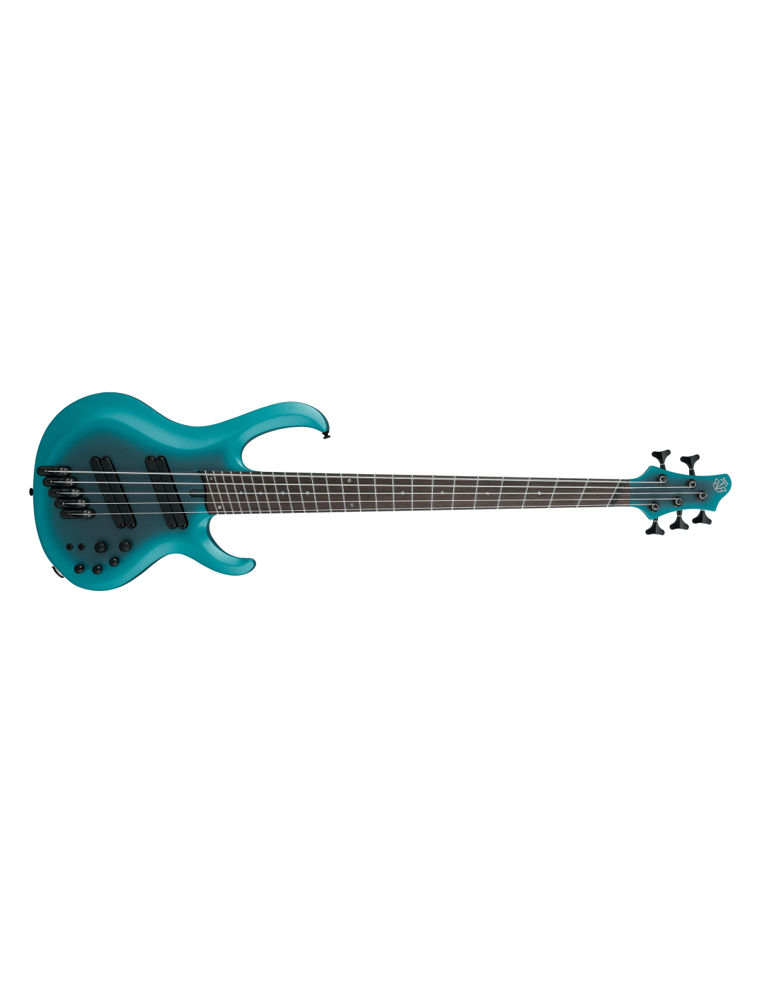 IBANEZ BTB605MS-CEM is a 5-string electric bass with Okoumè body, 5-piece maple/walnut neck with graphite reinforcements, multiscale keyboard in Bound Panga Panga with 24 Medium Jumbo steel frets and abalone dot inlays, black chrome hardware, die-cast mechanics and MR5S bridge. The electronics consist of 2 active Ibanez T1 pickups with 3-band EQ and passive treble tone control, volume control and 3-way selector for medium frequencies. Includes Ibanez hard case