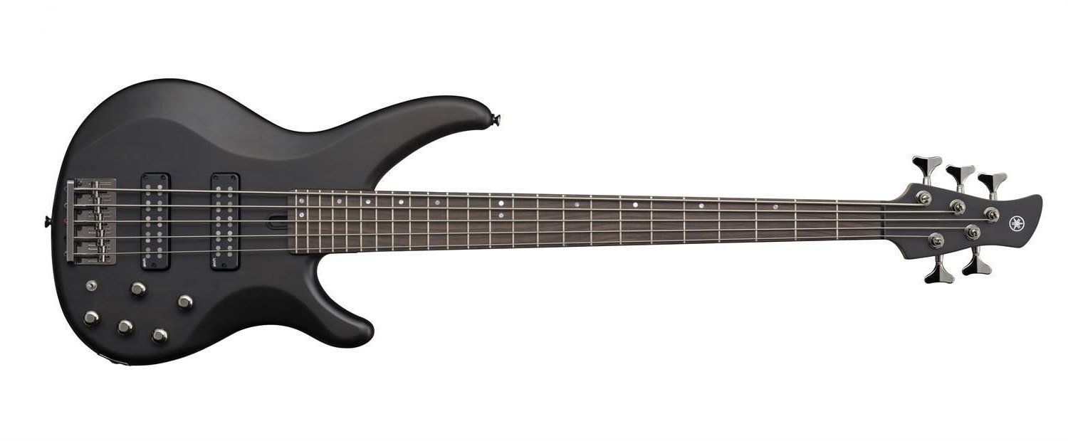 Yamaha TRBX505TBL electric bass guitar color TRANSLUCENT BLACK. The Yamaha TRBX505TBL is a 5-string electric bass guitar. Technical features include mahogany body, 5pc maple and mahogany neck, rosewood fingerboard, 23 5/8” radius, 24 frets, 18mm Die-cast bridge, HHB5n (neck) and HHB5b (bridge) pickups, Master Volume controls, Pickup Balancer, Bass, Middle, Treble and