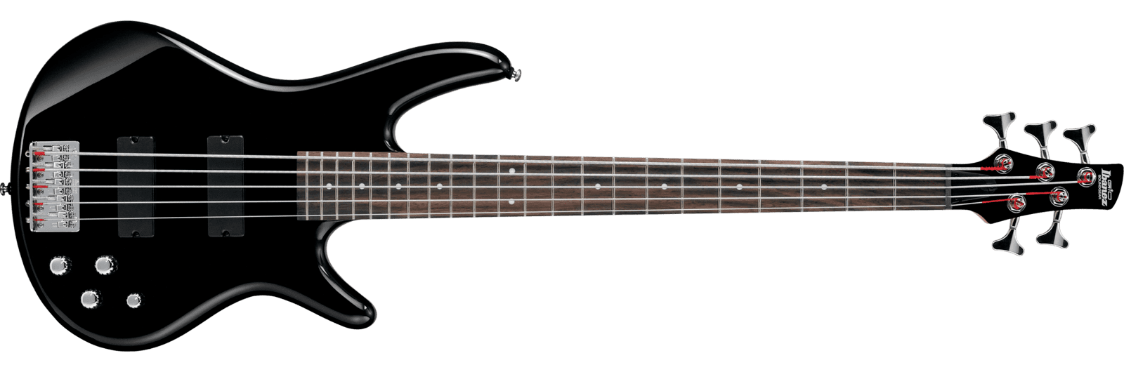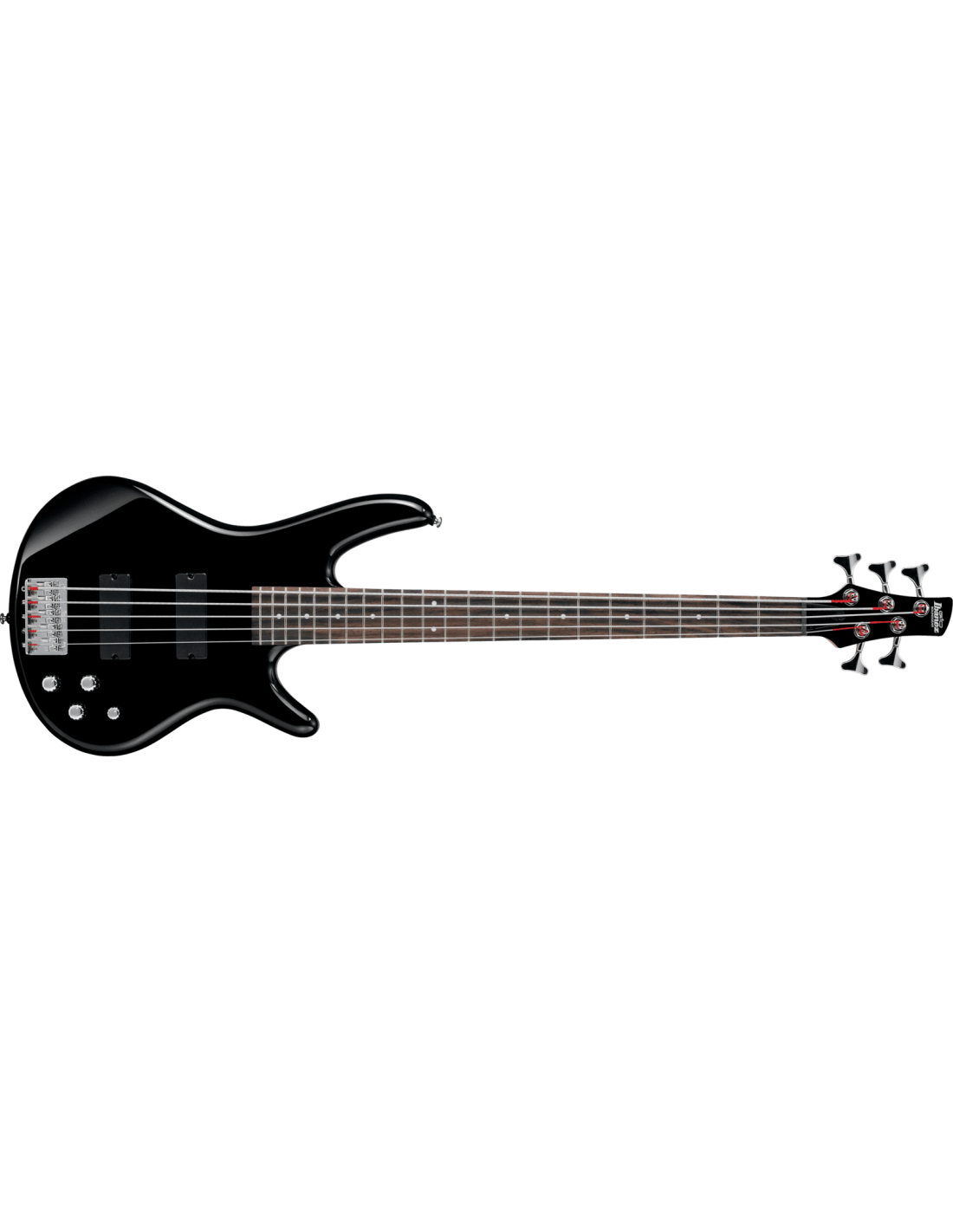 Ibanez GSR205 Black color is a 5-string electric bass guitar. Technical features include Poplar body, Maple neck, Jatoba fingerboard with white dot keyboards, 22 medium keys, 34” scale, active electronics with 2 Dynamix H Soapbars pickups, 1 Phat II EQ regulator, 2 volume regulators, 1 tone regulator. Case included.