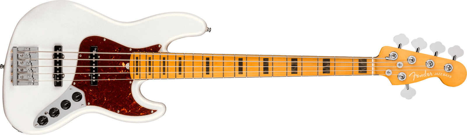The FENDER AM ULTRA JAZZ BASS V MN APL is a 5-string electric bass guitar. Technical features include: alder body, maple neck, 21-key maple fingerboard, SS configuration, Fender Ultra Noiseless Vintage Jazz Bass pickups, Volume, Blend, Bass, Mid, Treble controls, Passive tone,