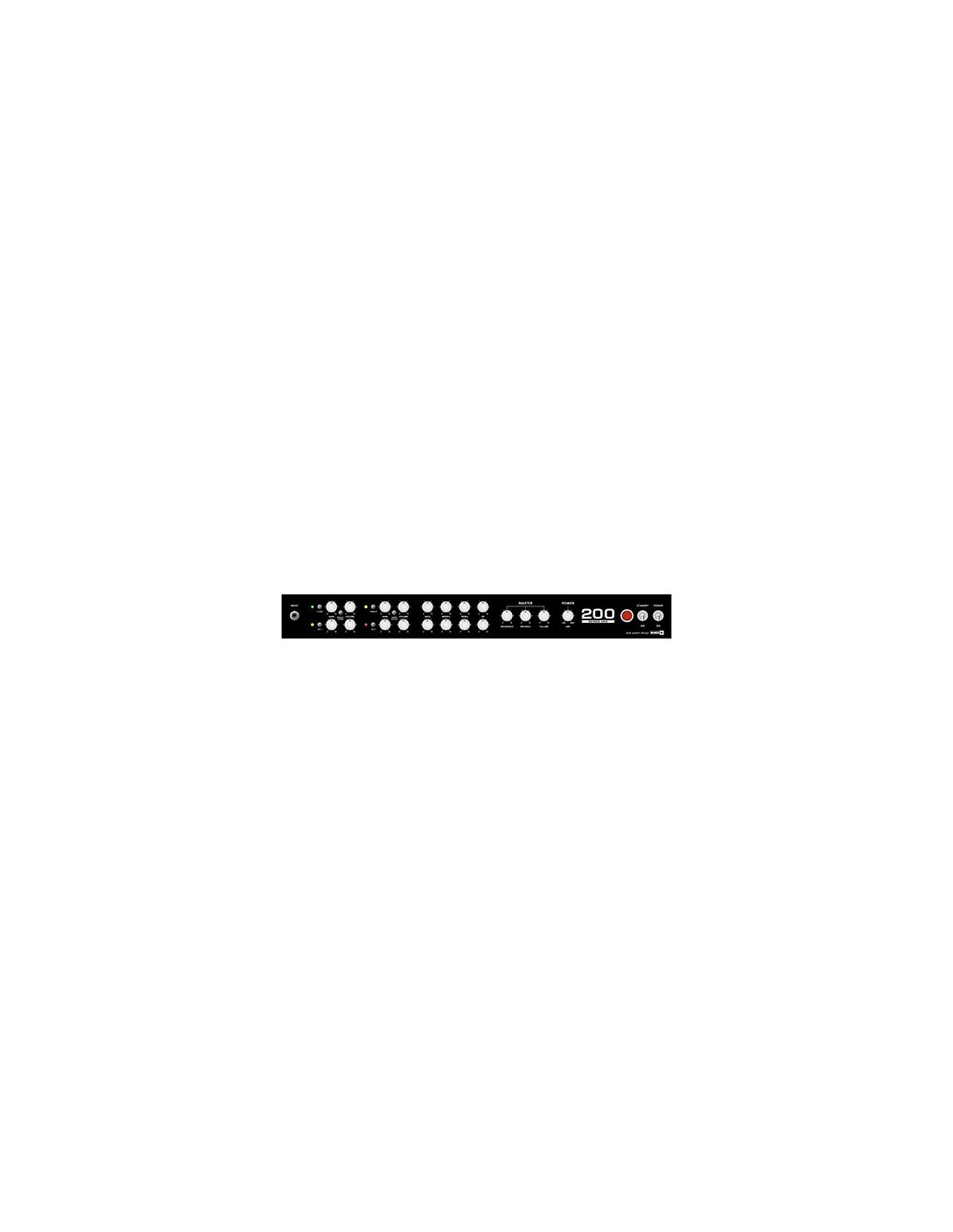 Series One 200 tube head. 4 channels: Clean, Crunch, OD 1, OD 2 (Clean channel with Warm (Plexi) and Bright (Class A) type modes/ Crunch channel with Crunch and Super Crunch modes/ Two overdrive channels with high and low output damping). ISF (Infinite Shape Feature) command. 100W of power. DPR power reduction system. 2 valves in the preamplifier (4 x ECC83, 1 x ECC82). 4 valves in the power amplifier (4 x KT88). 8 and 16 Ohm speaker output. Speaker emulation output. Switching via MIDI or included foot switch. Effects loop. Controls (Clean Gain, Clean Volume, Crunch Gain, Crunch Volume, Overdrive 1 Gain, Overdrive 1 Volume, Overdrive 2Gain, Overdrive 2 Volume, Bass x 2, Middle x 2, Treble x 2, ISF x 2, Resonance, Presence, Master Volume, DPR). Dimensions: 705 x 285 x 278.5 mm. Weight: 27.2 Kg.