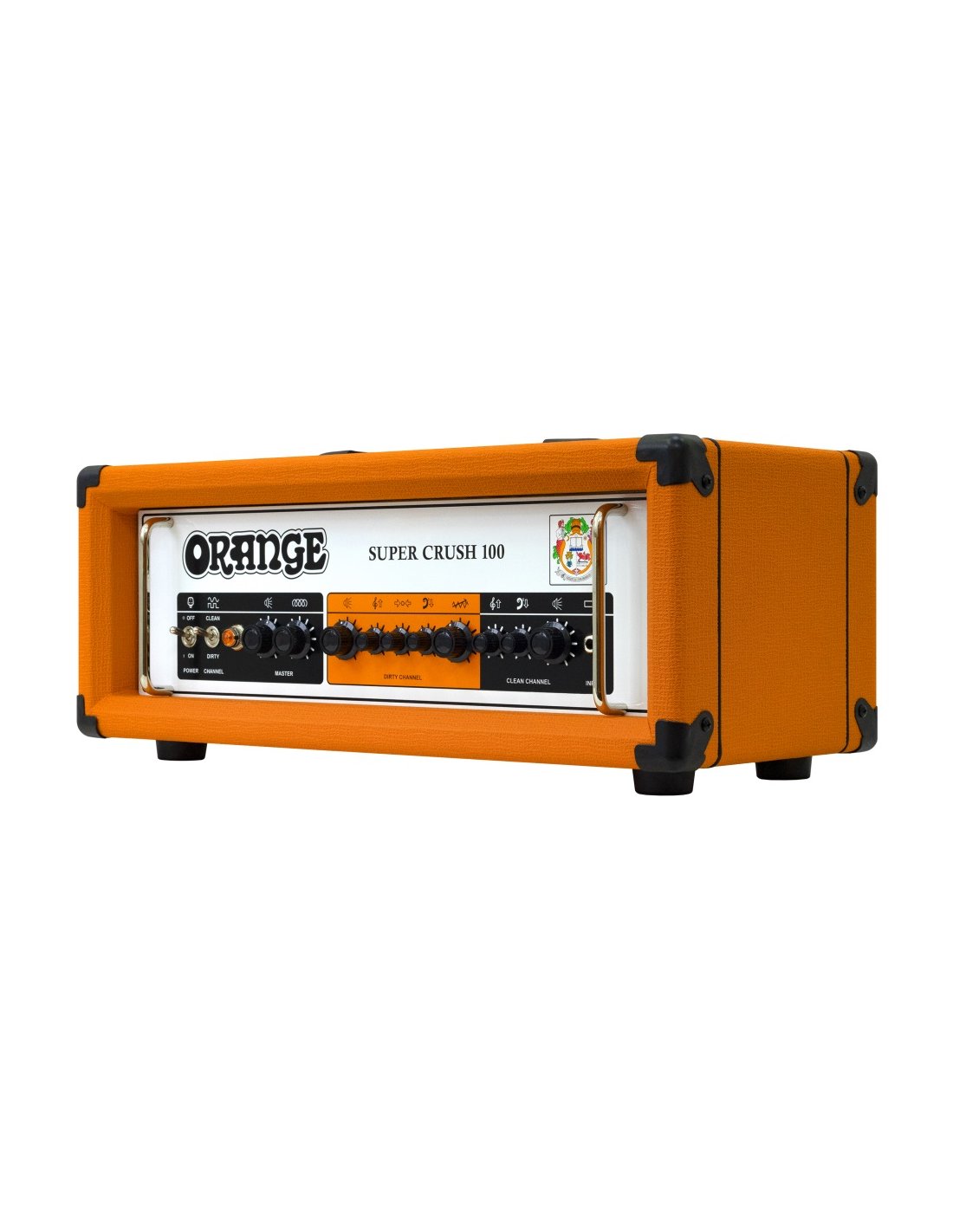 New Super Crush 100 Header for transistor electric guitar. 2 totally independent channels. Single-ended analog preamplifier. 100W Class A/B power amplifier. Clean channel: volume, bass, treble. Distorted Channel: Volume, Bass, Mid, Treble and Gain. Main volume. Digital reverb. Buffered FX cycle. Channels and reverb selectable via footswitch. Balanced XLR output with CabSim (2x12 cab simulation). Rear cab selector to select open/closed. Speaker outputs: 1x16ohm, 1x8ohm, 2x16ohm. Dimensions: 23x55x25 cm. Weight: 11.2 kg. From the clean channel to the high-gain channel, the Super Crush draws inspiration from the classic Rockerverb response in a transistor amplifier, offering tube dynamics, presence and harmonics. Orange finish.