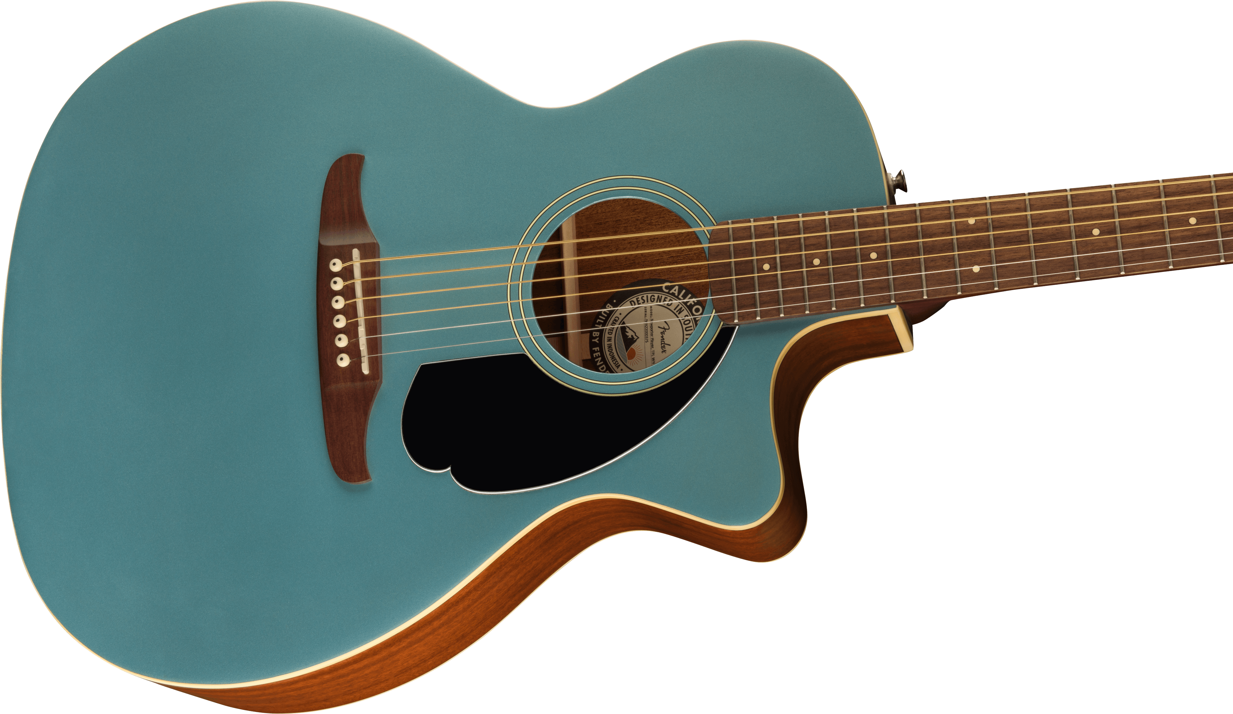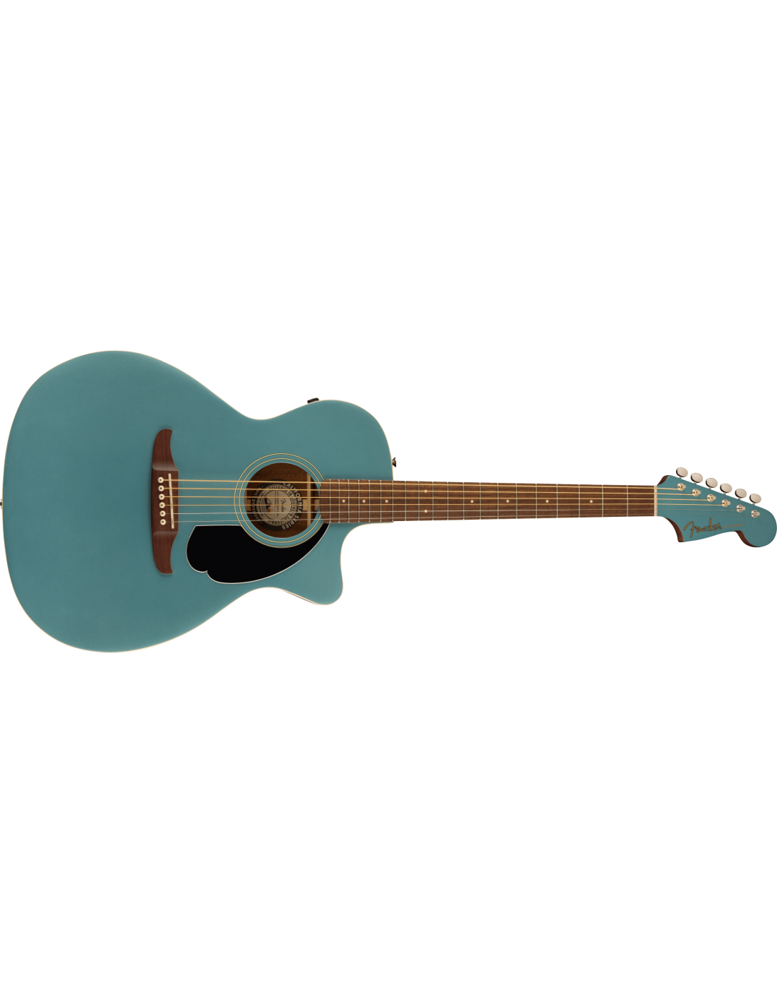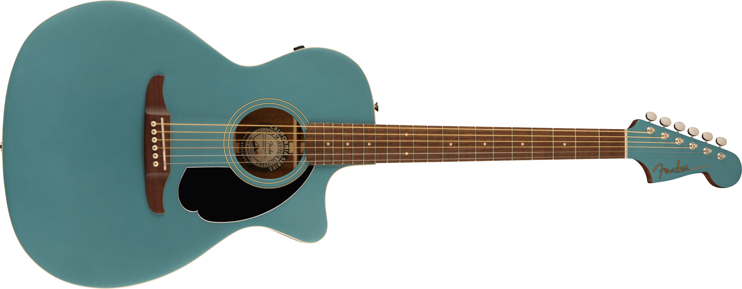 Fender Newporter Player Electrified Acoustic Guitar, Tidepool color. The Fender Newport Player is a 6-string electric missing shoulder acoustic guitar. It features a solid spruce top with X-chains, Sapele back and sides. Nato handle with Slim C profile, 25 1/2” scale, with walnut fingerboard, 20 frets. Black pickguard. Fishman Flex electronics, with Volume, Tone and Phase controls. Vintage-style mechanics
