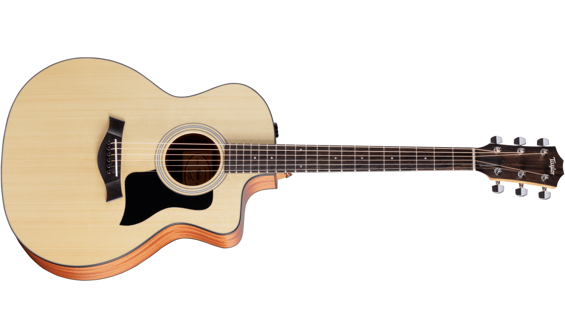 TAYLOR 114ce SPECIAL EDITION. Taylor 114ce Special Edition Grand Auditorium Cutaway format electrified acoustic guitar with Sunburst finish. Technical features include solid Sitka spruce body with matching layered walnut back and sides, maple neck, 20-fret ebony fingerboard, Italian acrylic dot inlays, adjustable trussrod and TUSQ nut. The electronics are equipped with a Taylor Expression System 2 amplification system, it also has an ebony bridge with Nubone/MiCarta top/saddle and Die-Cast Chrome (100/200) mechanics. Taylor Gig bag included