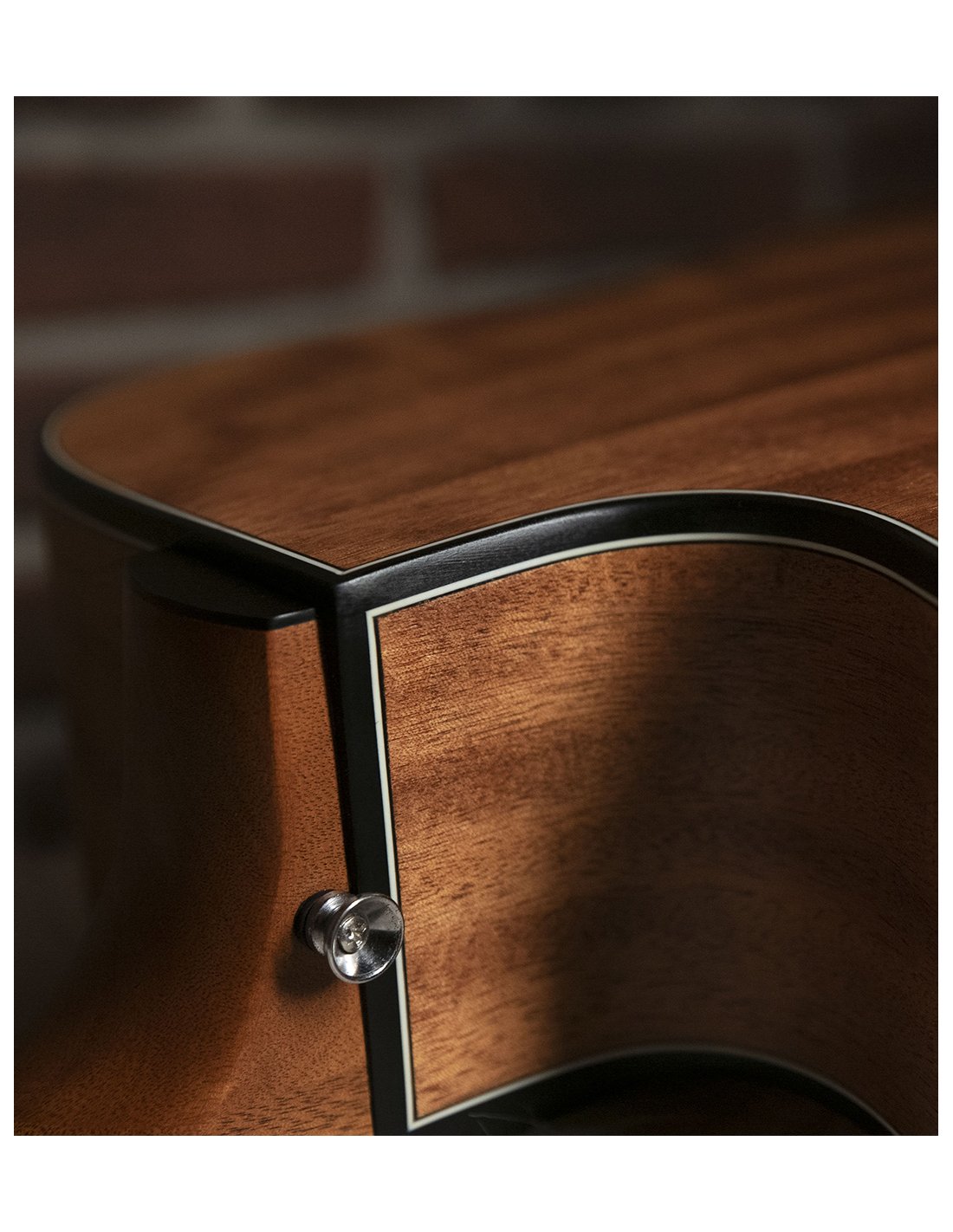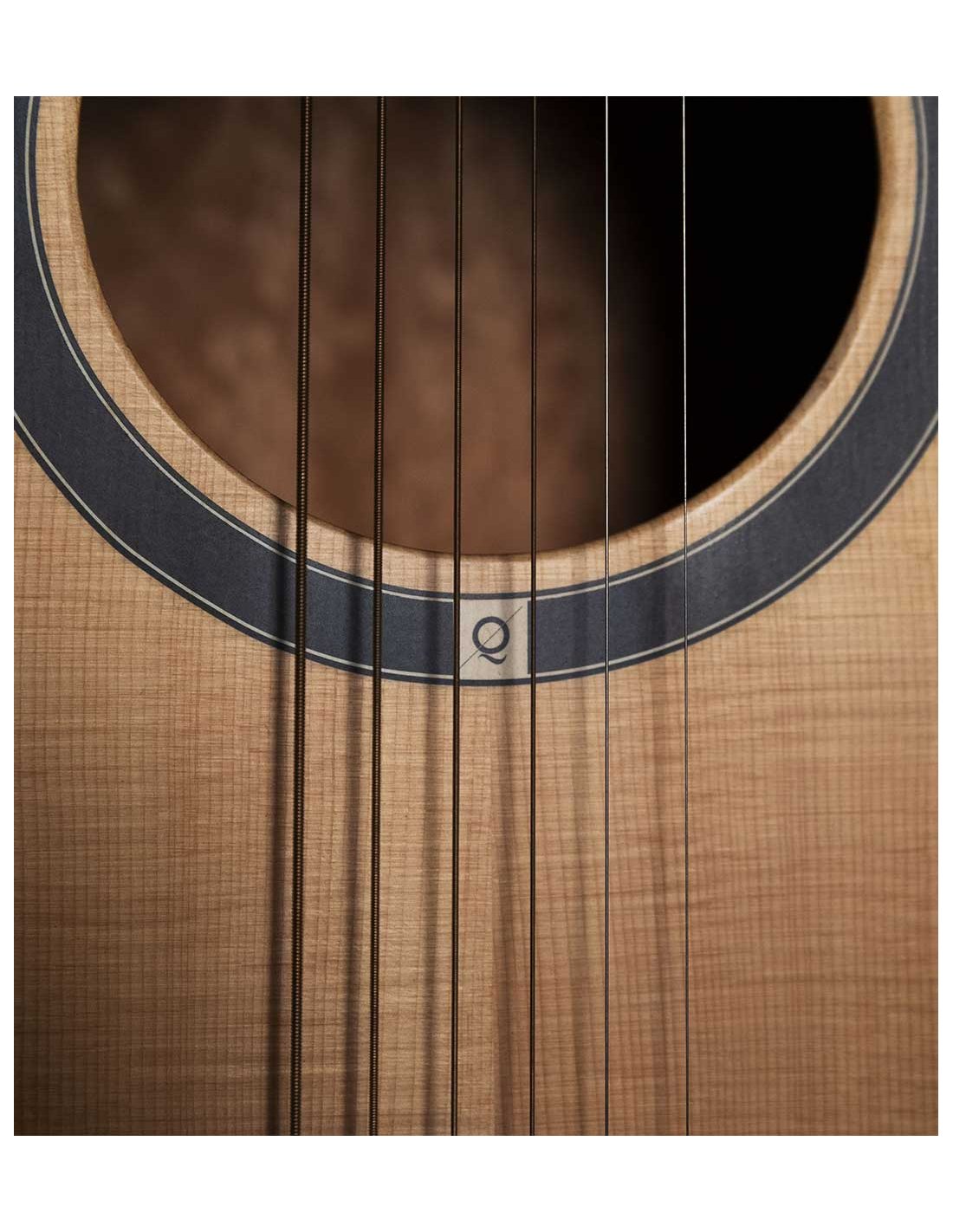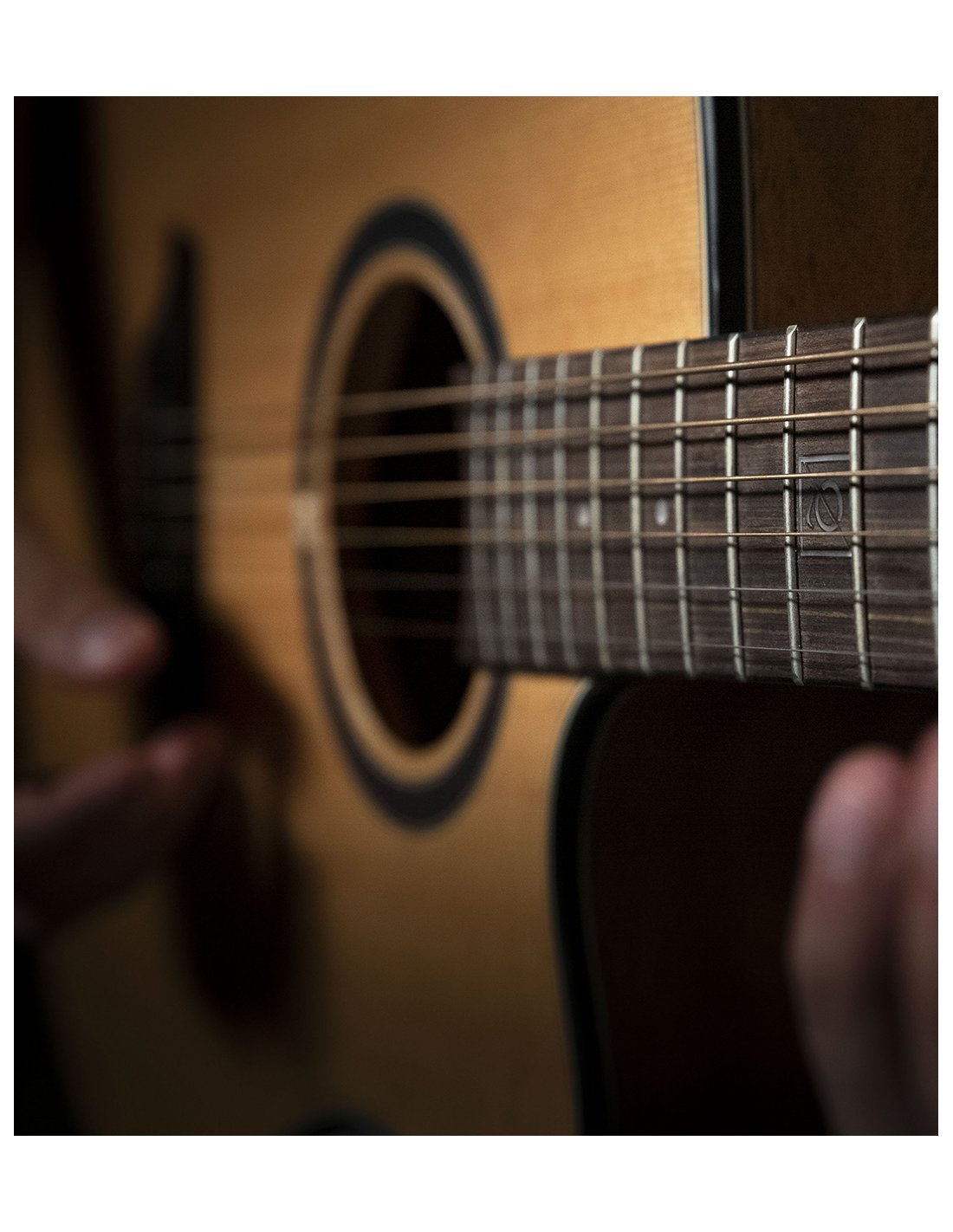 Cutaway amplified dreadnought acoustic guitar. Comfort system for greater convenience. Solid spruce top. Sapele bands and bottom. Keyboard, bridge and nut in 'compound rosewood'. Self-locking mechanics. D'Addario strings. Preamp with volume and tone control. Natural satin finish
