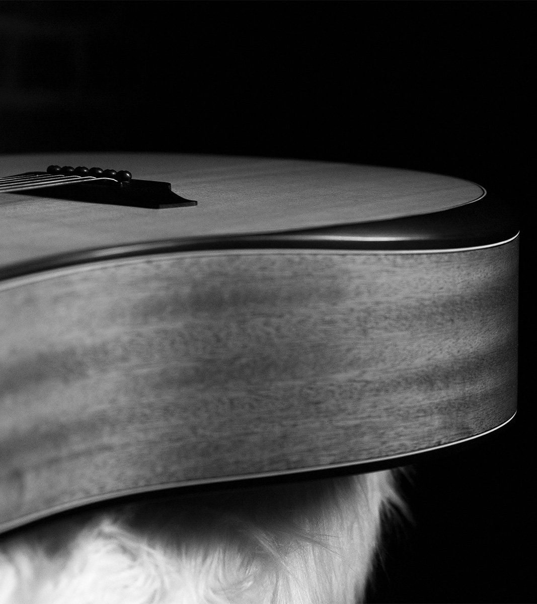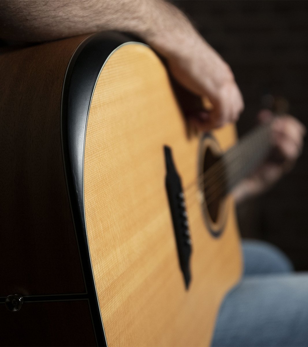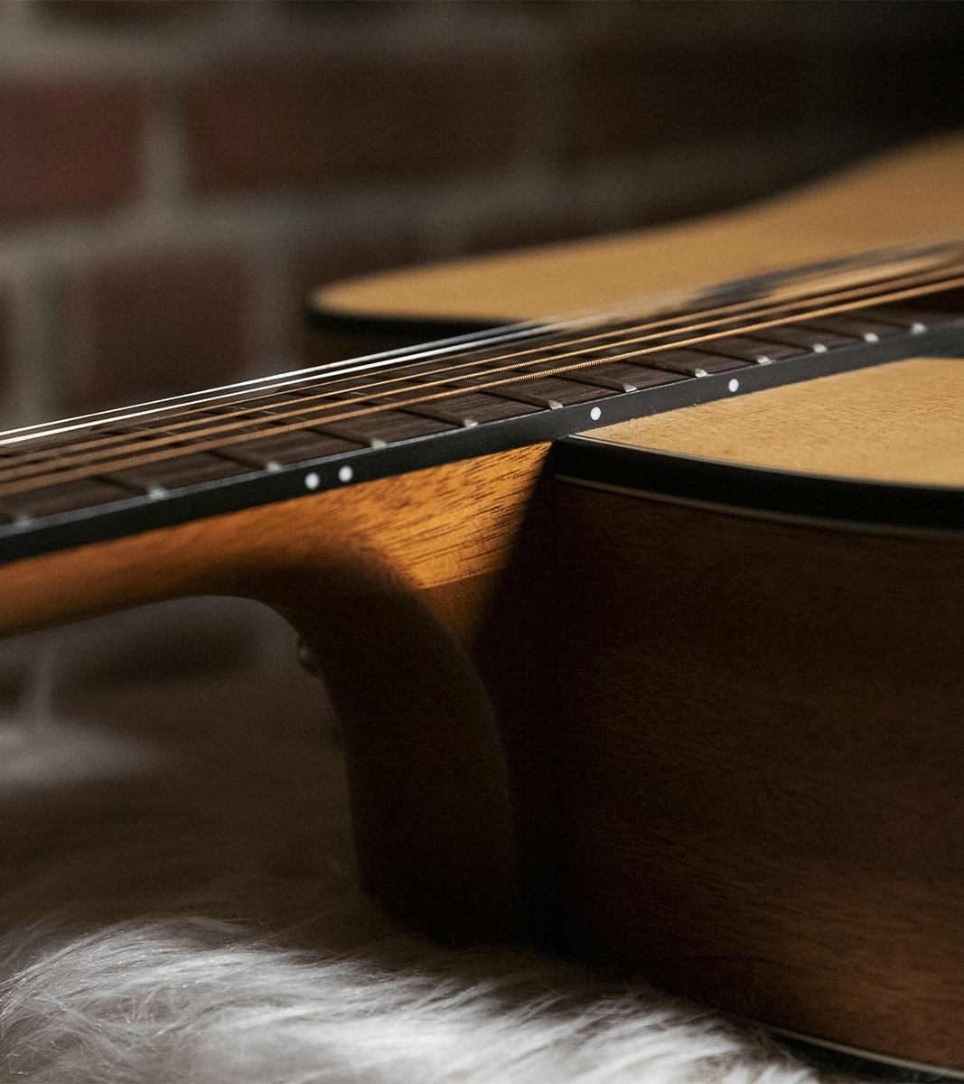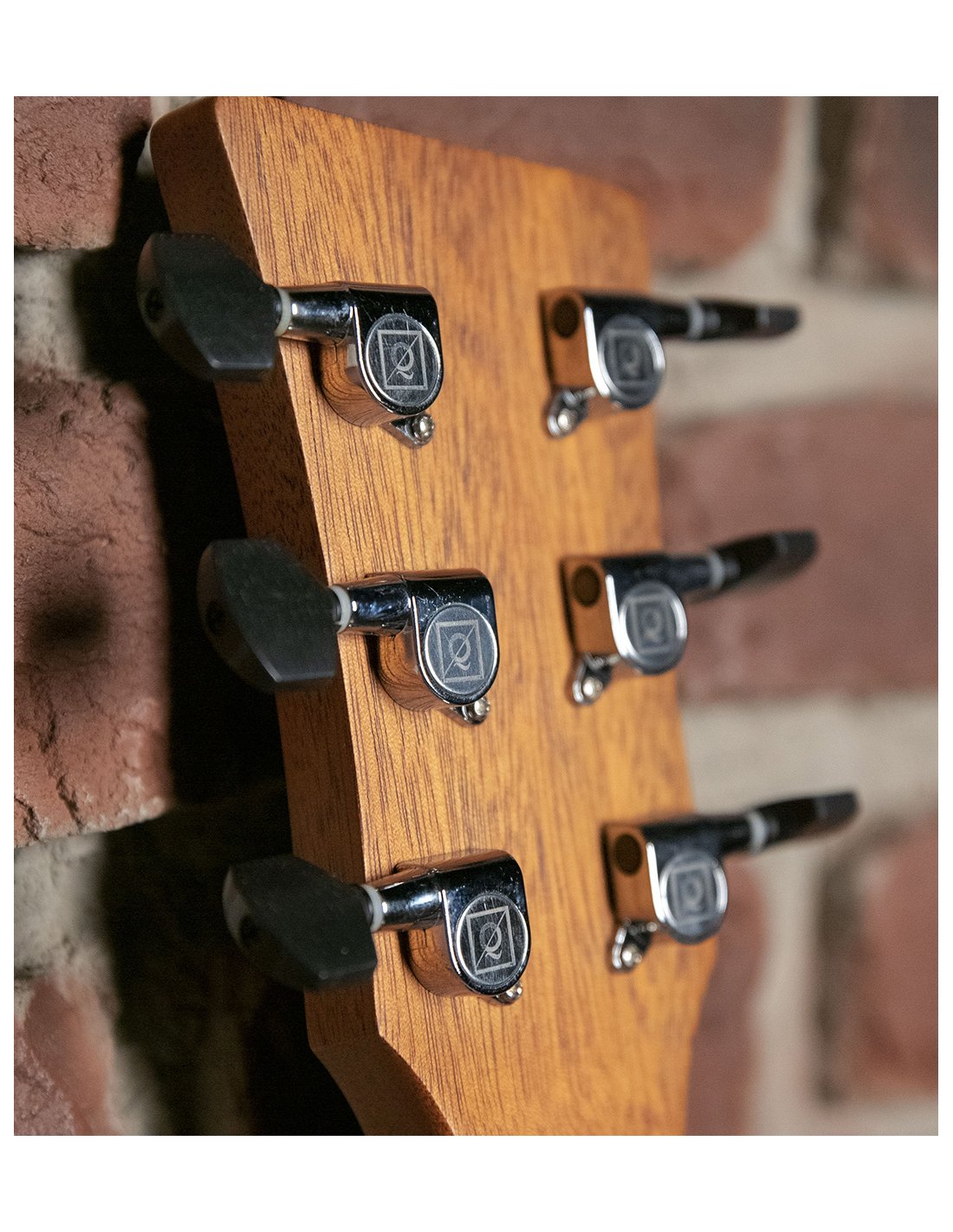 Cutaway amplified dreadnought acoustic guitar. Comfort system for greater convenience. Solid spruce top. Sapele bands and bottom. Keyboard, bridge and nut in 'compound rosewood'. Self-locking mechanics. D'Addario strings. Preamp with volume and tone control. Natural satin finish