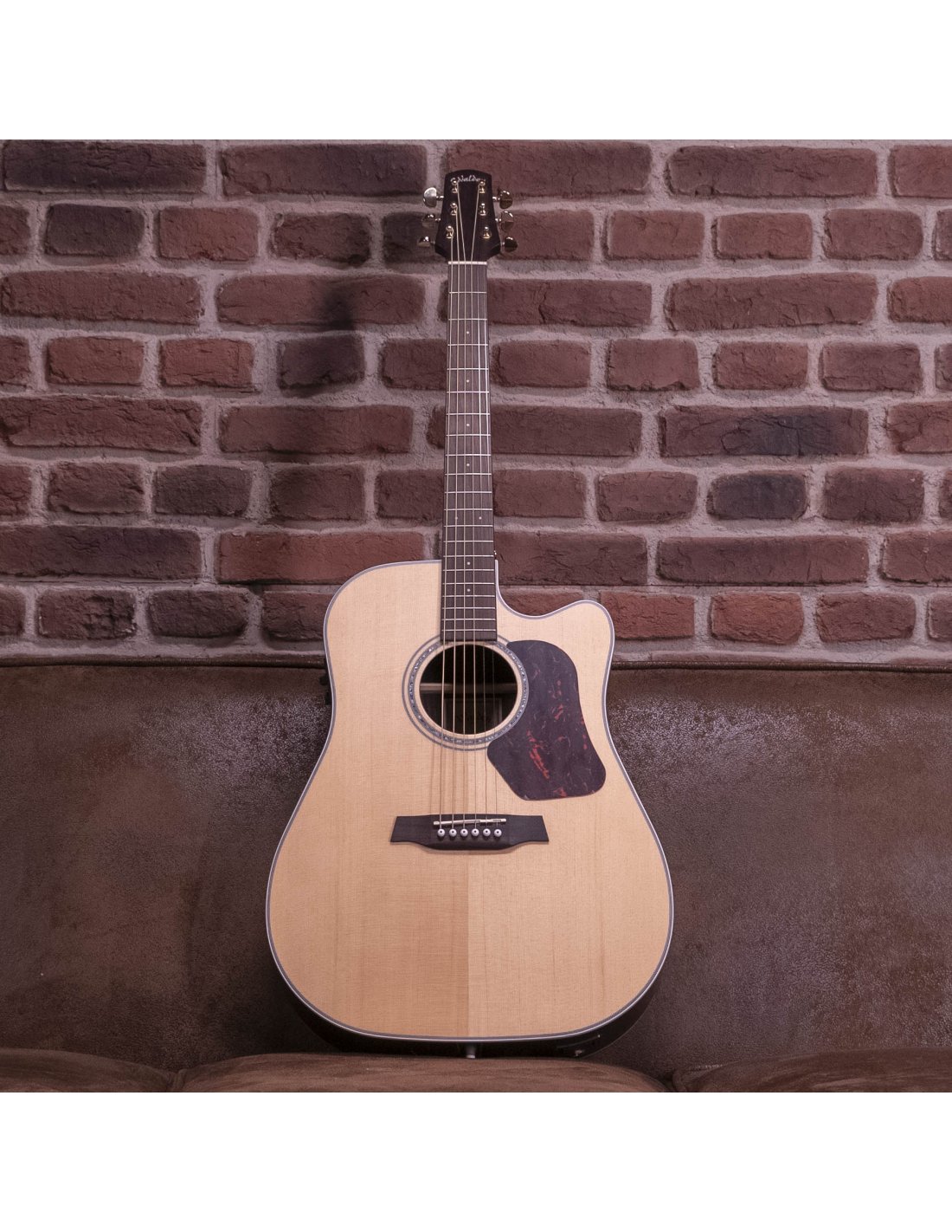 'Natura 600 Series 6-String Acoustic Guitar Body: Dreadnought Cutaway Top: Solid Sitka Spruce Backings and Bands: Indian Rosewood Laminated Chain: Scalloped-X low-mass Neck: Reinforced Mahogany Fiberglass, truss rod two-way Fingerboard and bridge: Rosewood Cap and Saddle: 'GRAPH TECH NuBone' Rosette: Abalone Binding: White Plastic Pickguard: Faux Turtle Keys: Gold die-cast tuners Electronic: 'FISHMAN Presys II' EQ & UV Finishing: cured Satin Width: 43 cm (1.69") Shoulder Width: 29.65 cm (11.63”) Waist: 27.62 cm (10.88”) Hips Width: 40 cm (15.75”) Depth: 12.38 cm (4.88”) Body Length: 50.8 cm (20”) Scale Length: 64.77 cm (25.5") Strings D'ADDARIO EXP11 Case WALDEN Gigbag badly packaged article repackaged