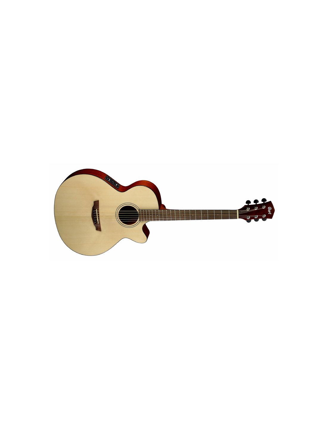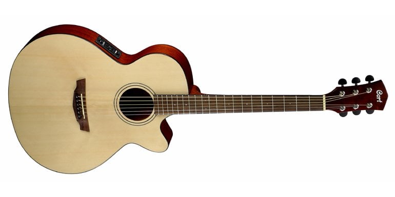 Cort SFX1F NS Acoustic Guitar color NATURAL SATIN. The Cort SFX1F NS is a 6-string electrified acoustic guitar. Technical features include mahogany back and sides, solid spruce top, mahogany neck, rosewood fingerboard, missing shoulder, Fishman Isys Plus amplification