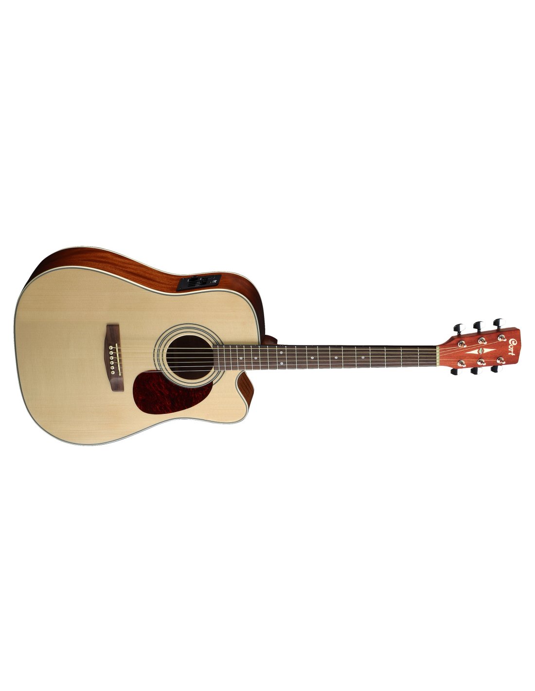 Cort MR500E NT Acoustic Guitar NATURAL color. The Cort MR500E NT is a 6-string electrified acoustic guitar. Technical features include mahogany back and sides, solid spruce top, mahogany neck, rosewood fingerboard, missing shoulder, Cort CE304T Preamp
