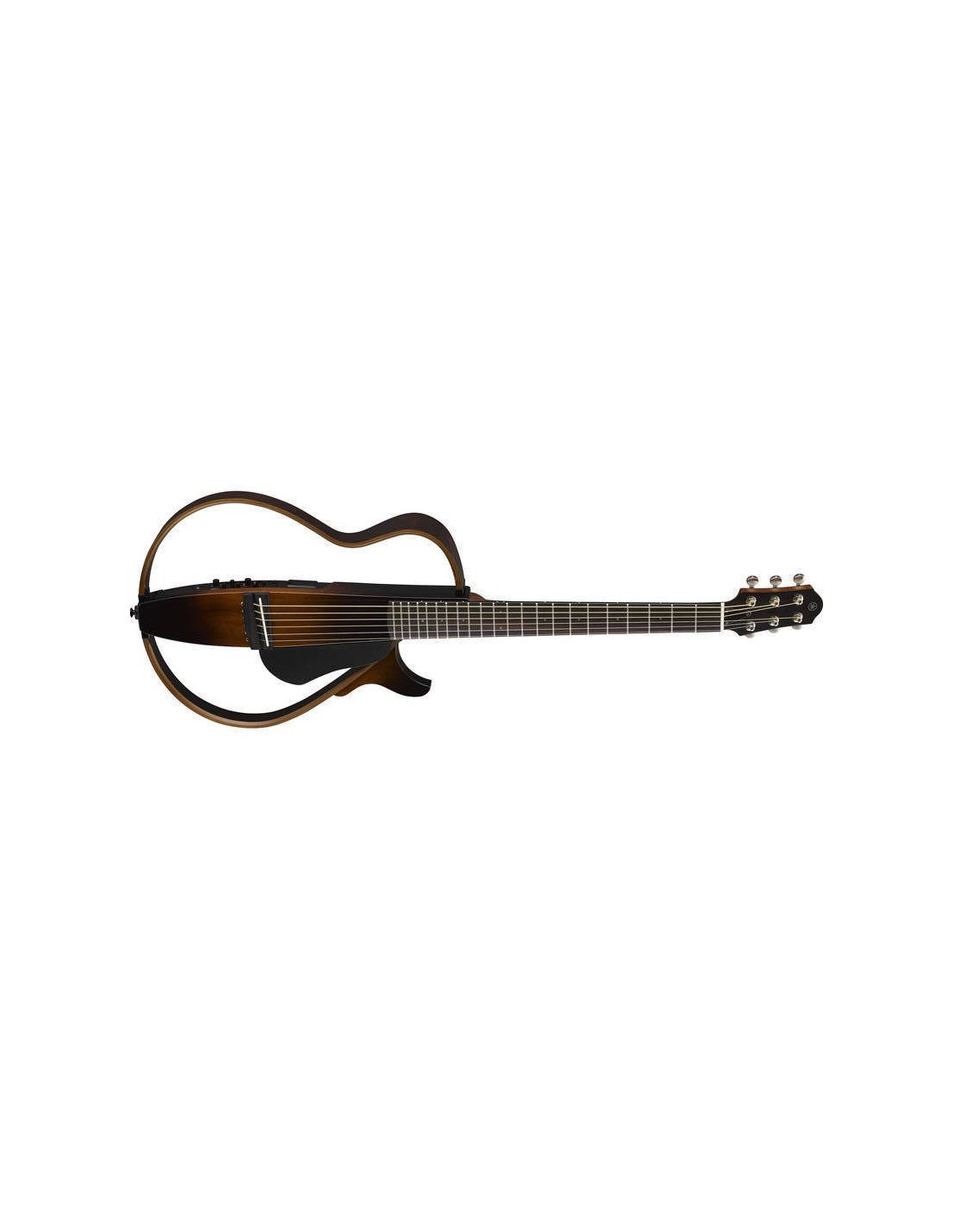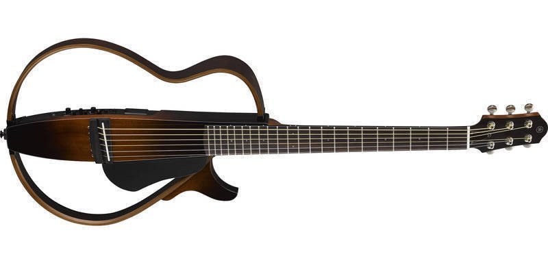 Yamaha SLG200S Silent Folk Acoustic Guitar color Tobacco Brown Sunburst. The Yamaha SLG200S Silent Folk is a 6-string electrified acoustic guitar. The Silent series is distinguished by the absence of a resonance box, allowing silent use. Technical features include mahogany body, mahogany neck, rosewood fingerboard with 20 frets and 15 3/4" radius. SRT Powered System Amplification with Volume, Treble, Bass, Aux Volume, Effect (ReverB1, Reverb2, Chorus), Chromatic Tuner, SRT Blend, Headphone Out, Line Out, Aux in controls. Bag included.