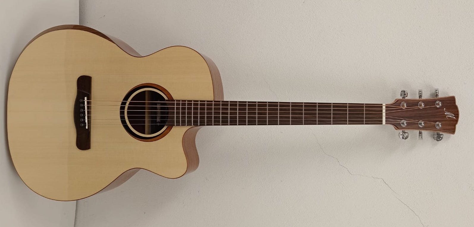 Merida DG20 Koa Gaces Acoustic Guitar color NATURAL. The Merida DG20 Koa Gaces is a 6-string electrified acoustic guitar. Technical features include koa back and sides, solid sitka spruce top, mahogany neck, rosewood fingerboard, missing shoulder, Merida/Fishman ISY201 preamp