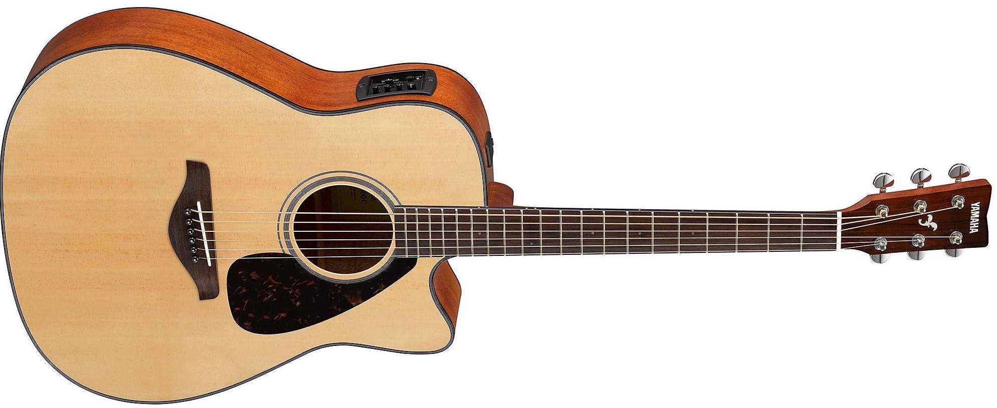 Yamaha FGX800C Natural Acoustic Guitar. The Yamaha FGX800C is a 6-string electrified acoustic guitar. Technical features include nato/okume back and sides, solid spruce top, nato neck, rosewood fingerboard, missing shoulder, Yamaha System-66 preamp amplification and SRT pickup
