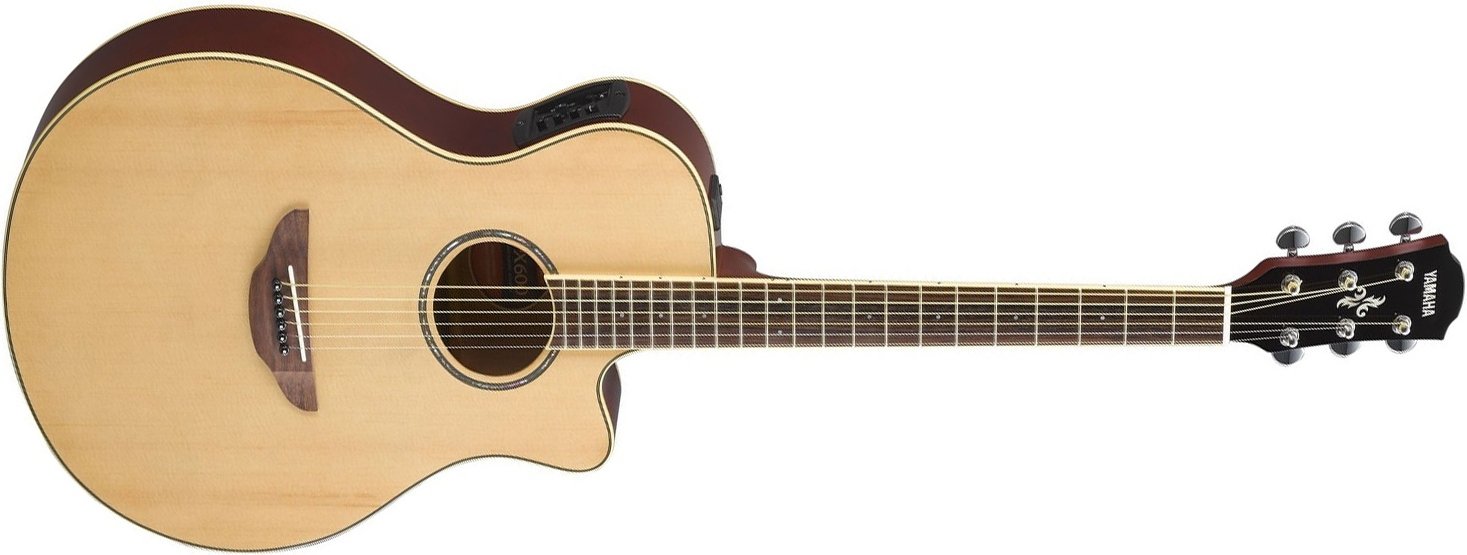 Yamaha APX600 Acoustic Guitar NATURAL color. The Yamaha APX600 is a 6-string electrified acoustic guitar. Technical features include nato back and sides, spruce top, locally sourced tonewood neck, rosewood fingerboard, missing shoulder, System 65 w/SRT