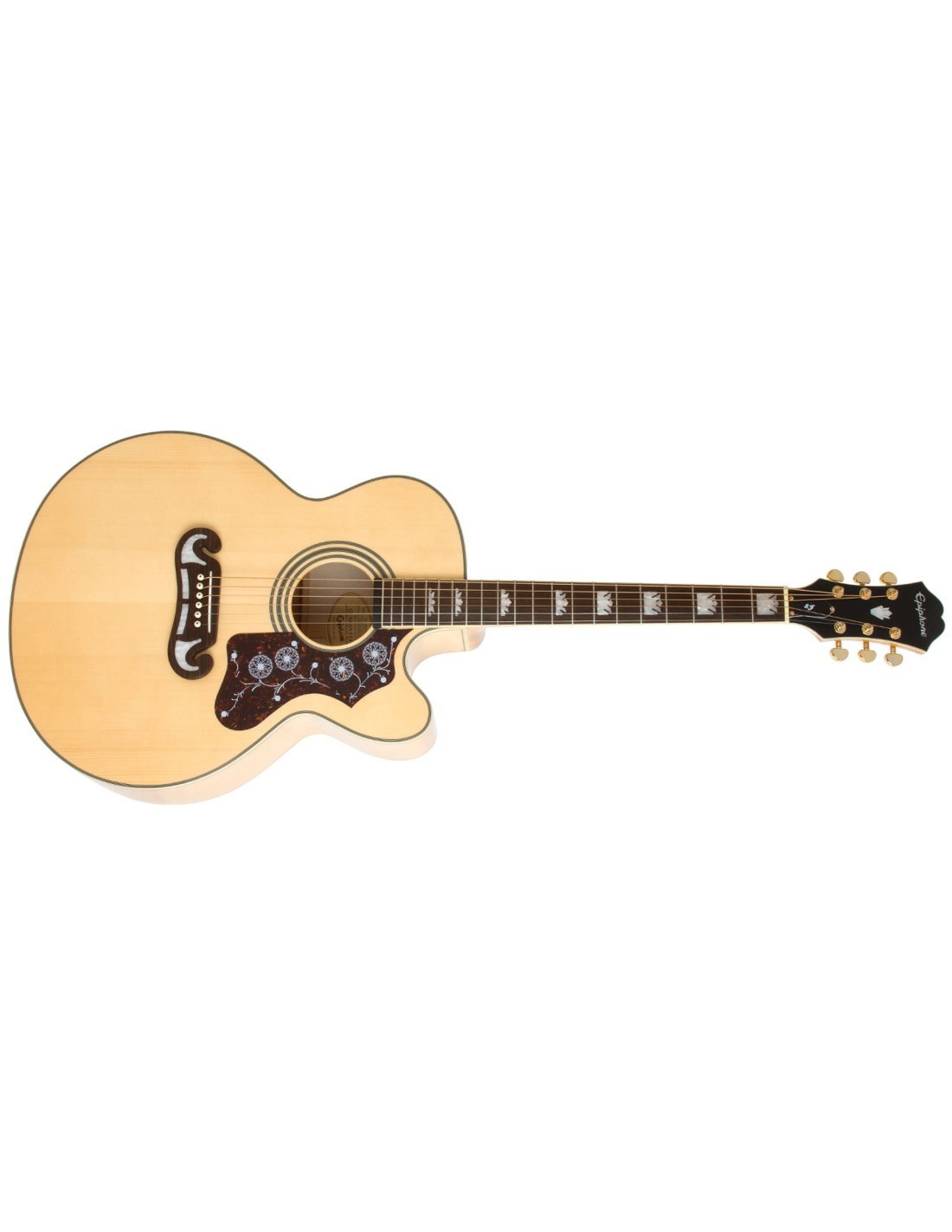Epiphone J-200EC STUDIO Acoustic Guitar color VINTAGE NATURAL. The Epiphone EJ-200SCE is a 6-string electrified acoustic guitar. Technical features include maple back and sides, solid spruce top, maple neck with 1960's SlimTaper “D” profile, wooden fingerboard, missing shoulder, Shadow Esonic-II Stereo Pickup System amplification, gold hardware